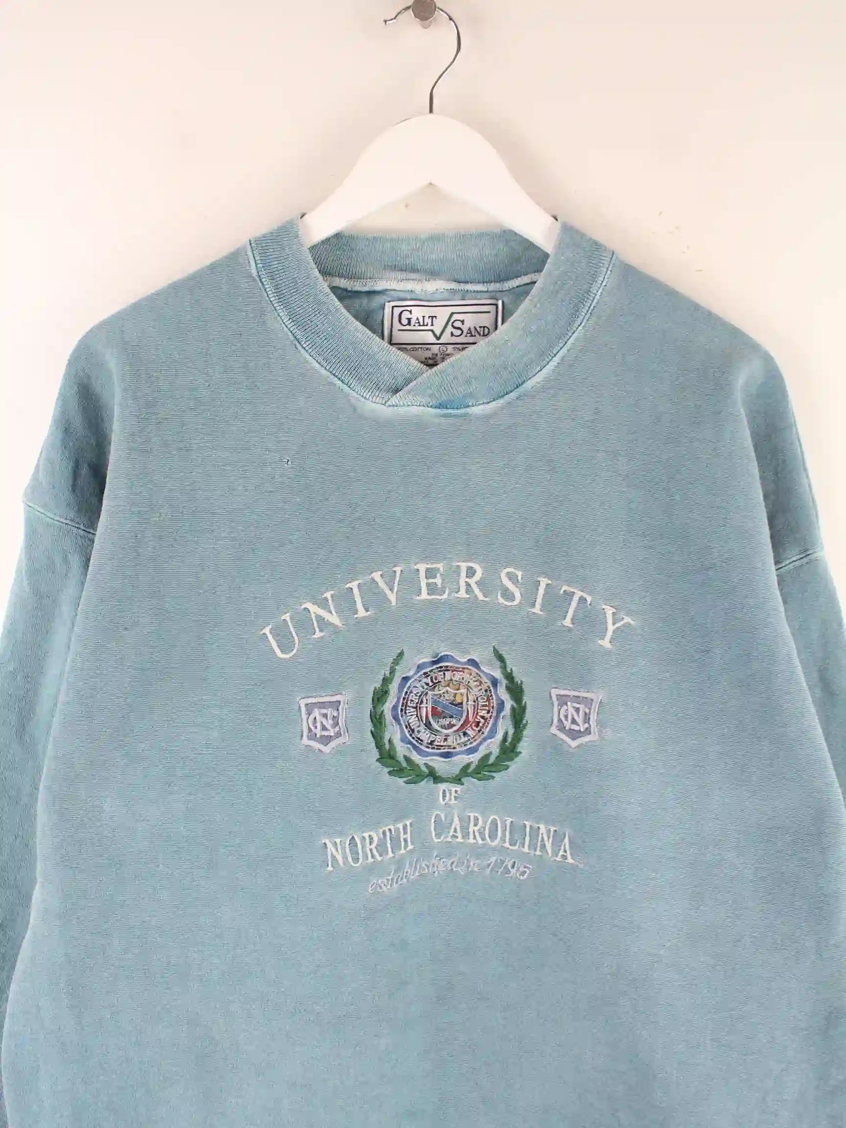 Vintage 80s University Carolina Embroidered Heavy Sweater Blau XXL