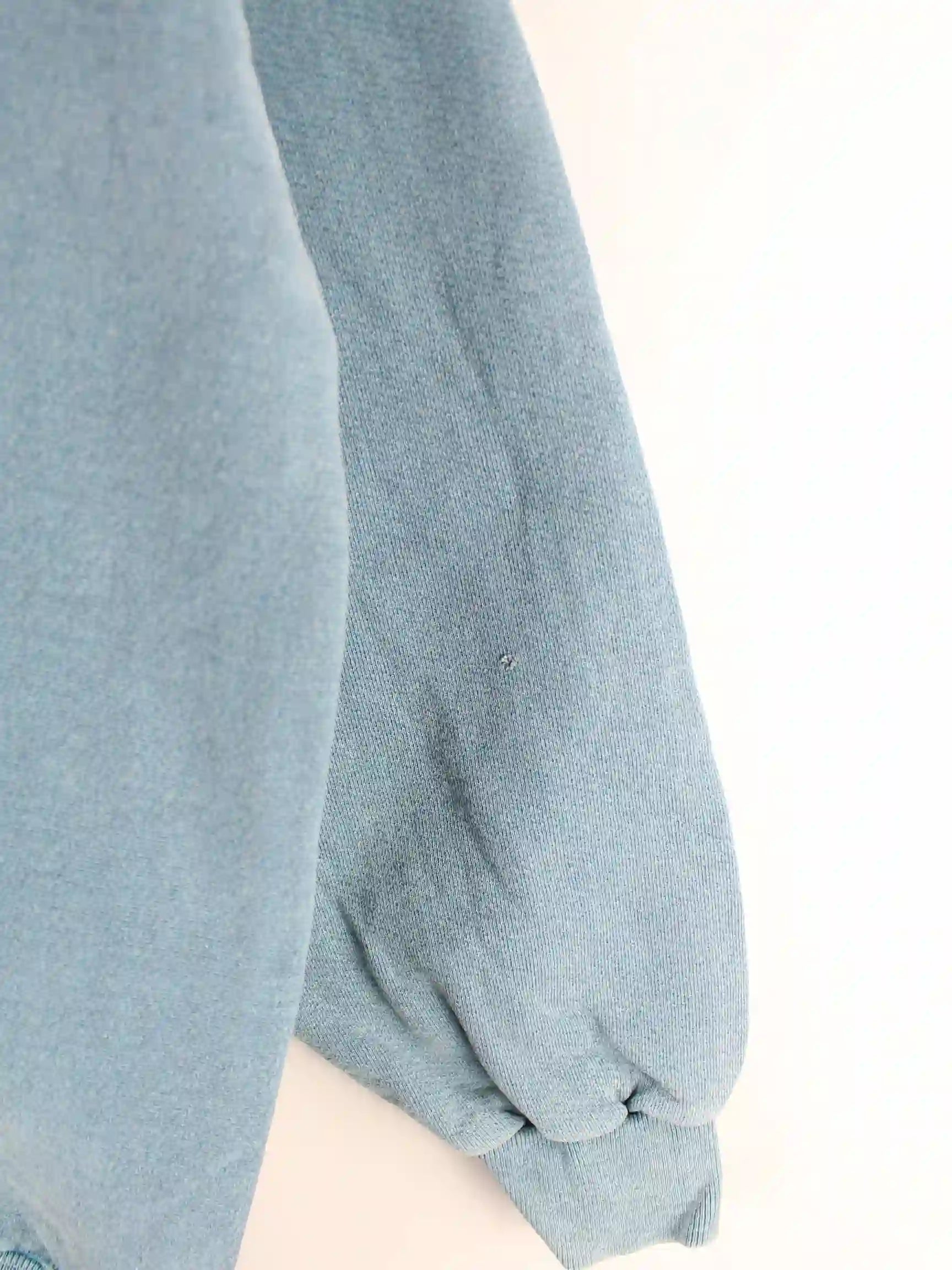 Vintage Sweater mit Stick in Größe XXL aus den 80'ern. Er ist aus einer Baumwollmischung gemacht und in Blau bei uns zu bekommen.