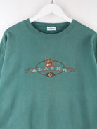 Grüner Vintage Made in USA Sweater mit gesticktem Logo aus den 90'ern in Größe M. Er ist aus einer Baumwollmischung und in sehr gutem Zustand bei uns vorrätig.