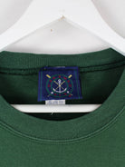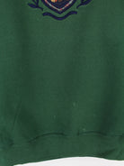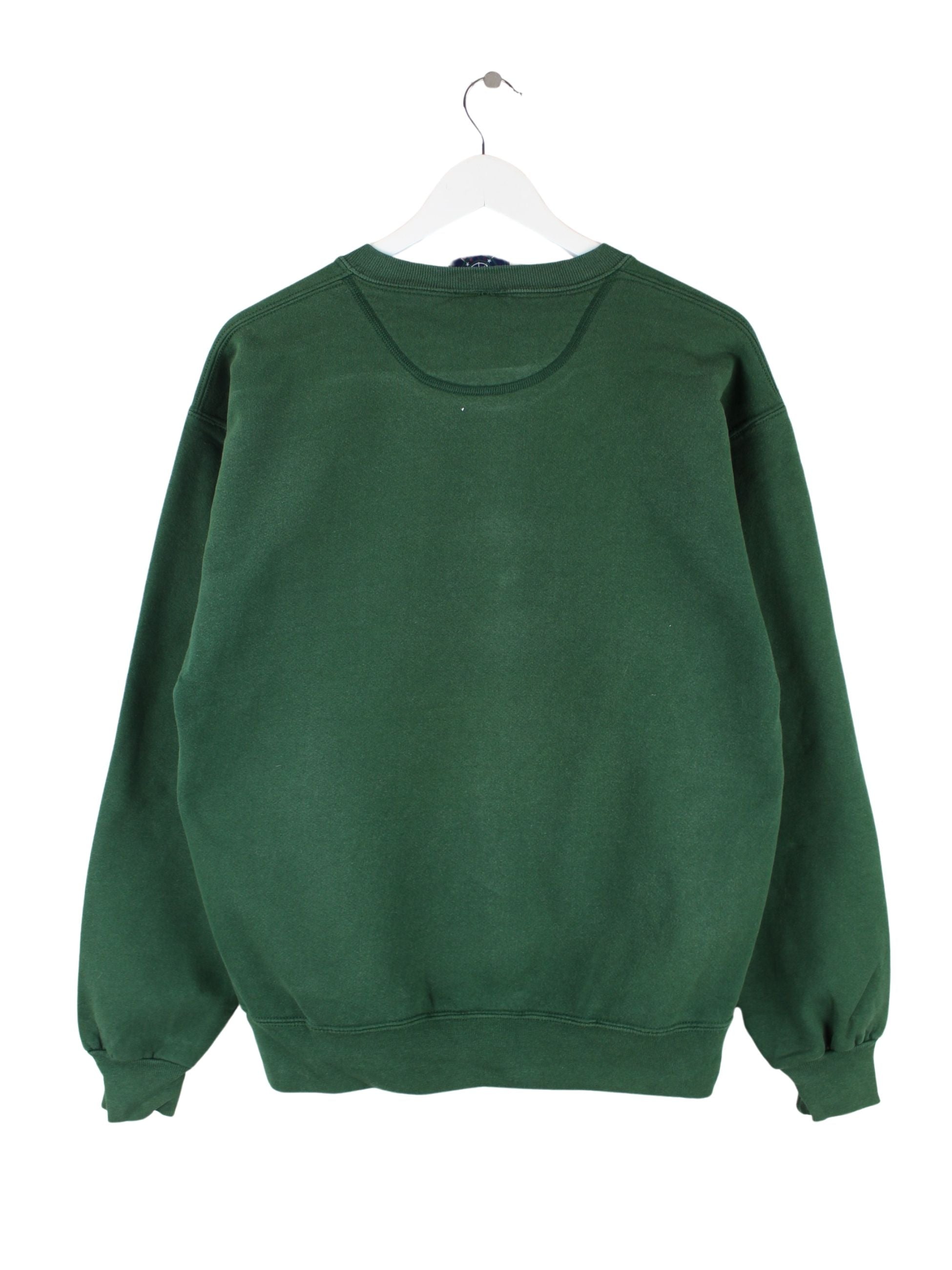 Vintage Sweater mit gesticktem Logo in Größe M aus den 90'ern. Er ist aus einer Baumwollmischung angefertigt und in Grün bei uns zu bekommen.