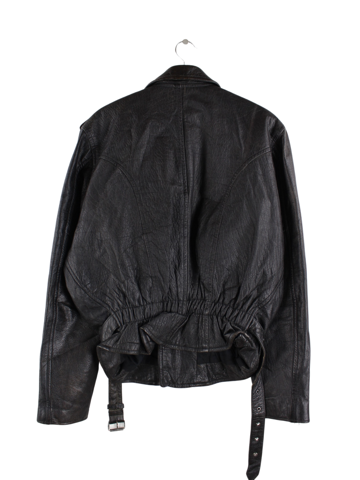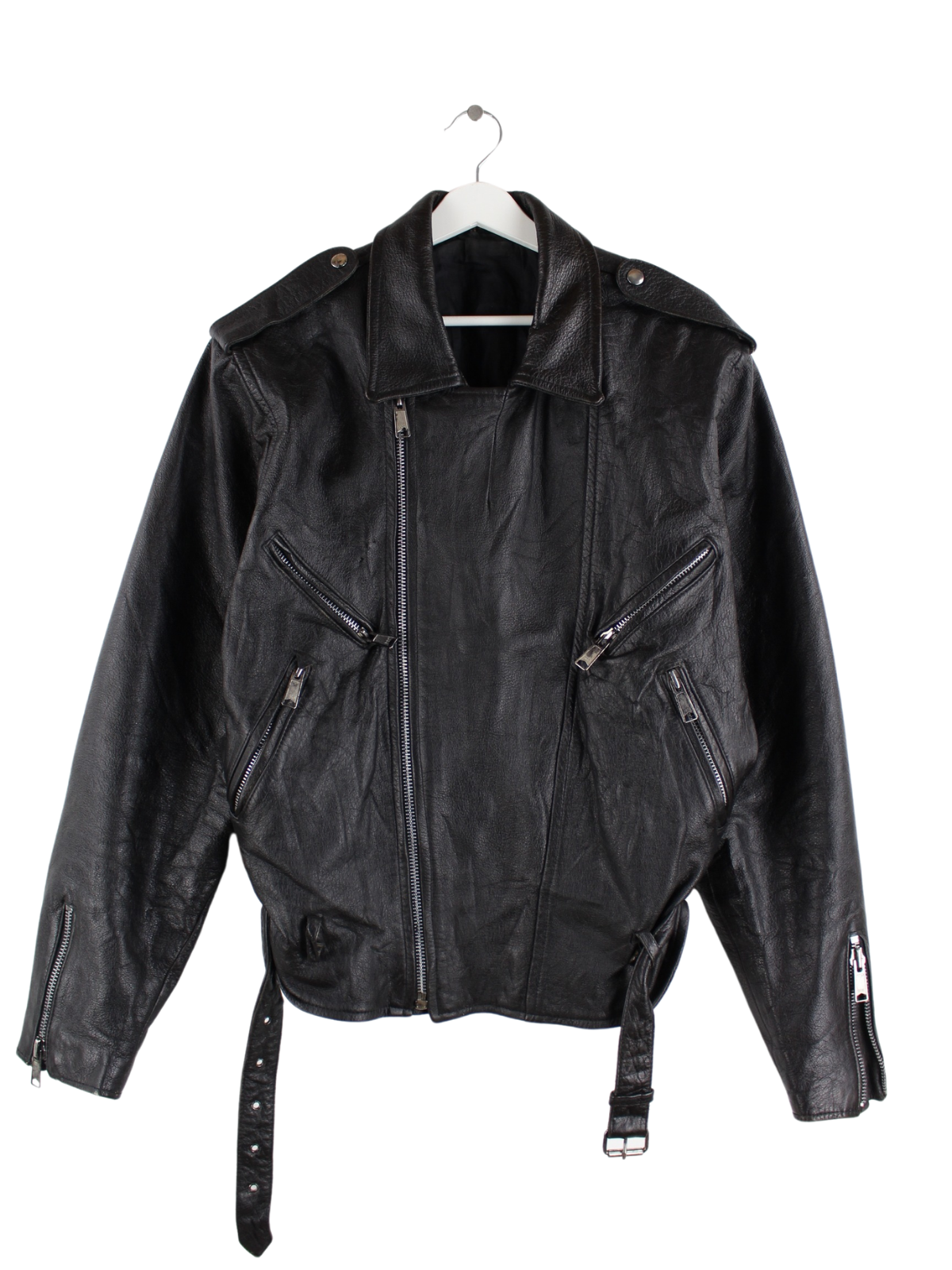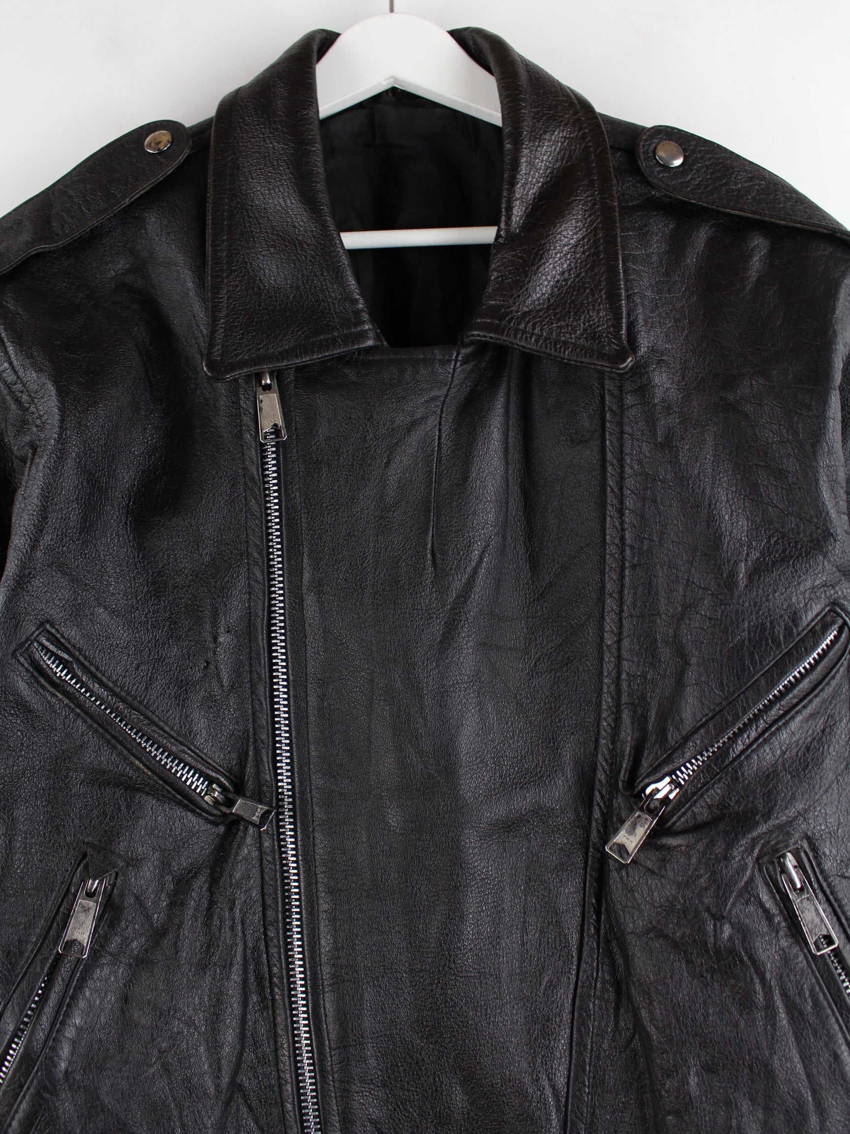 Schwarze Vintage 90s Biker Lederjacke in Größe L.