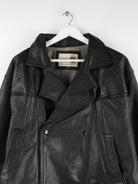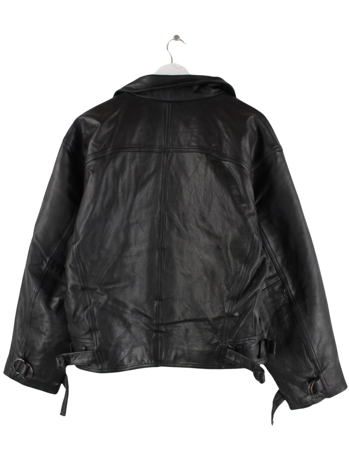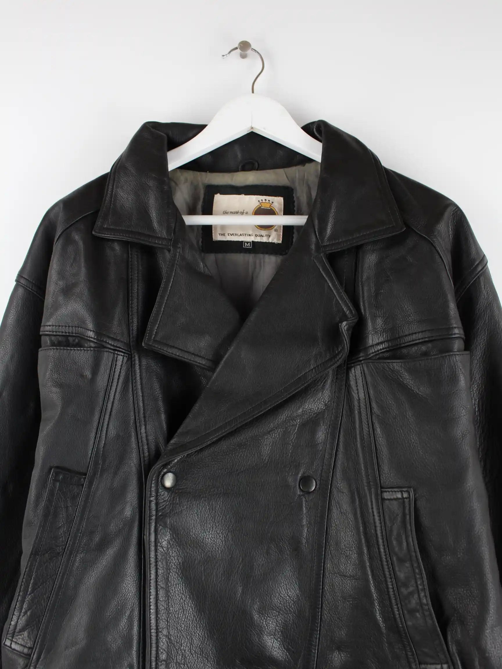 Schwarze Vintage Jacke aus den 90'ern in Größe M. Sie ist aus Leder und in sehr gutem Zustand vorrätig.