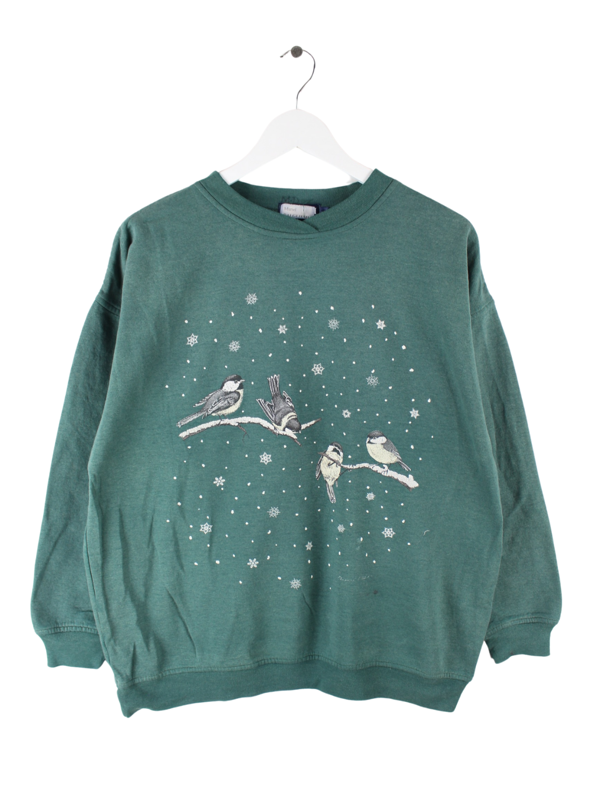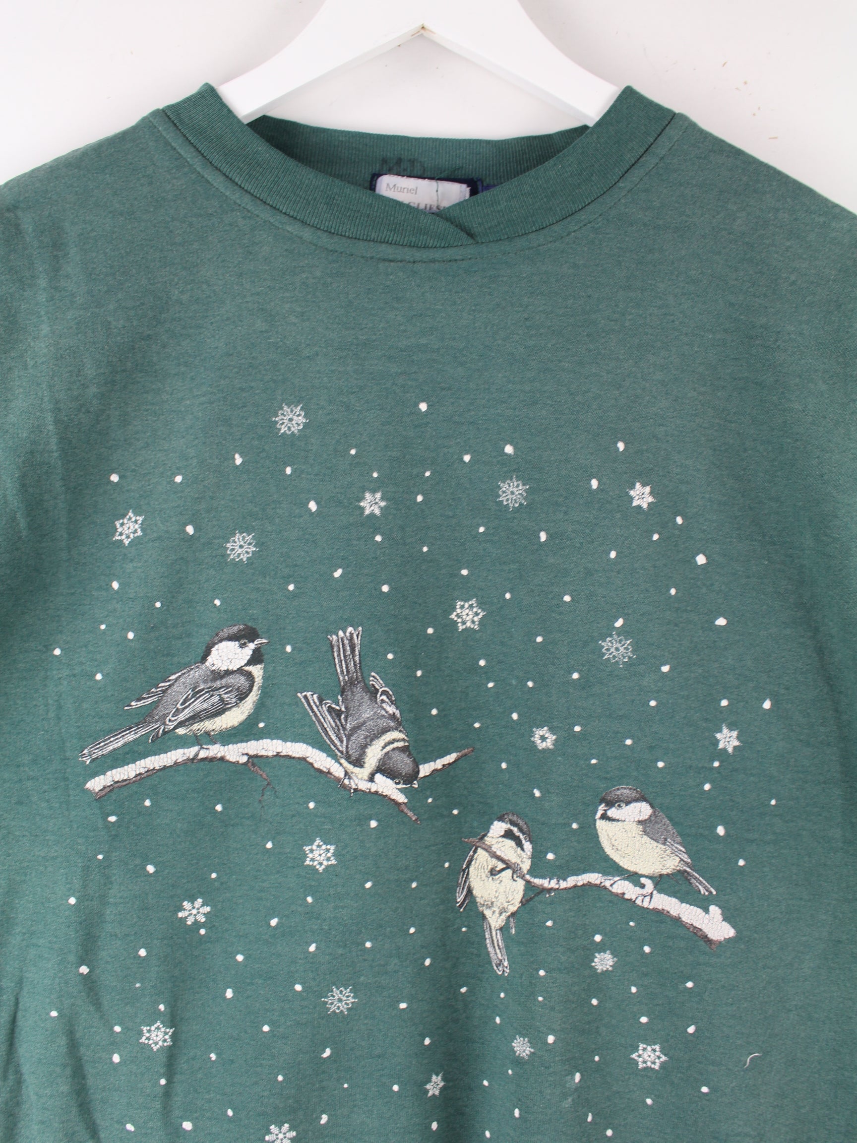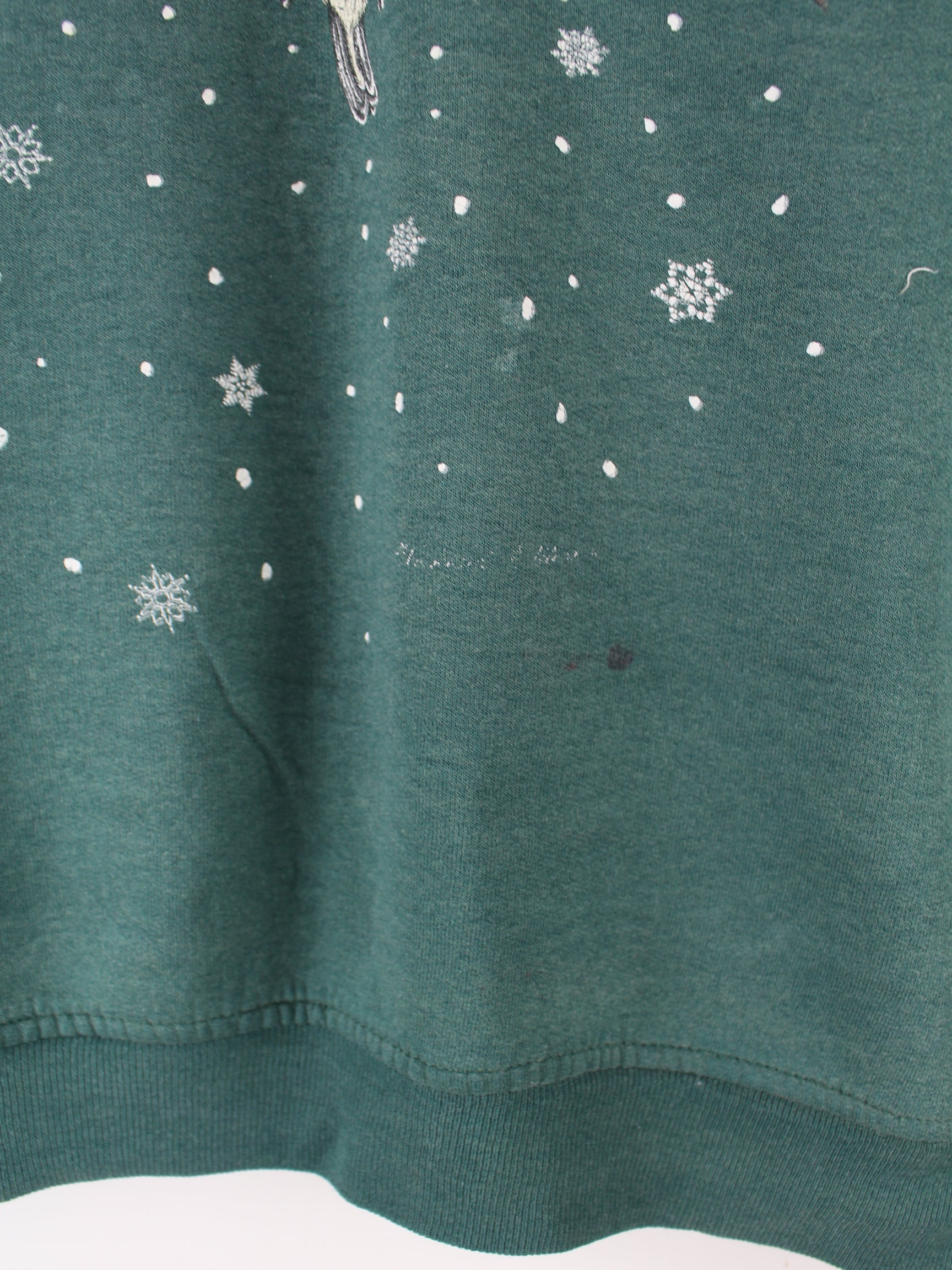 Grüner Vintage Sweater aus den 90'ern in Größe M. Er ist aus einer Baumwollmischung und in gutem Zustand zu bekommen. Mit schickem Christmas Print.