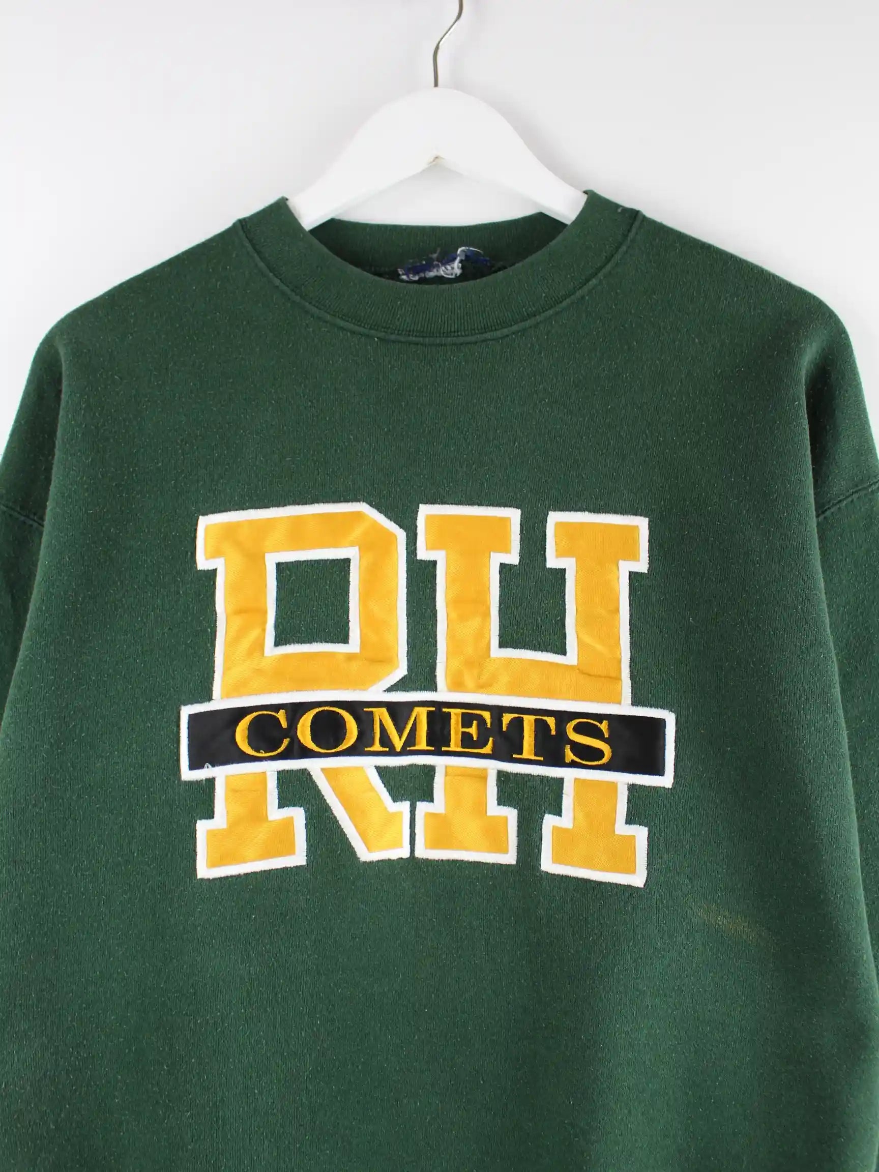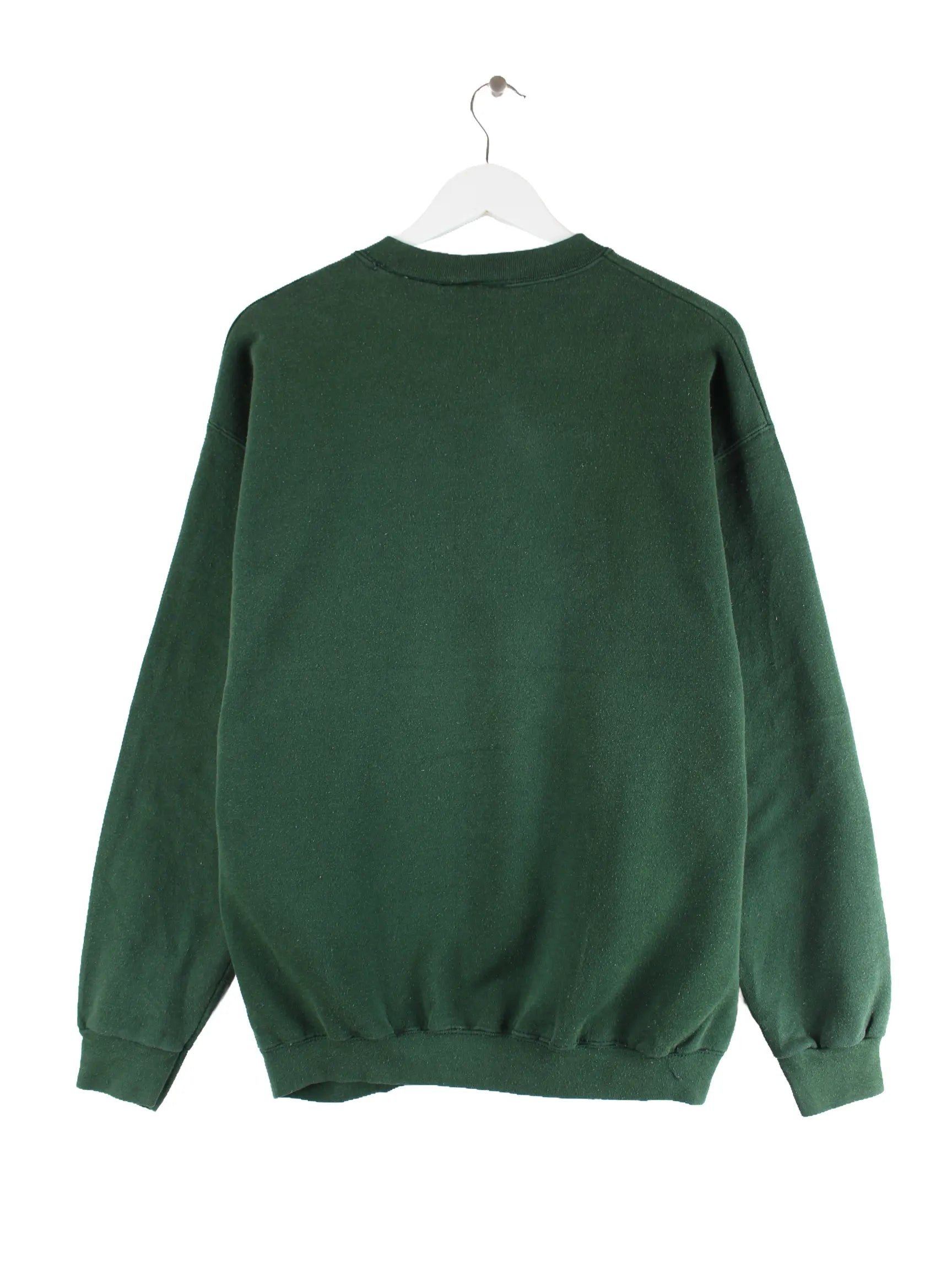 Grüner Vintage Sweater aus den 90'ern in Größe XL. Er ist aus einer Baumwollmischung gefertigt und in gutem Zustand bei uns vorrätig.