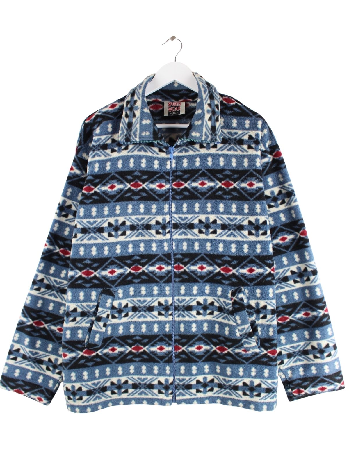 Vintage 90s Crazy Pattern Fleece Jacke Blau XL