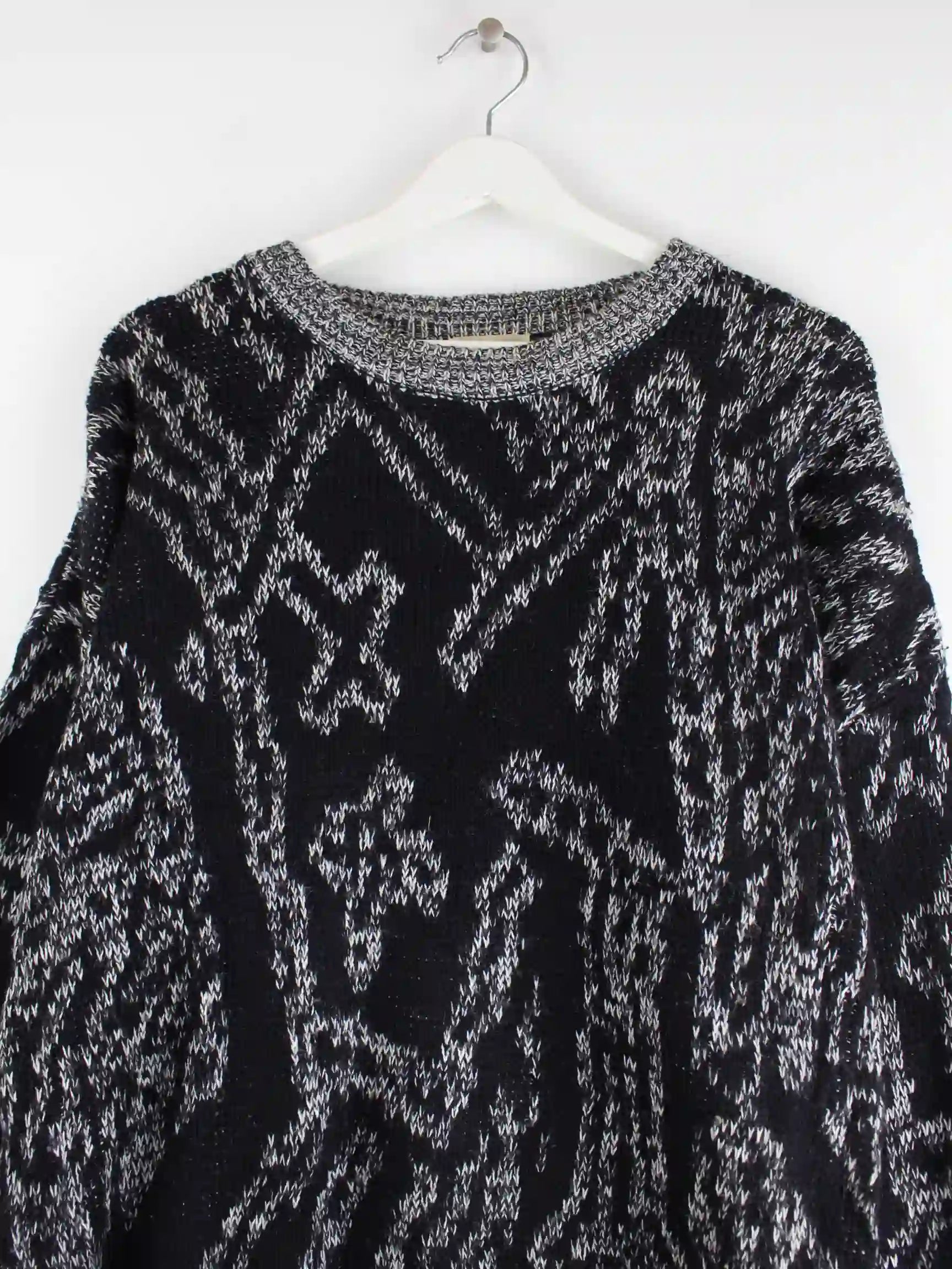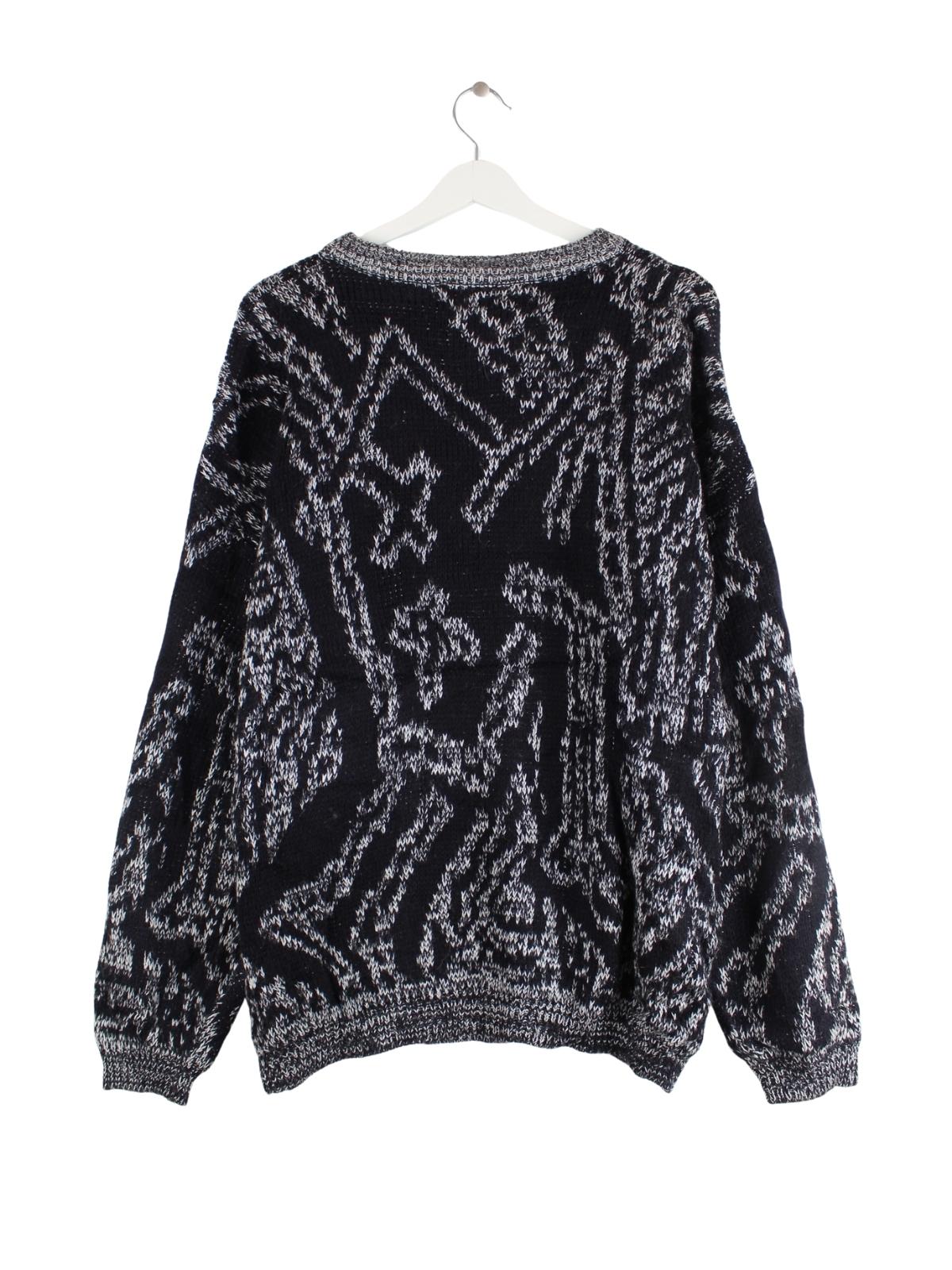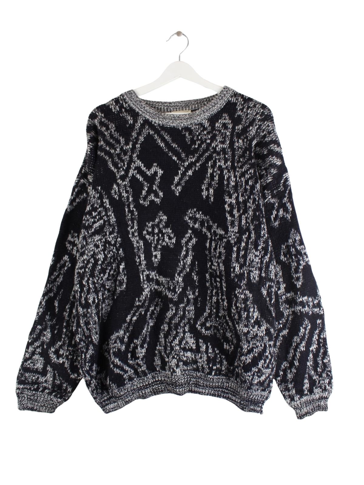Vintage 90s Crazy Pattern Strick Pullover Grau M