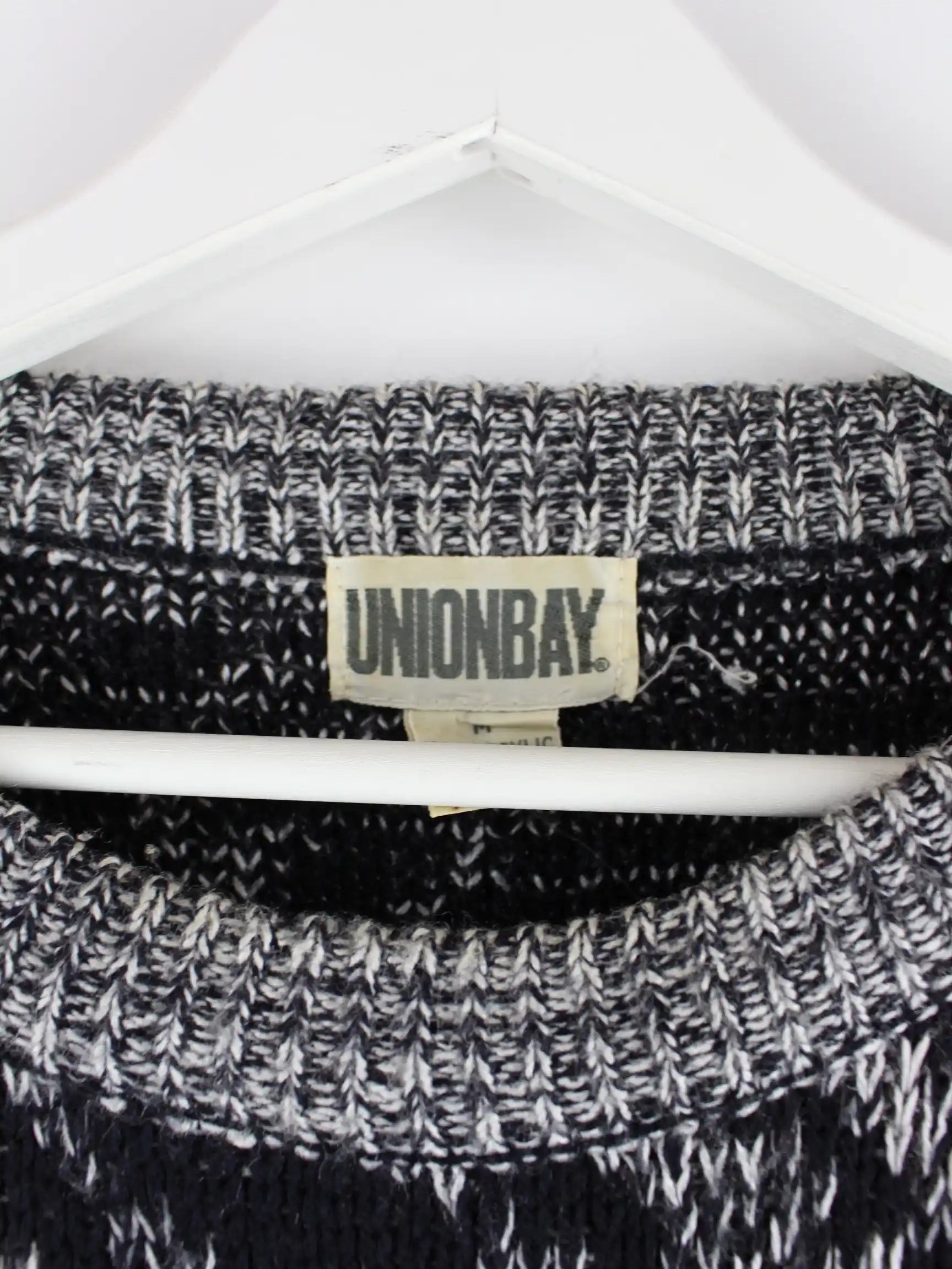 Grauer Vintage Pullover aus den 90'ern in Größe M. Er ist aus Synthetik produziert und in sehr gutem Zustand in Stock.