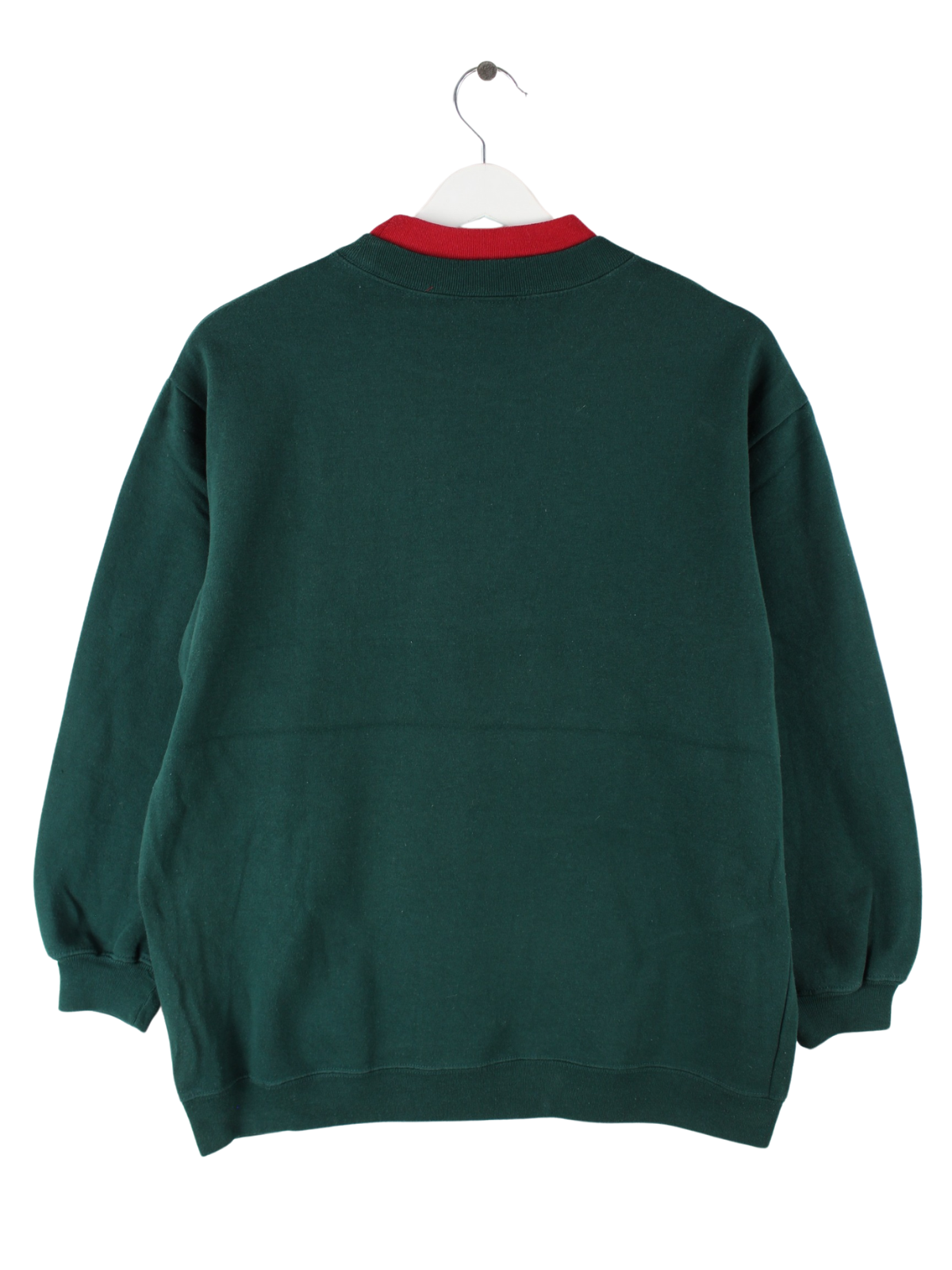 Grüner Vintage Sweater mit Stickereien aus den 90'ern in Größe S. Er ist aus einer Baumwollmischung und in gutem Zustand auf Lager.