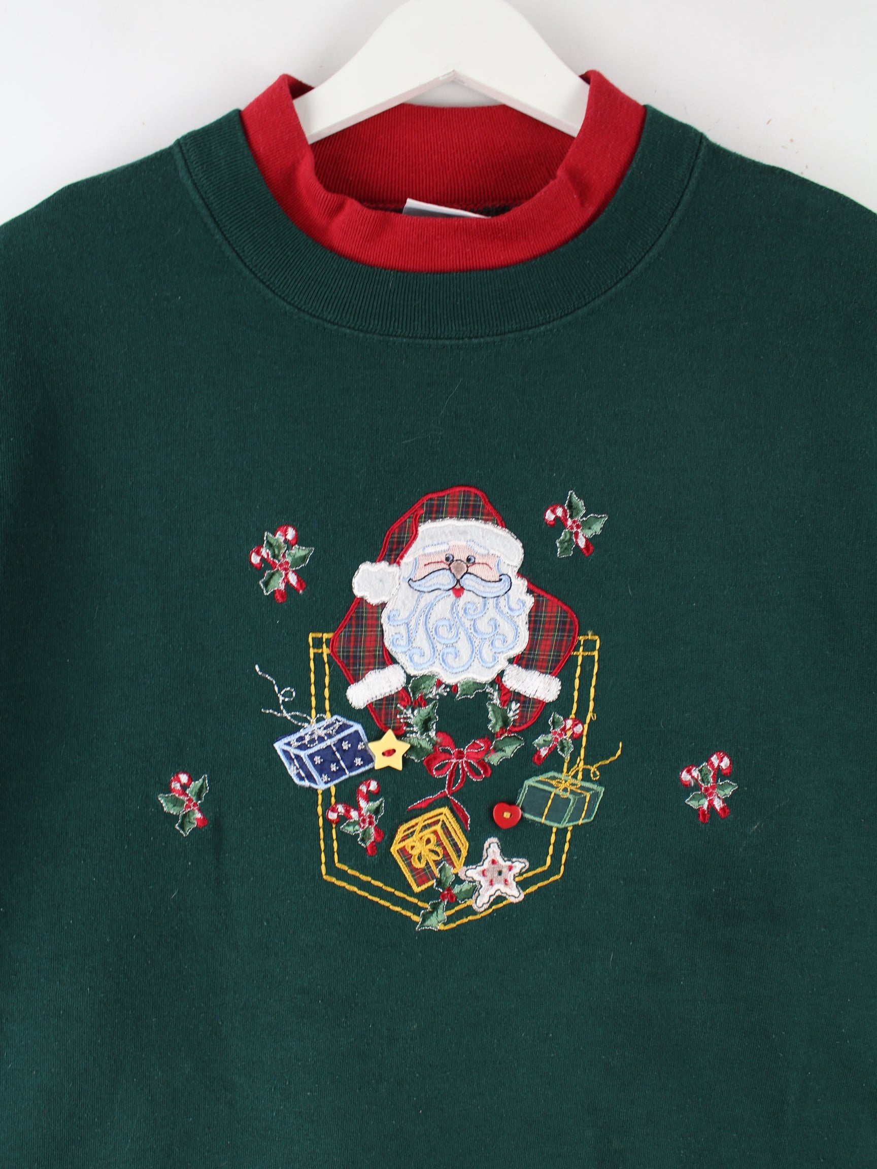 Vintage 90s Embroidered Christmas Sweater Grün S