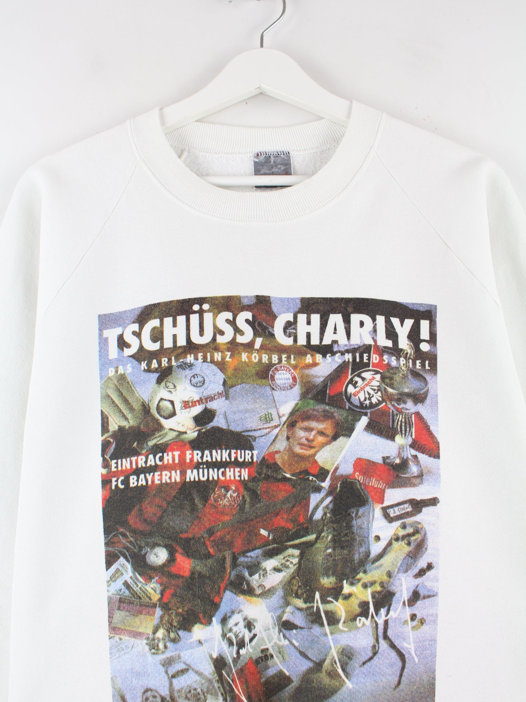 Vintage 1991 Eintracht Frankfurt Charly Print Sweater Weiß M