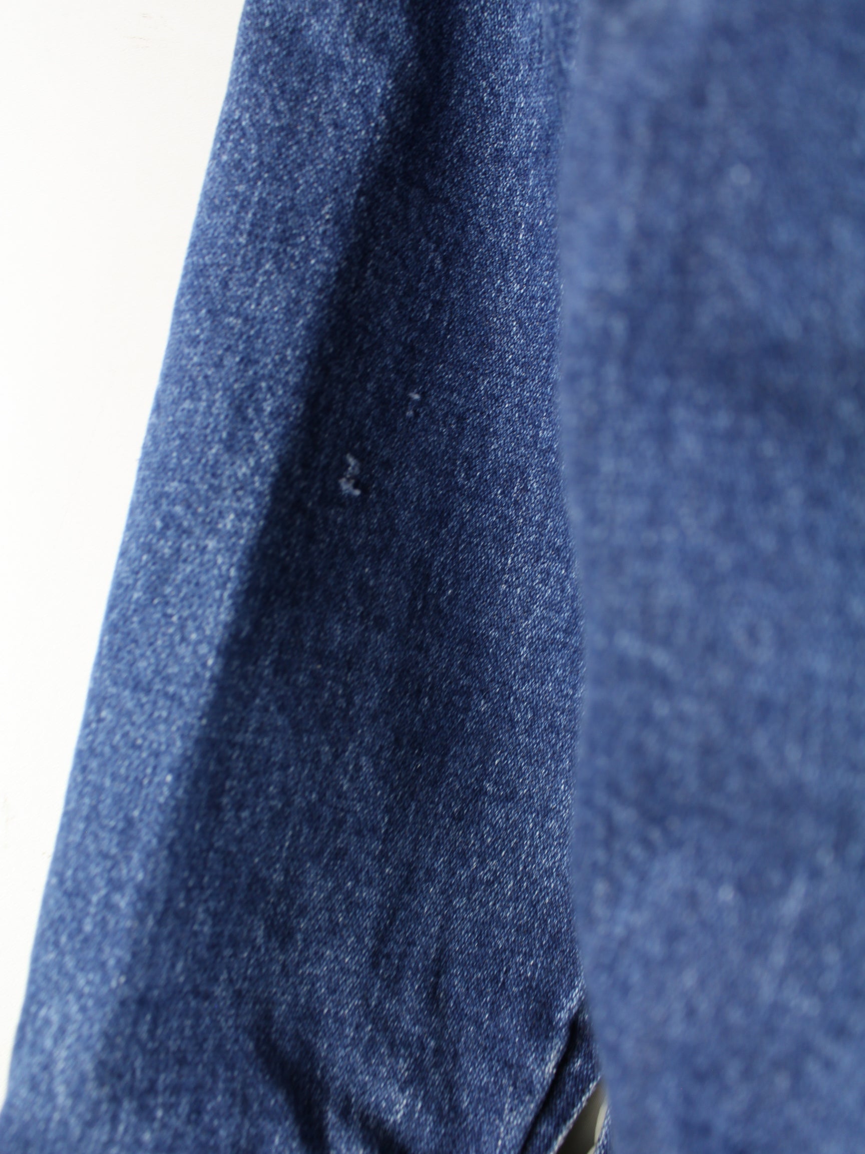 Blaue Vintage Jacke aus den 90'ern in Größe L. Sie ist aus Baumwolle . Den Zustand würden wir als 'In Ordnung' bezeichnen (vergl. Bilder).