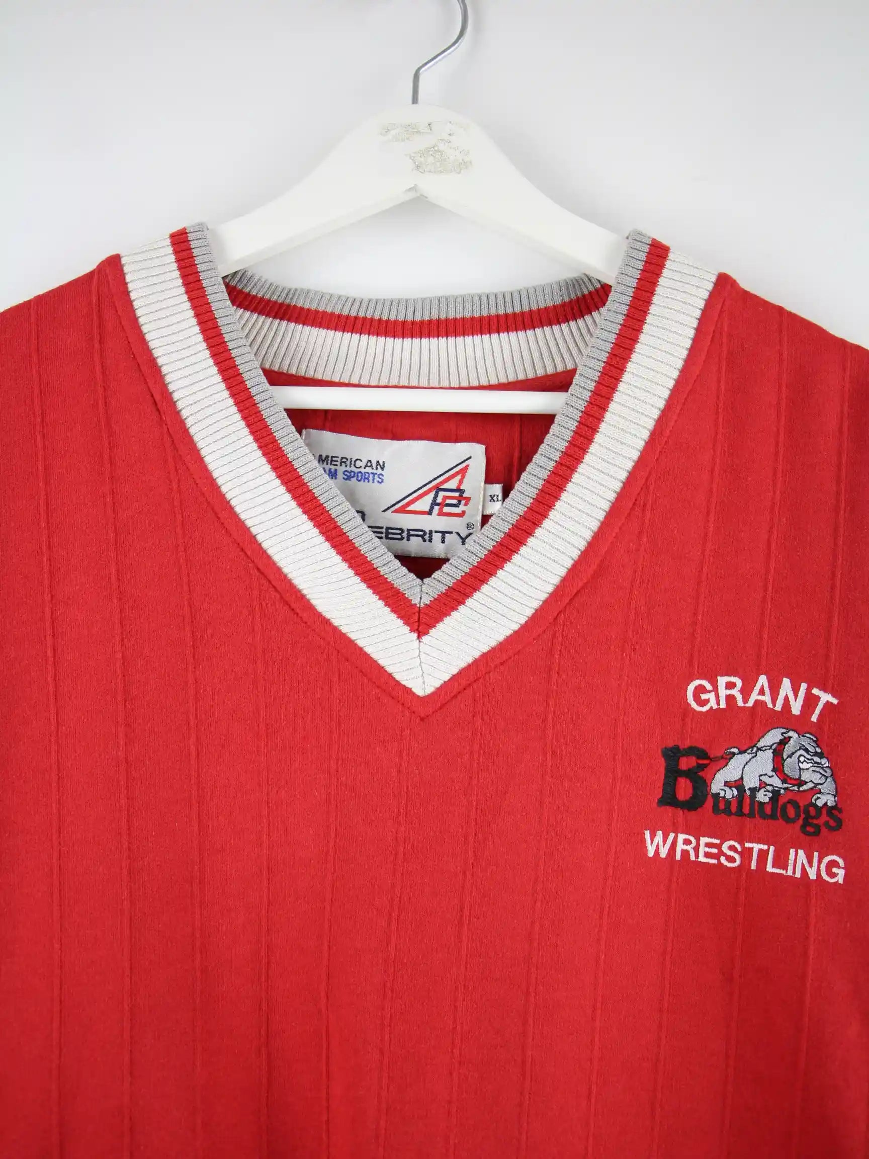 Vintage 90s Grant Bulldogs Wrestling Sweater Rot XL