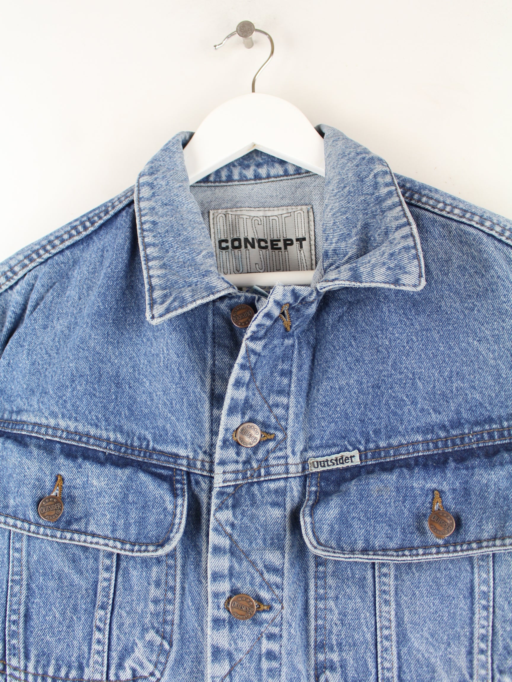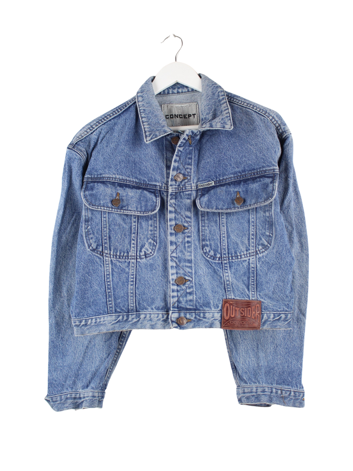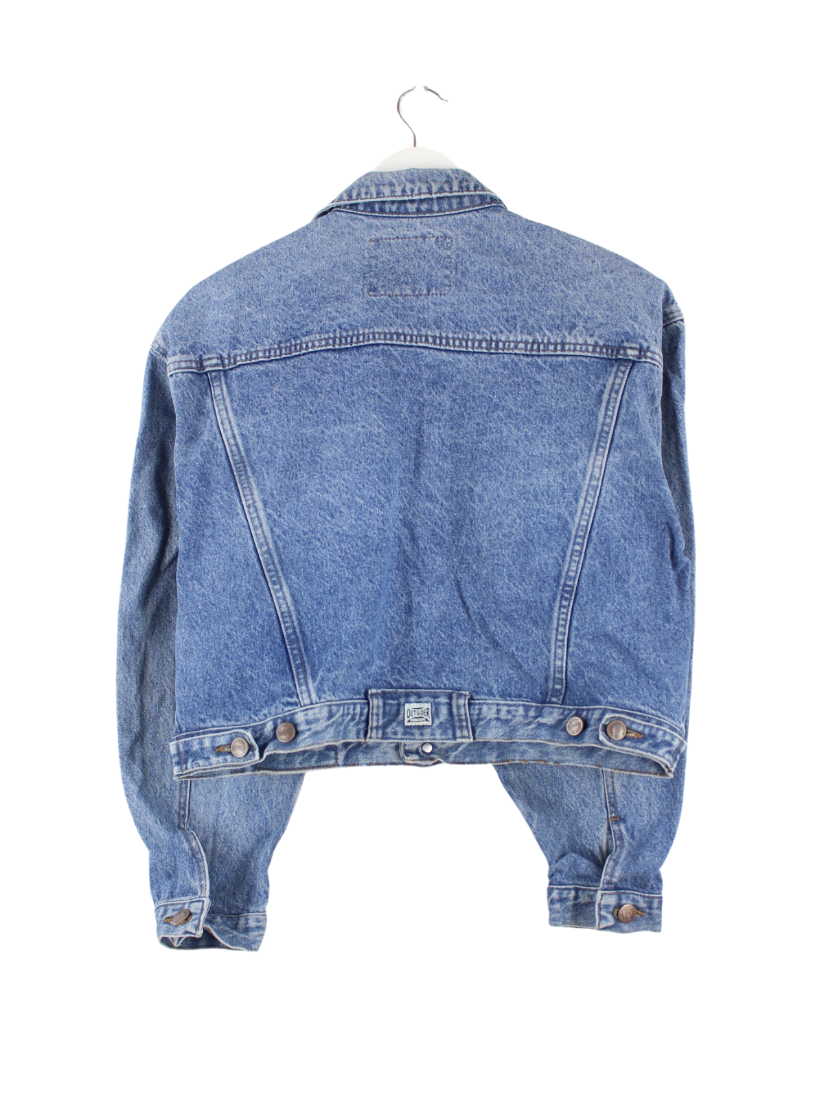 Blaue Vintage Leichte Jacke aus den 90'ern in Größe L. Sie ist aus Baumwolle gemacht und in sehr gutem Zustand vorrätig.