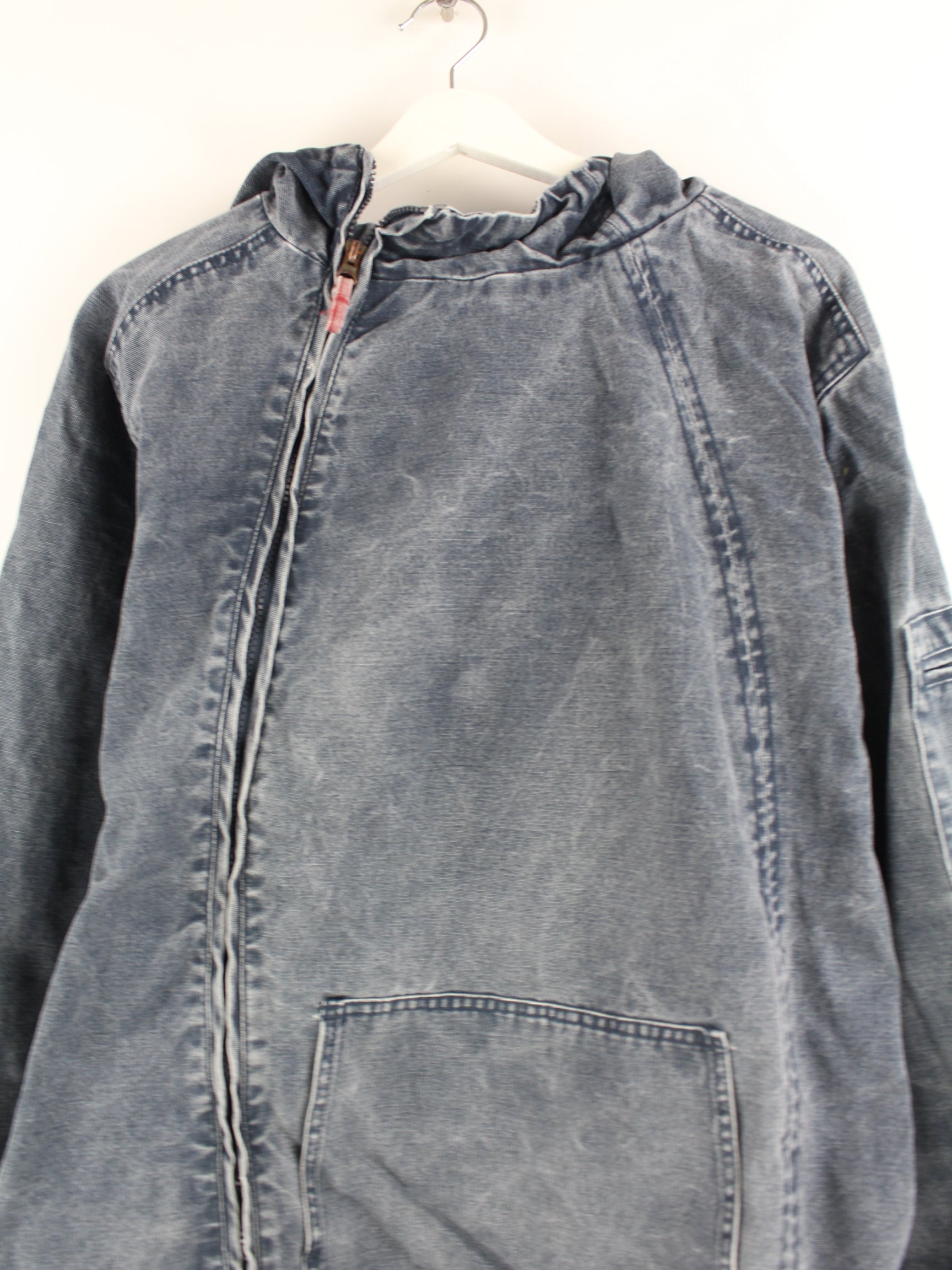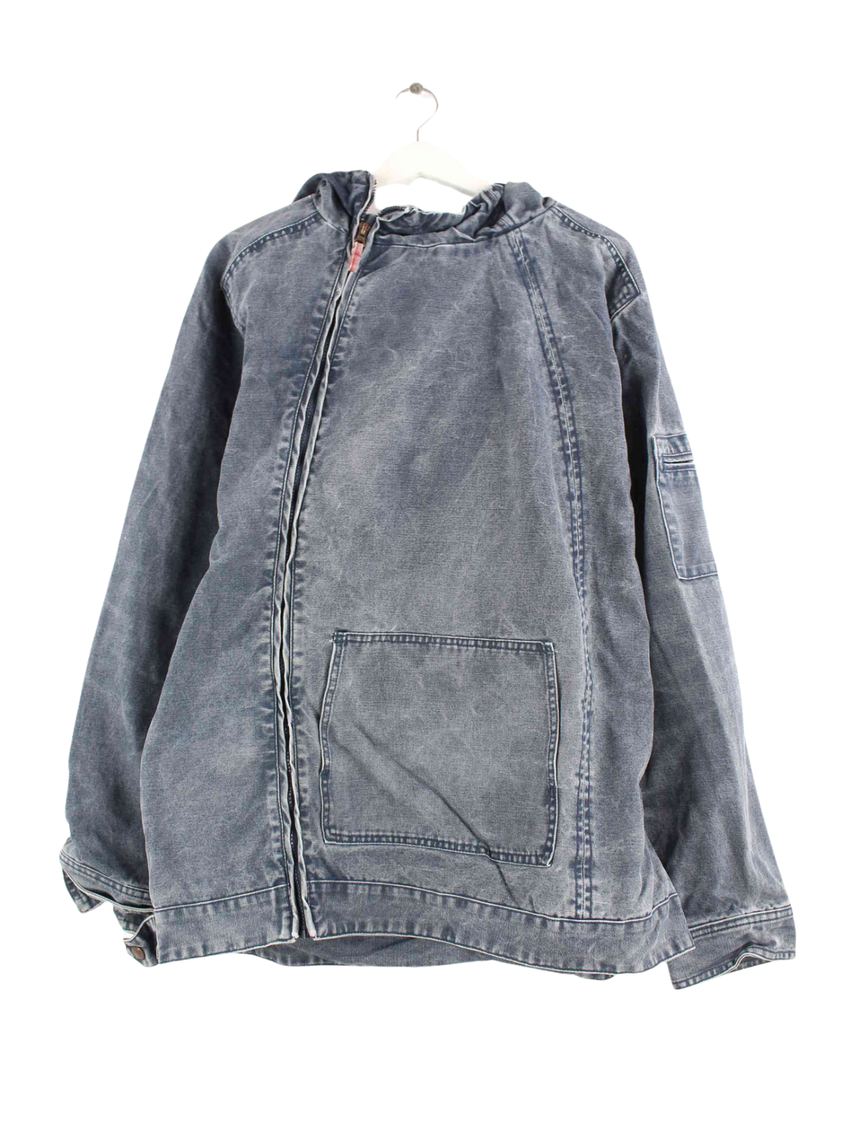 Blaue Vintage Jacke aus den 90'ern in Größe XXL. Sie ist aus Baumwolle produziert und in sehr gutem Zustand bei uns vorrätig.