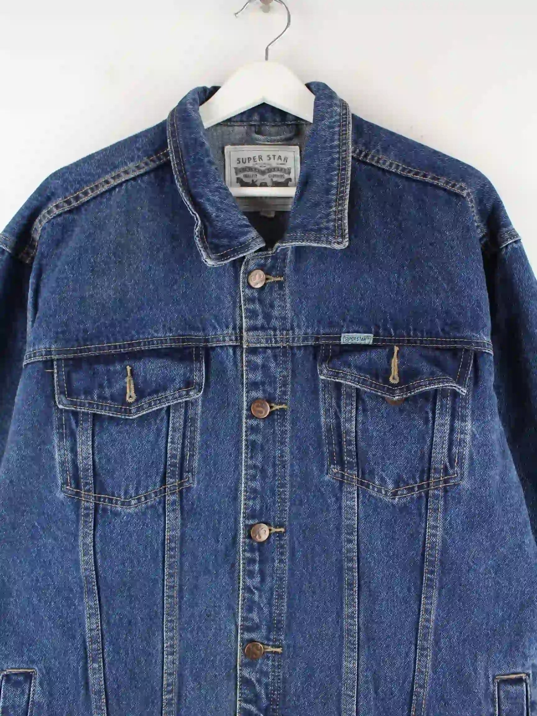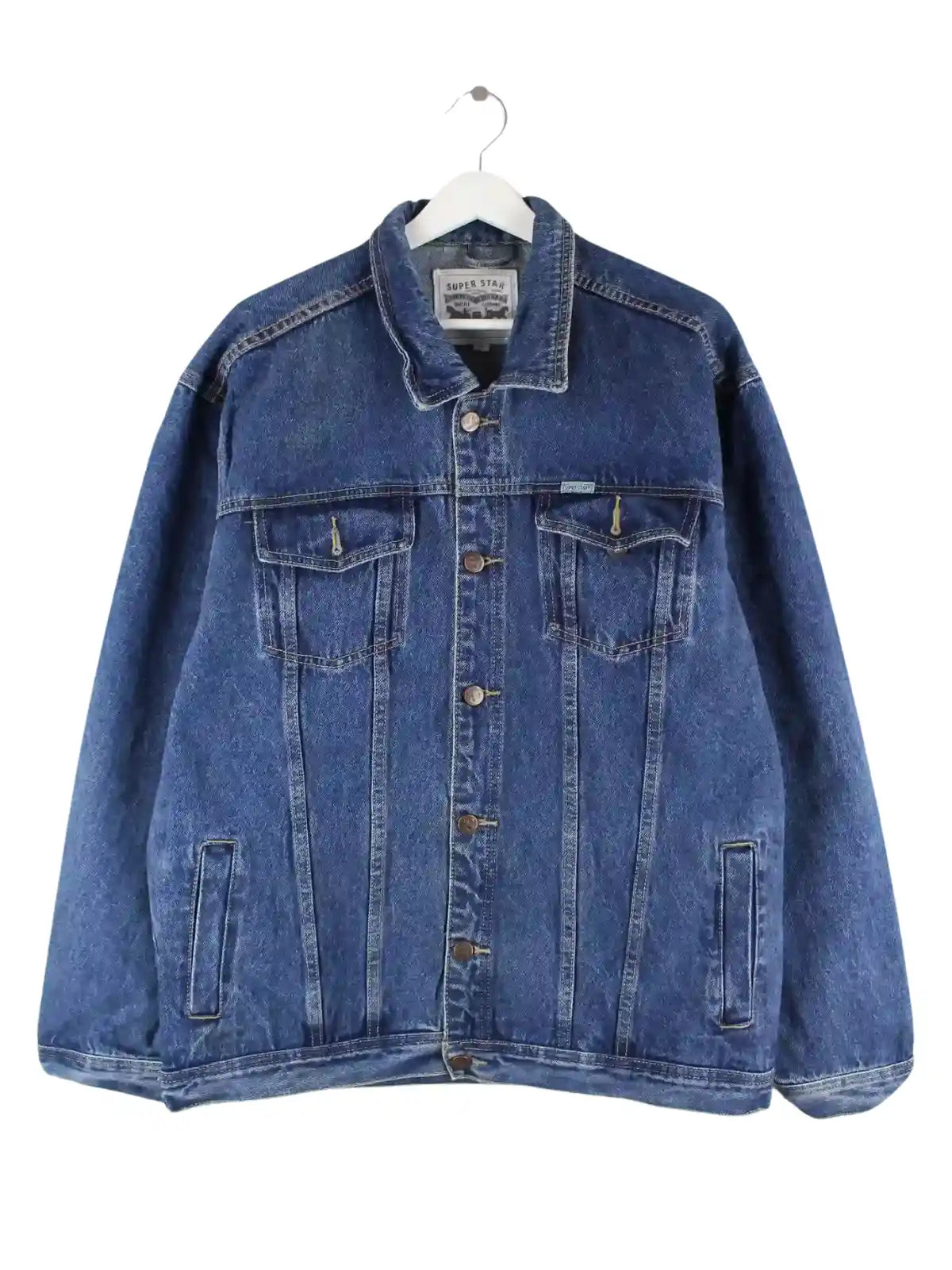 Vintage Leichte Jacke in Größe XXL aus den 90'ern. Sie ist aus Baumwolle gefertigt und in Blau auf Lager.