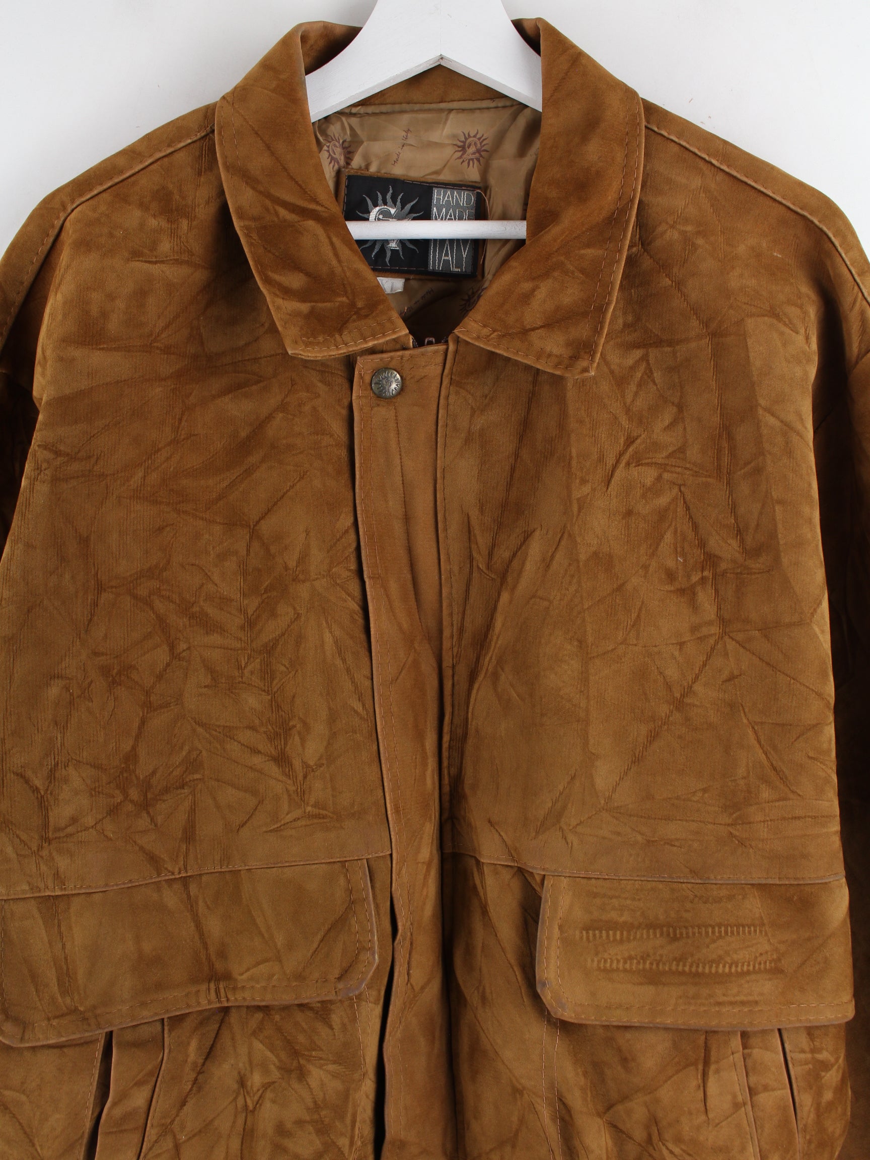 Vintage 90s Leder Velour Suede Bomber Jacke Braun XL