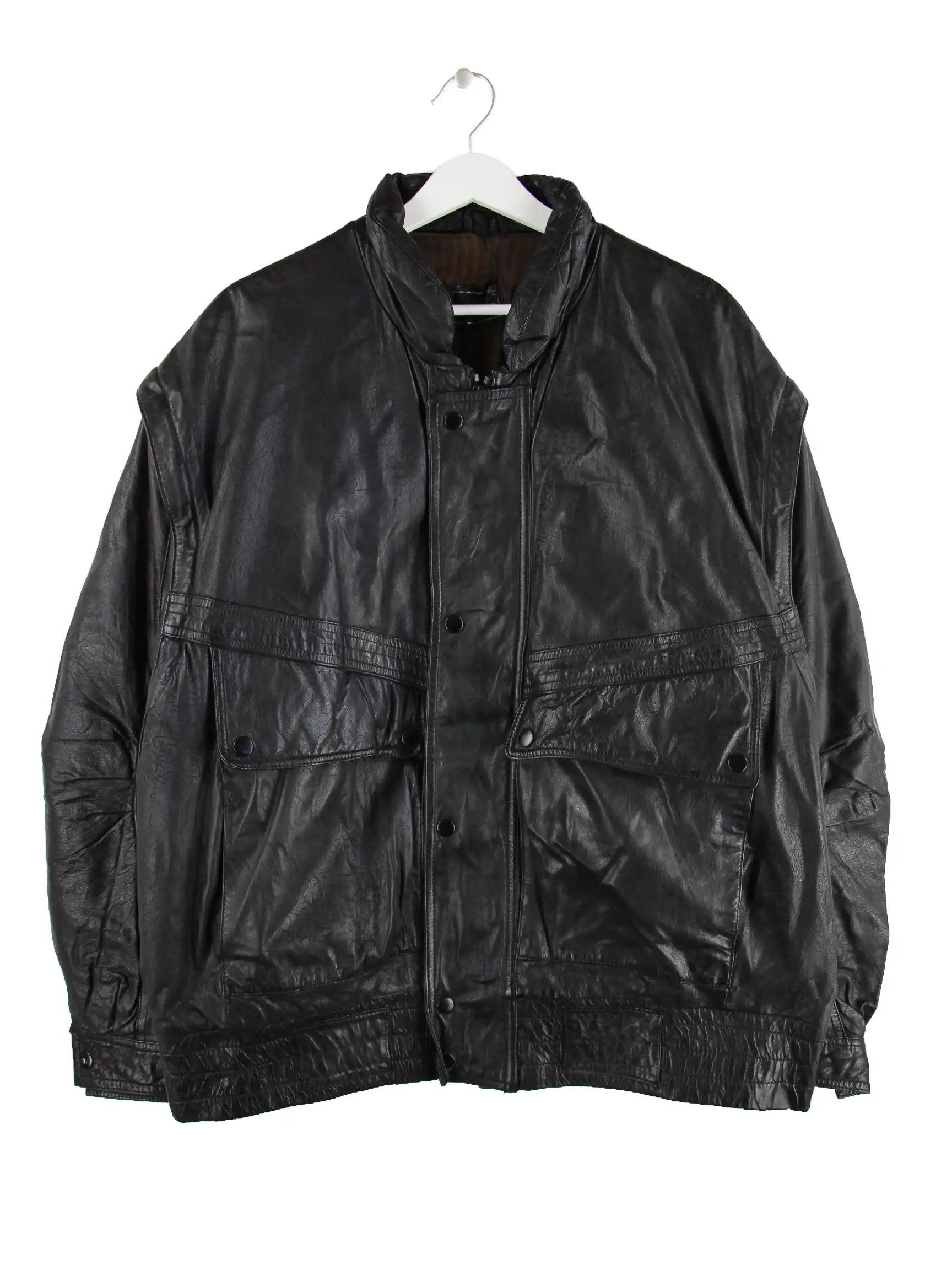 Schwarze Vintage Jacke aus den 90'ern in Größe L. Sie ist aus Leder produziert und in sehr gutem Zustand im Angebot.