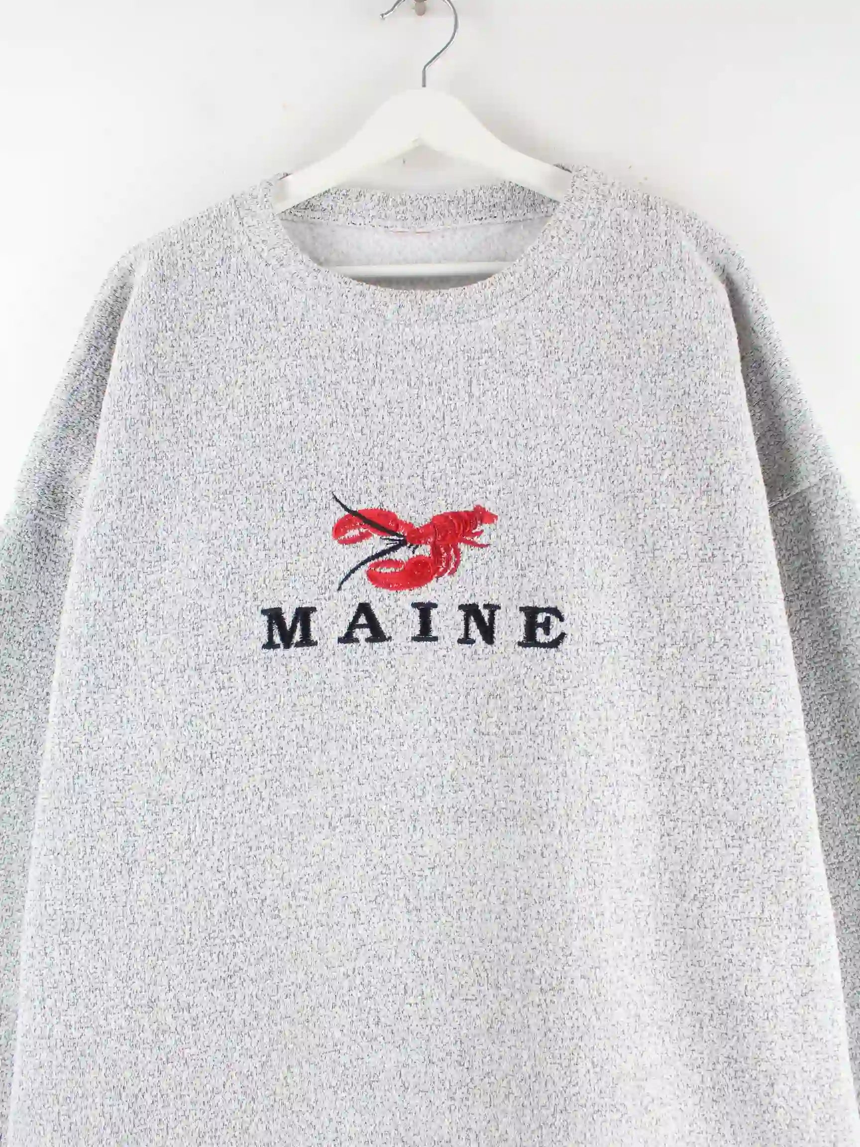 Vintage 90s Lobster Maine Embroidered Inside Out Sweater Grau 3XL