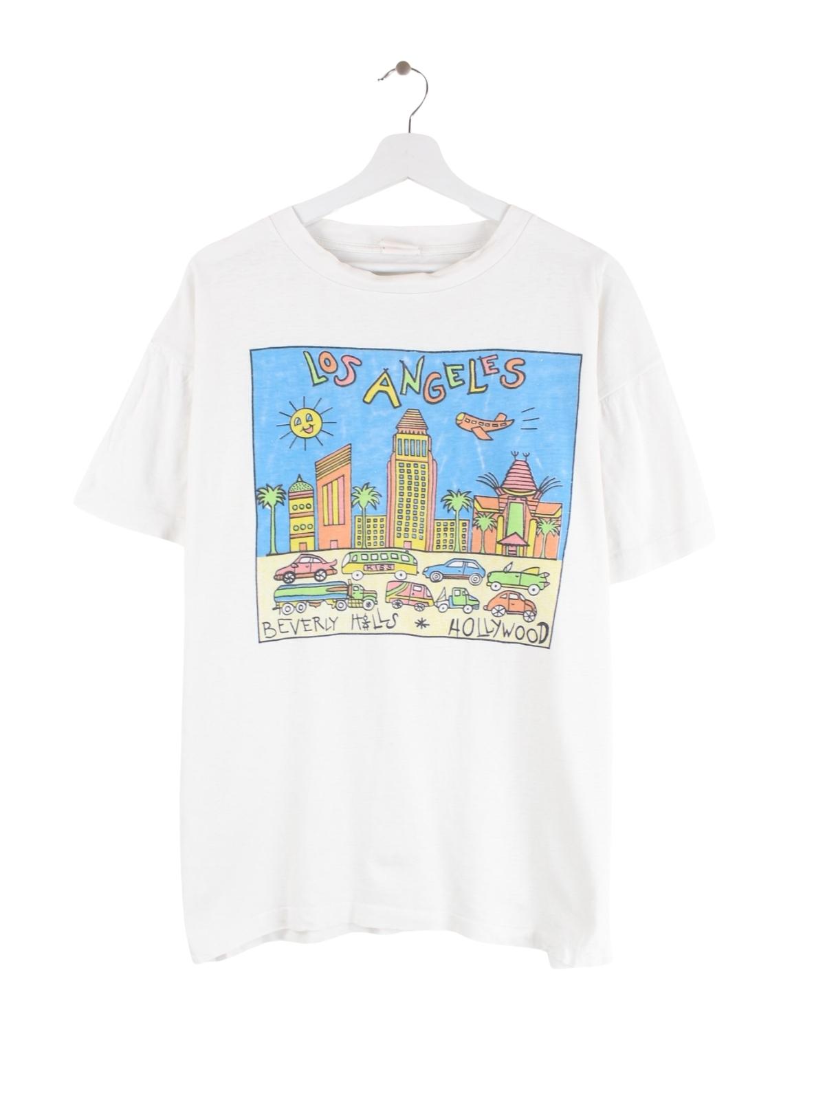 Vintage 90s Los Angeles Print Single Stitch T-Shirt Weiß XL