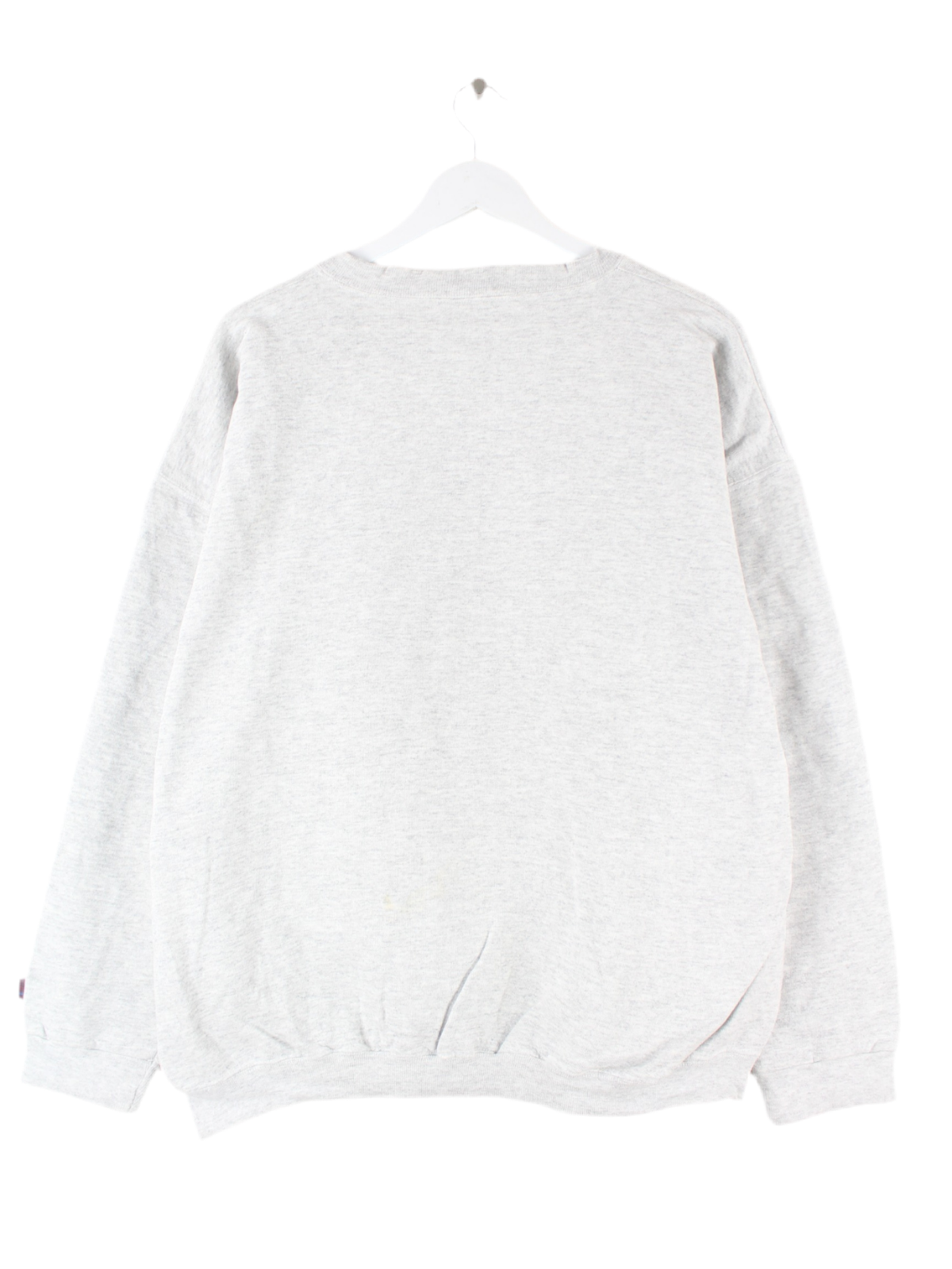 Vintage Sweater mit Stick in Größe XL aus den 90'ern. Er ist aus einer Baumwollmischung hergestellt und in Grau im Bestand.