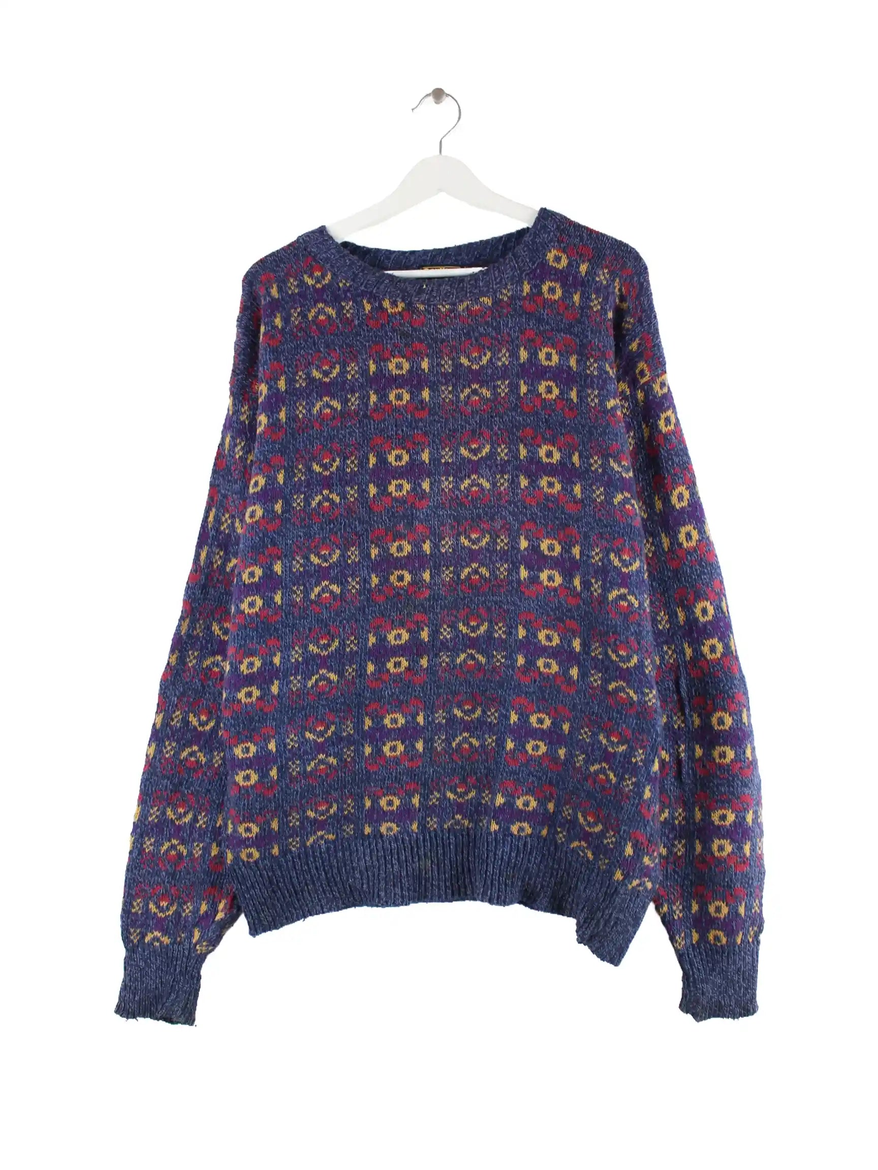 Vintage 90s Pattern Pullover Blau XL