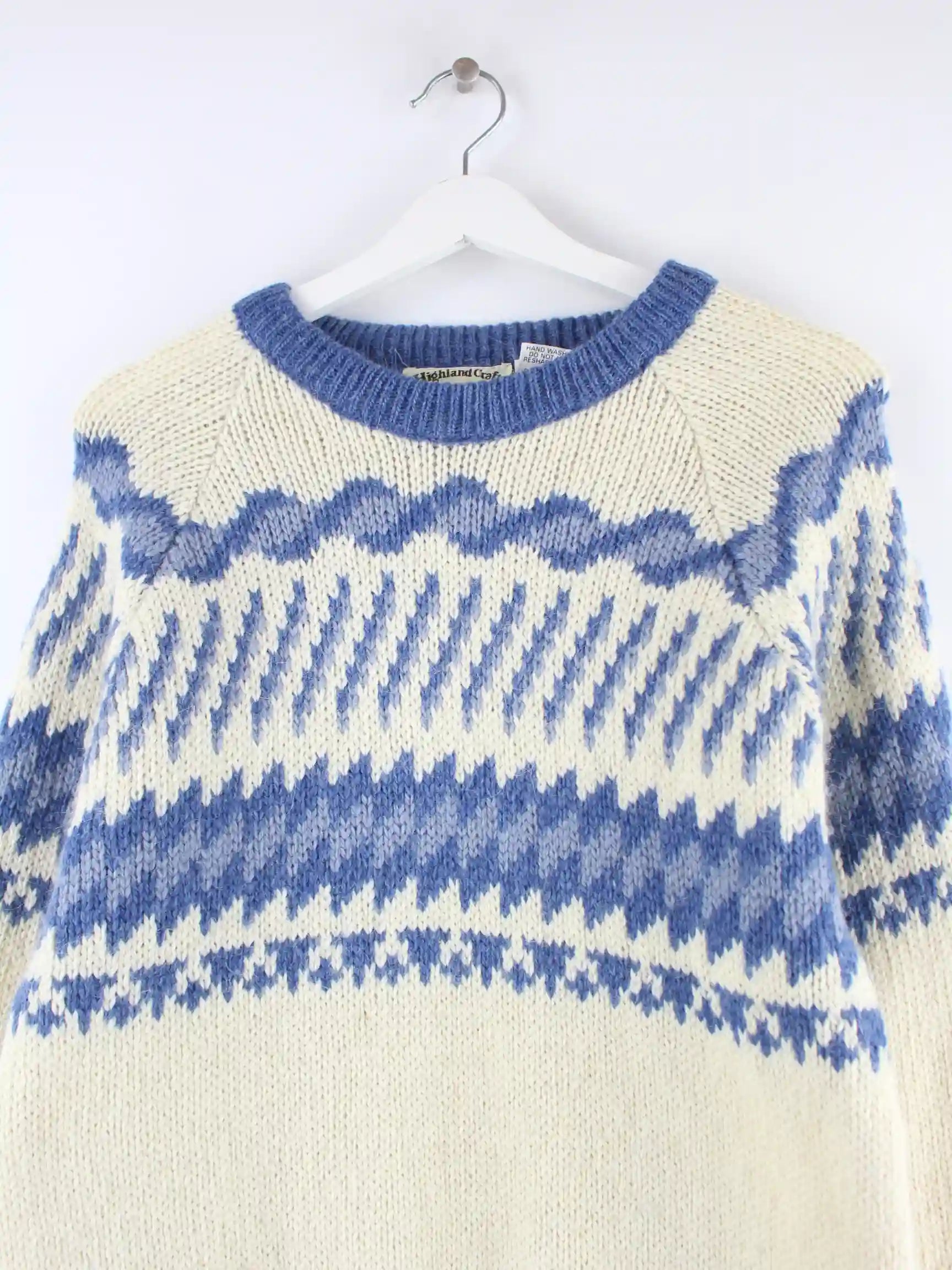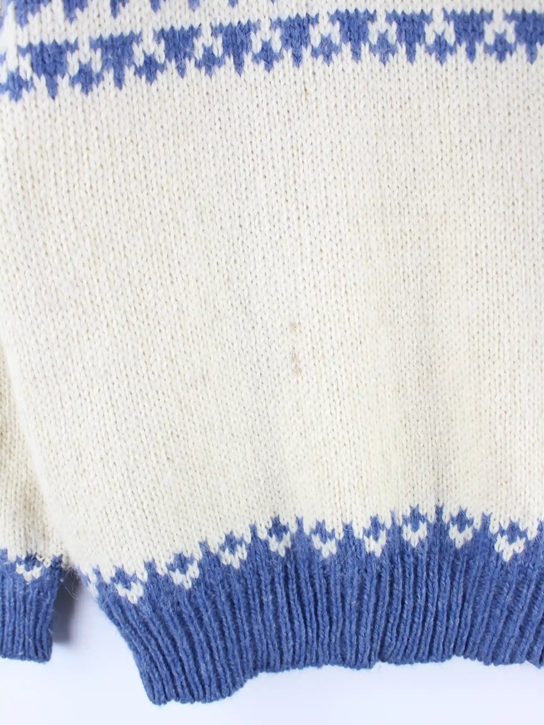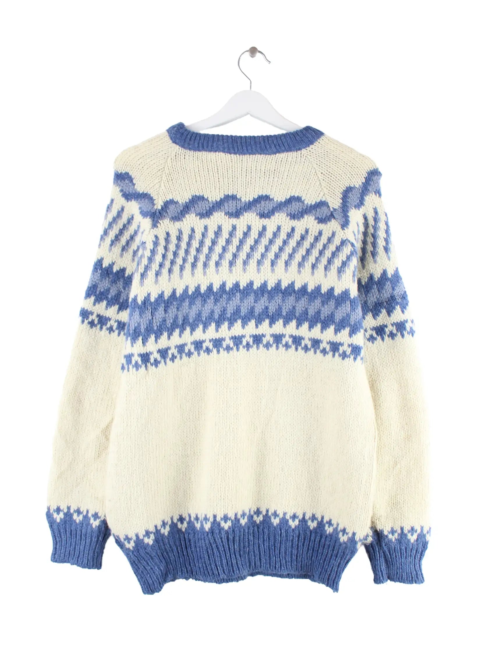 Vintage Pullover in Größe M aus den 90'ern. Er ist aus Wolle produziert und in Beige im Bestand.
