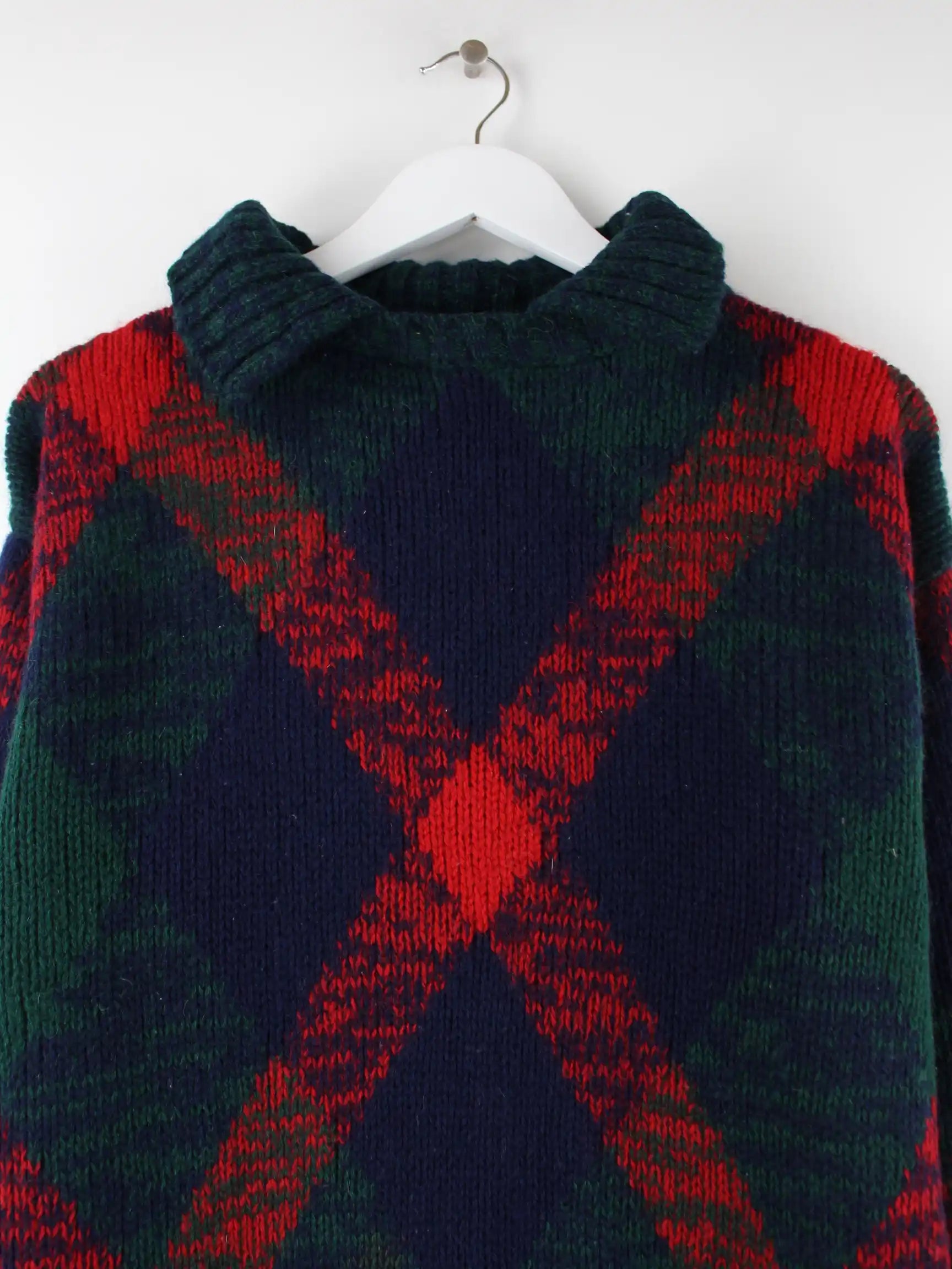 Vintage 90s Pattern Woll Pullover Mehrfarbig M