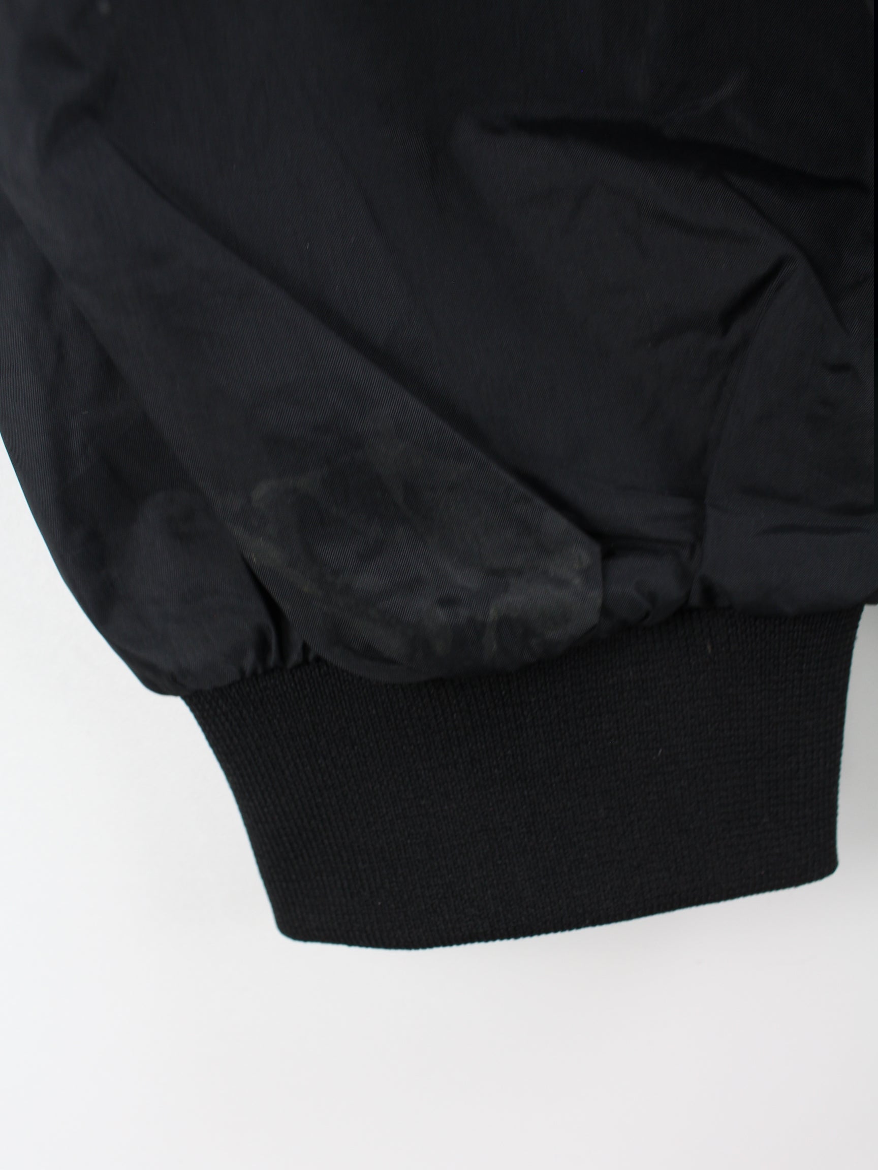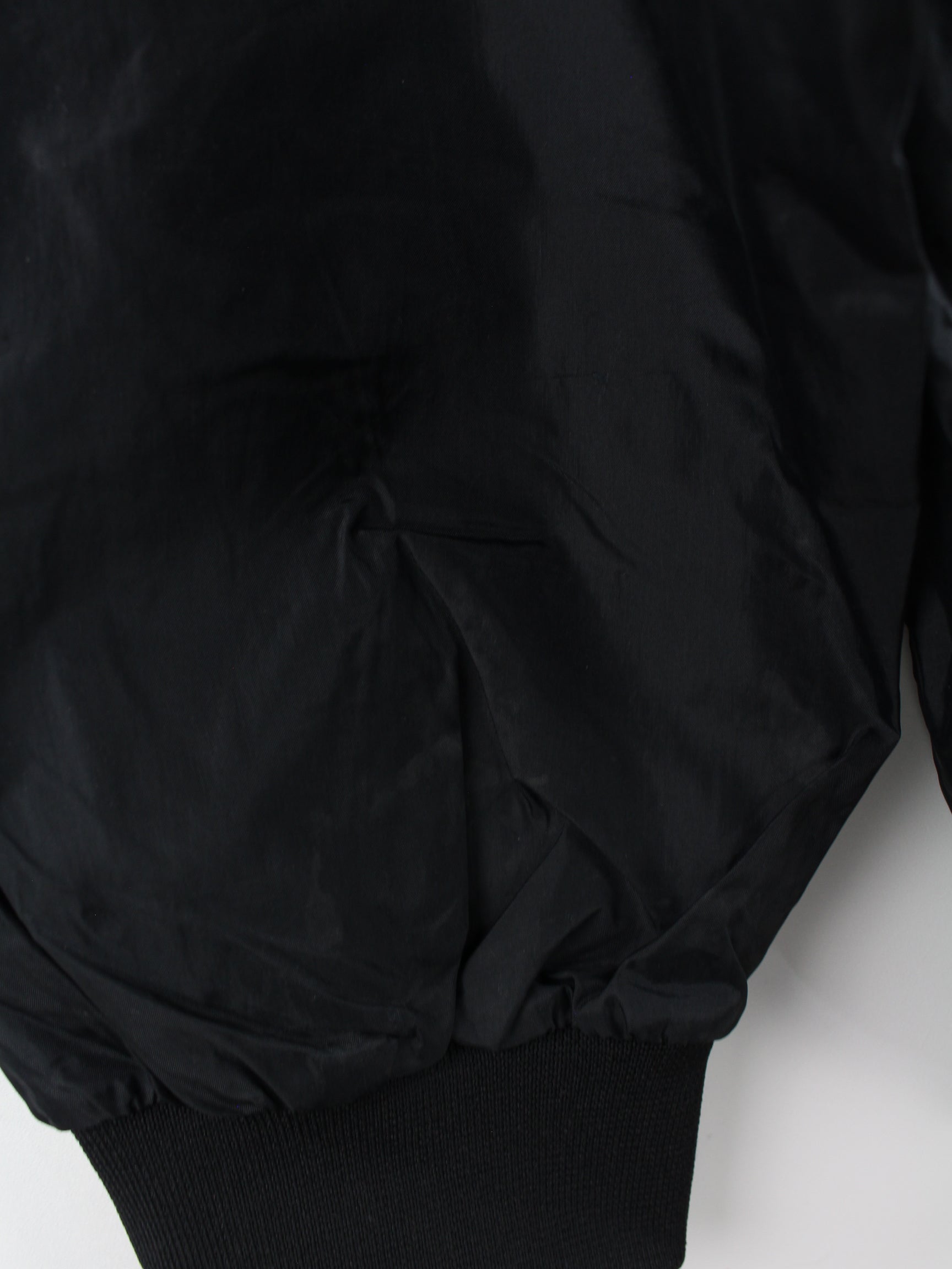 Vintage Leichte Jacke mit gestickten Mustern in Größe XXL aus den 90'ern. Sie ist aus Synthetik und in Schwarz bei uns zu bekommen.