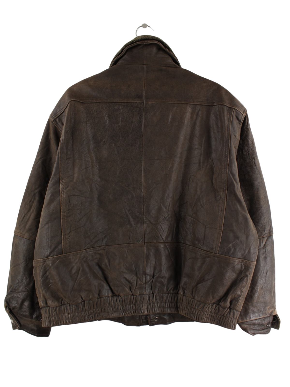 Vintage Jacke in Größe XL aus den 90'ern. Sie ist aus Leder angefertigt und in Braun im Bestand.