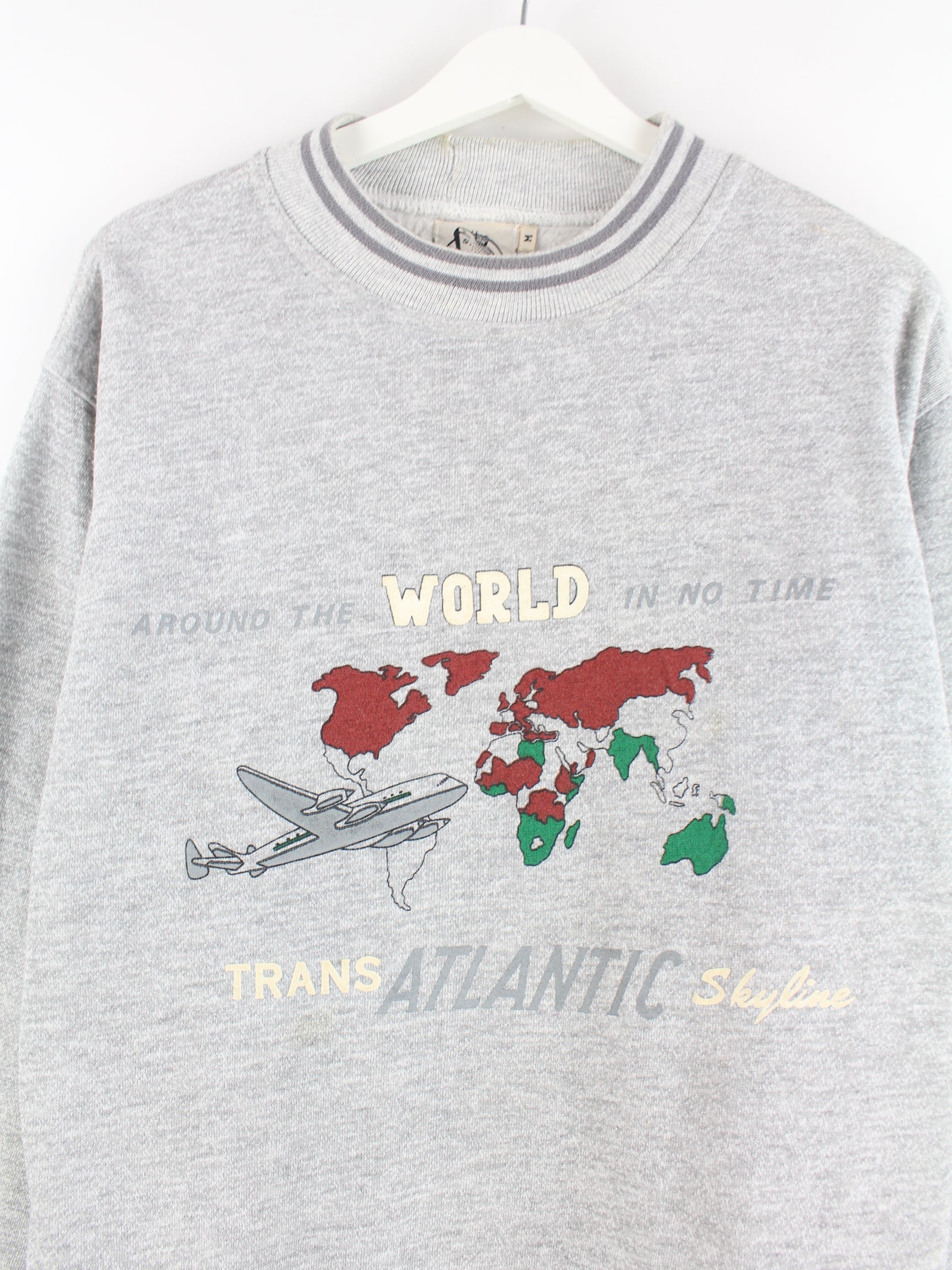 Netter Vintage Sweater in Größe M aus den 90'ern. Er ist aus einer Baumwollmischung hergestellt und in Grau lieferbar. Mit chiquem 90s Print.