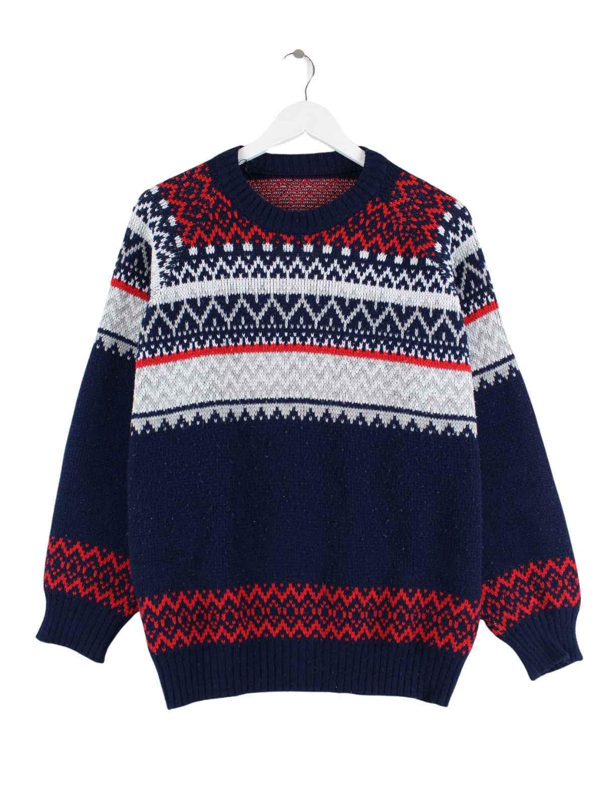Blauer Vintage Pullover aus den 90'ern in Größe M. Er ist aus Baumwolle produziert und in gutem Zustand in Stock.