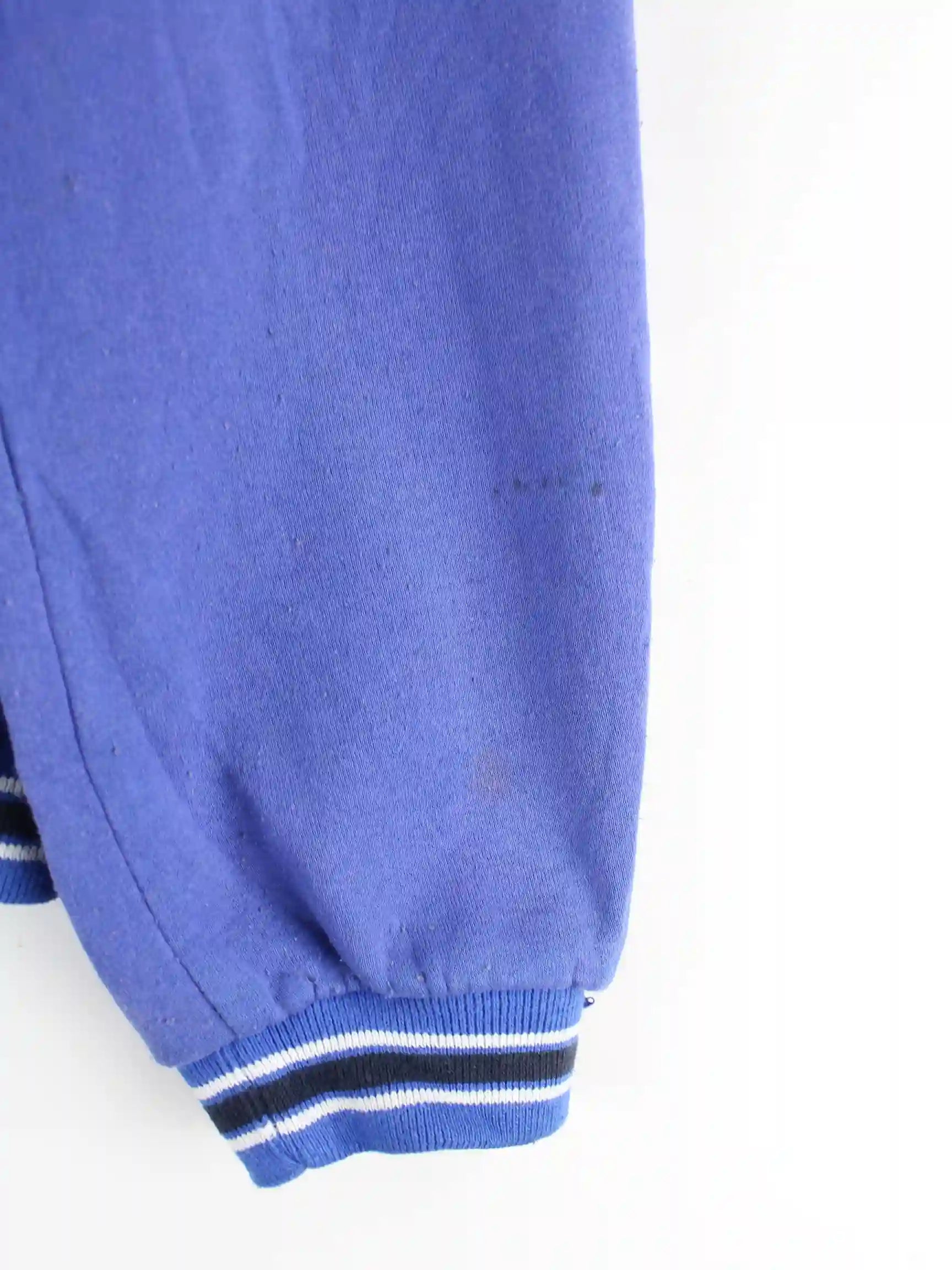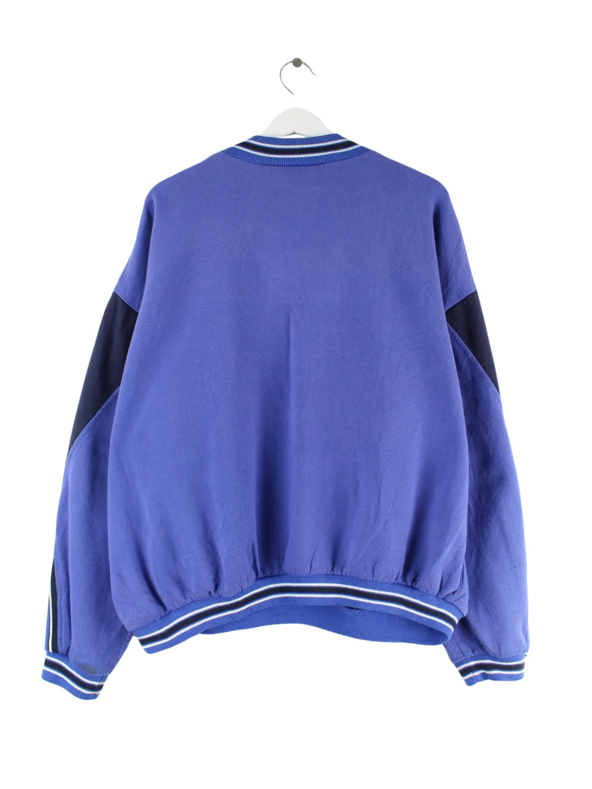 Vintage Sweater mit Stickereien in Größe XXL aus den 90'ern. Er ist aus einer Baumwollmischung angefertigt und in Blau auf Lager.