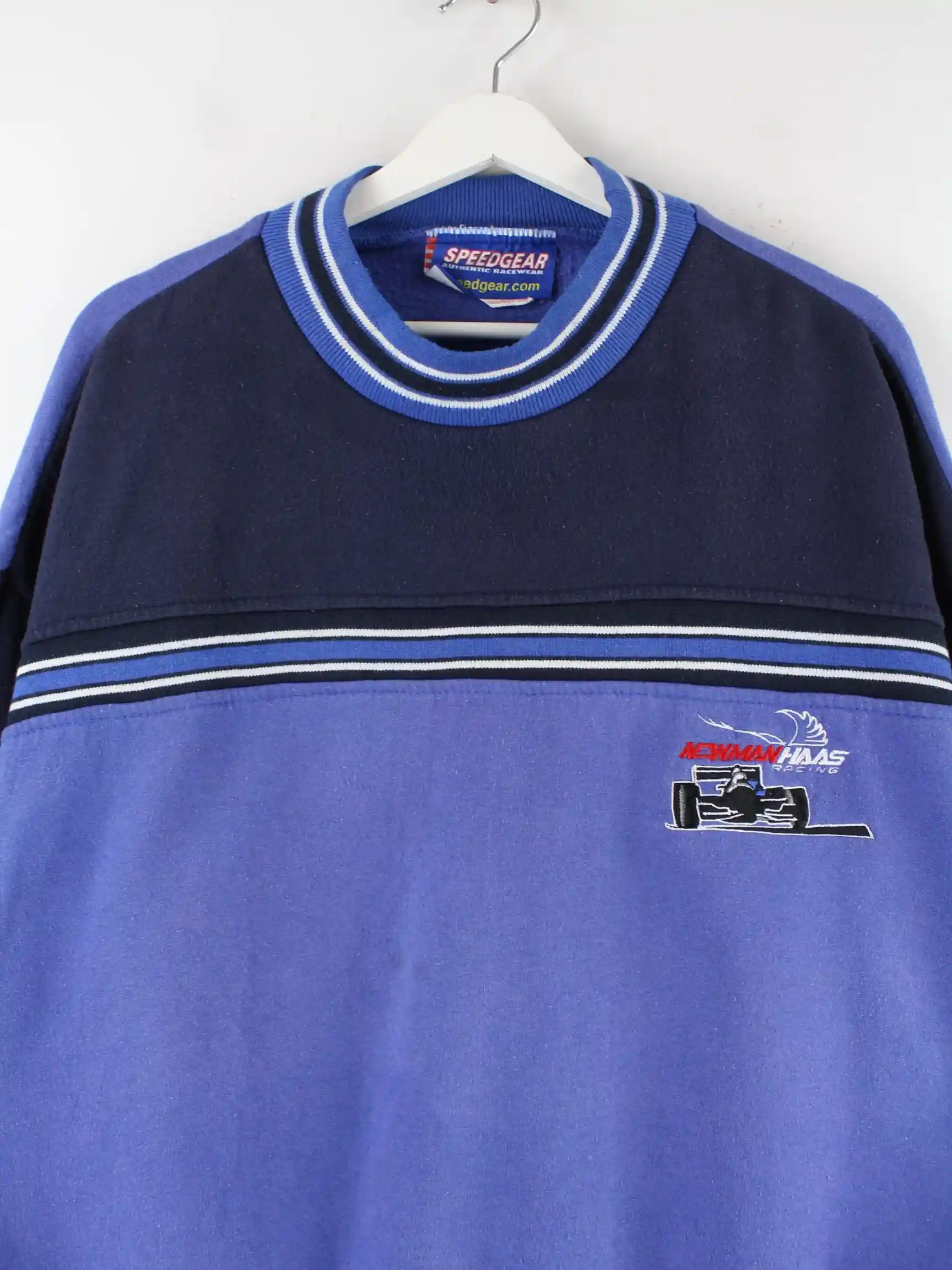 Vintage 90s Racing Embroidered Sweater Blau XXL