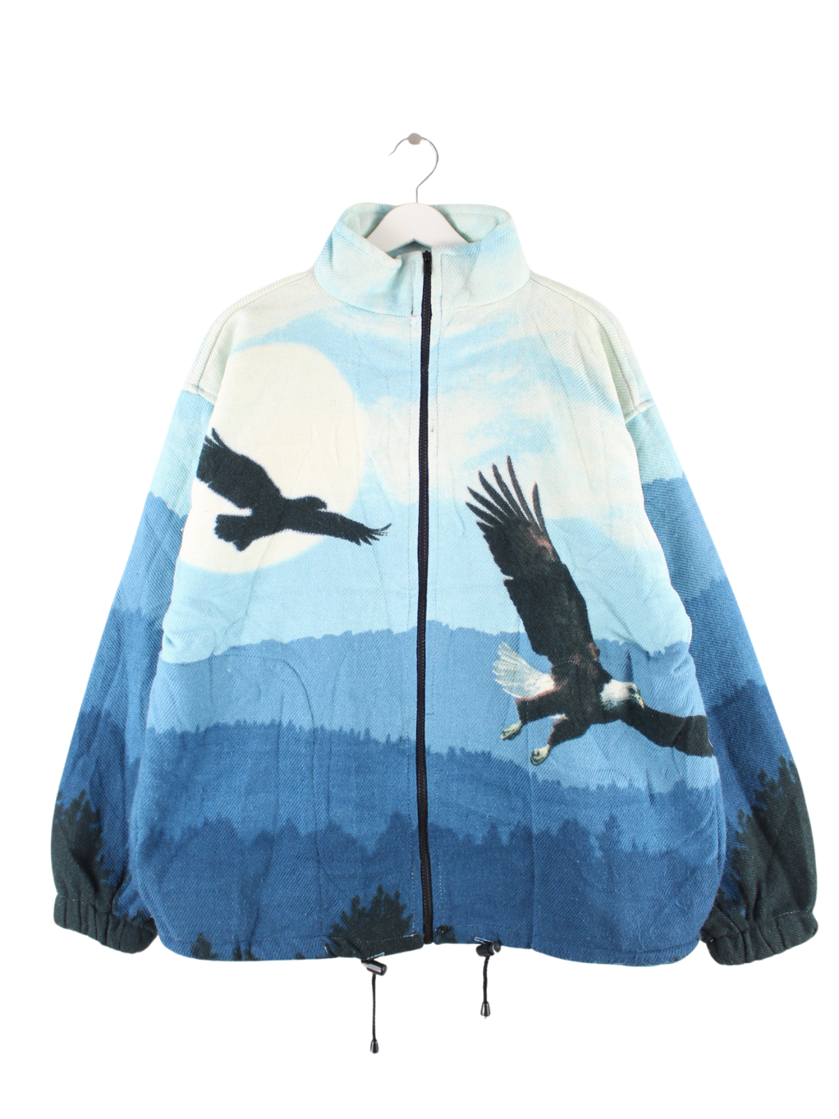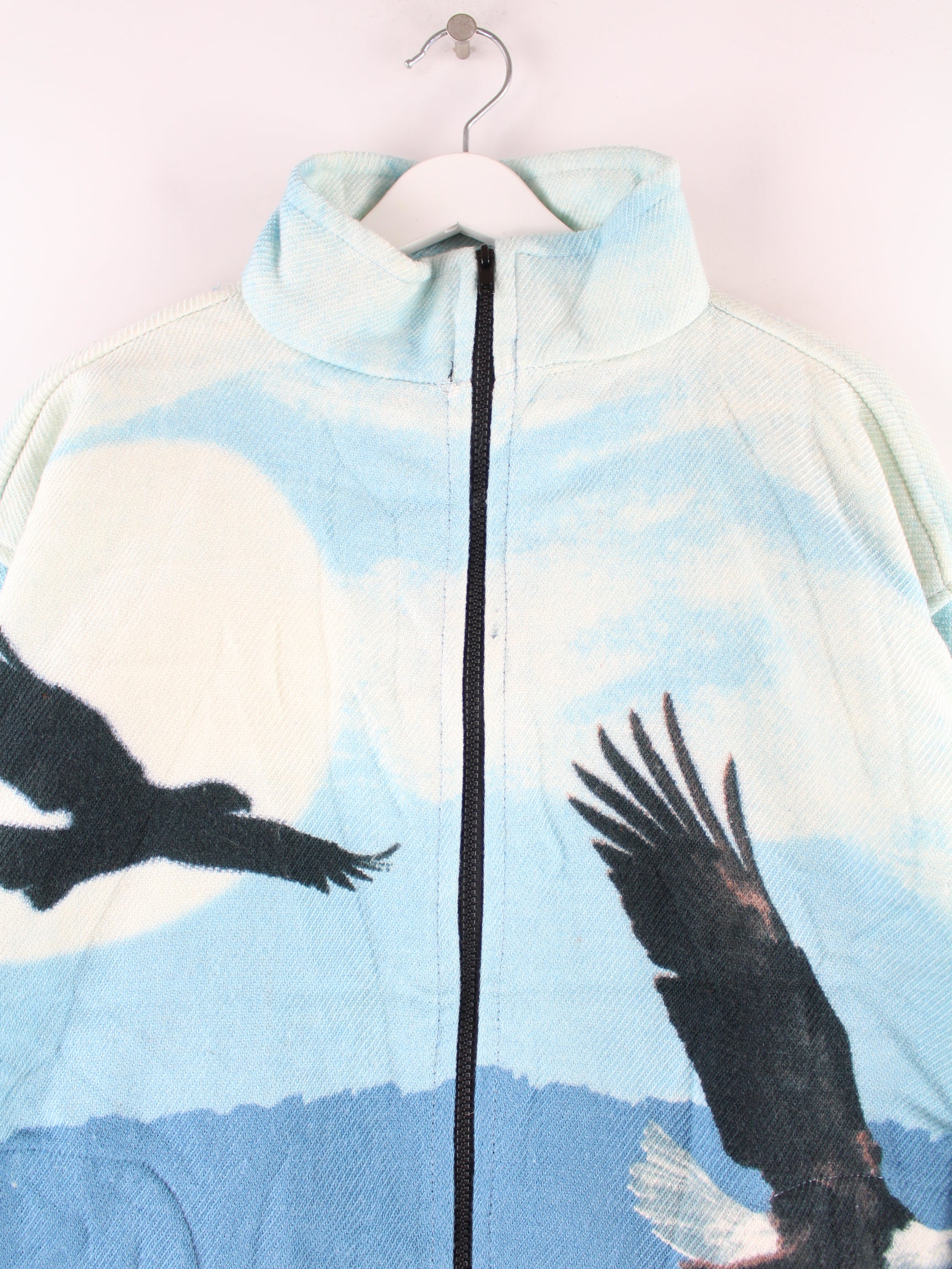Vintage Jacke in Größe L aus den 90'ern. Sie ist aus Synthetik angefertigt und in Blau im Bestand.
