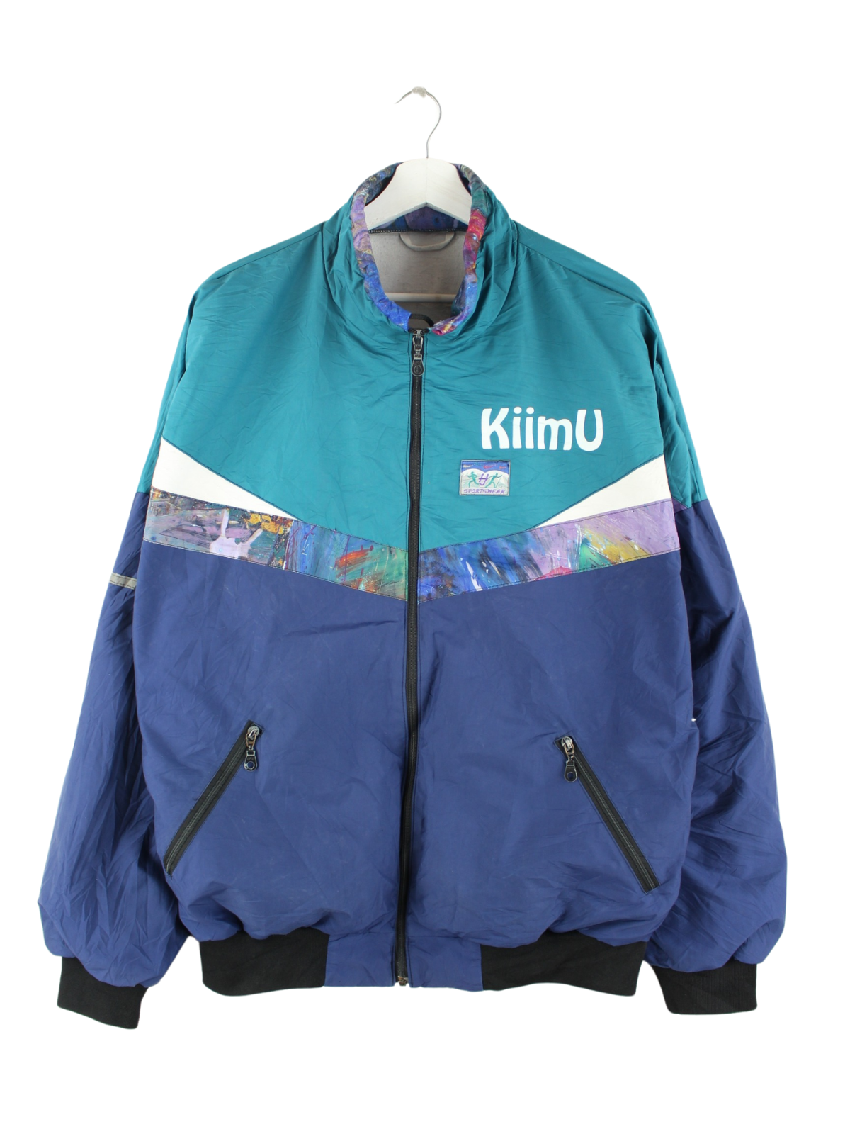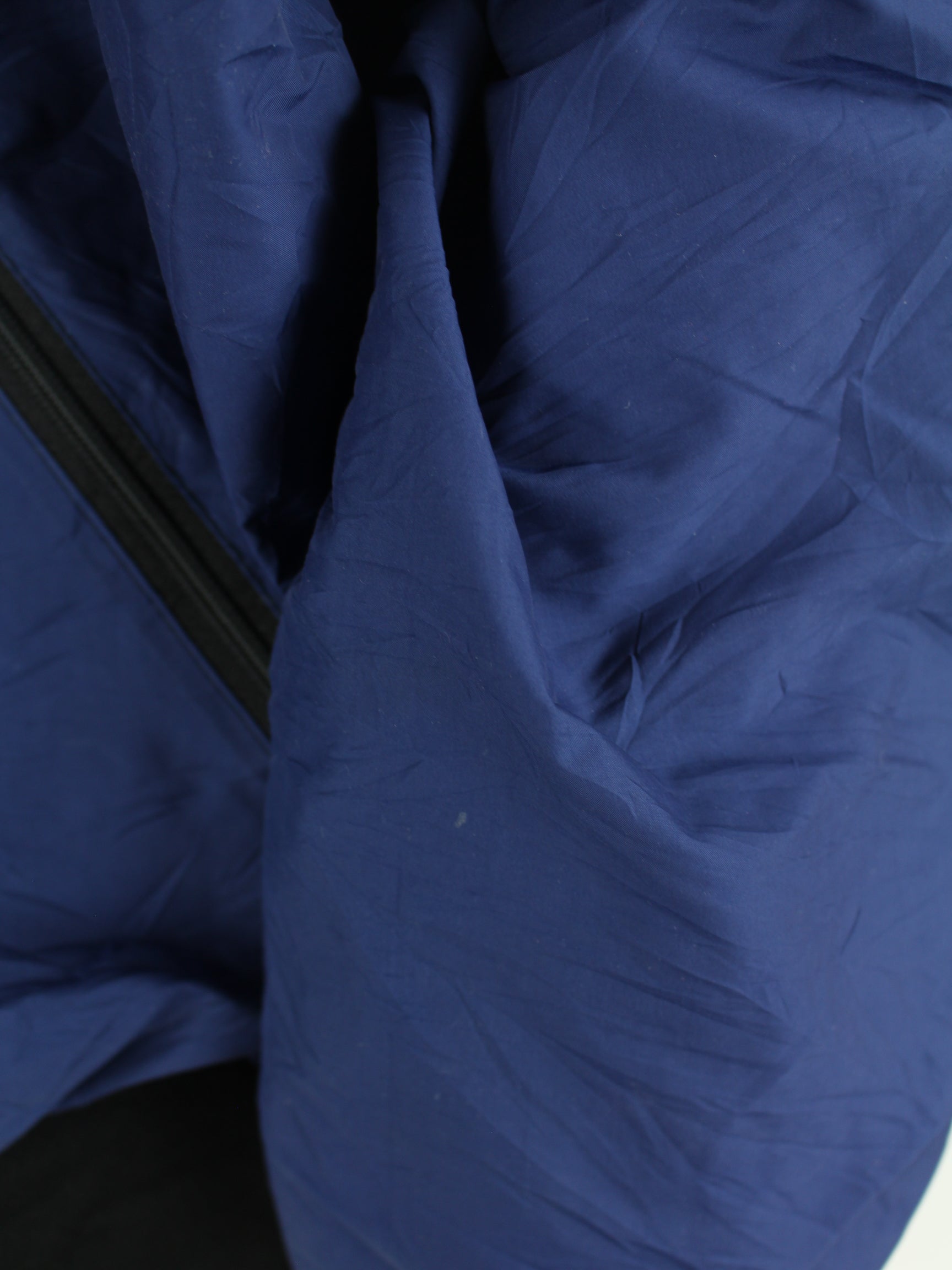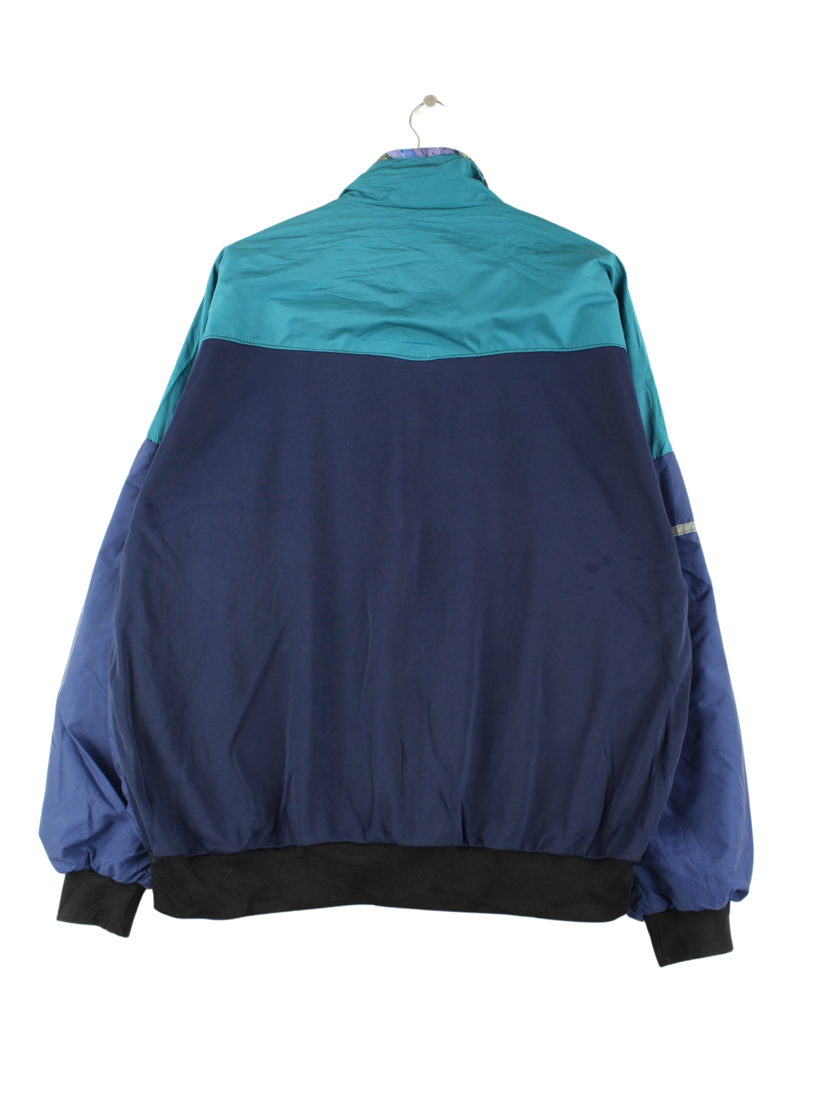 Vintage Leichte Jacke in Größe L aus den 90'ern. Sie ist aus Synthetik angefertigt und in Blau lieferbar.