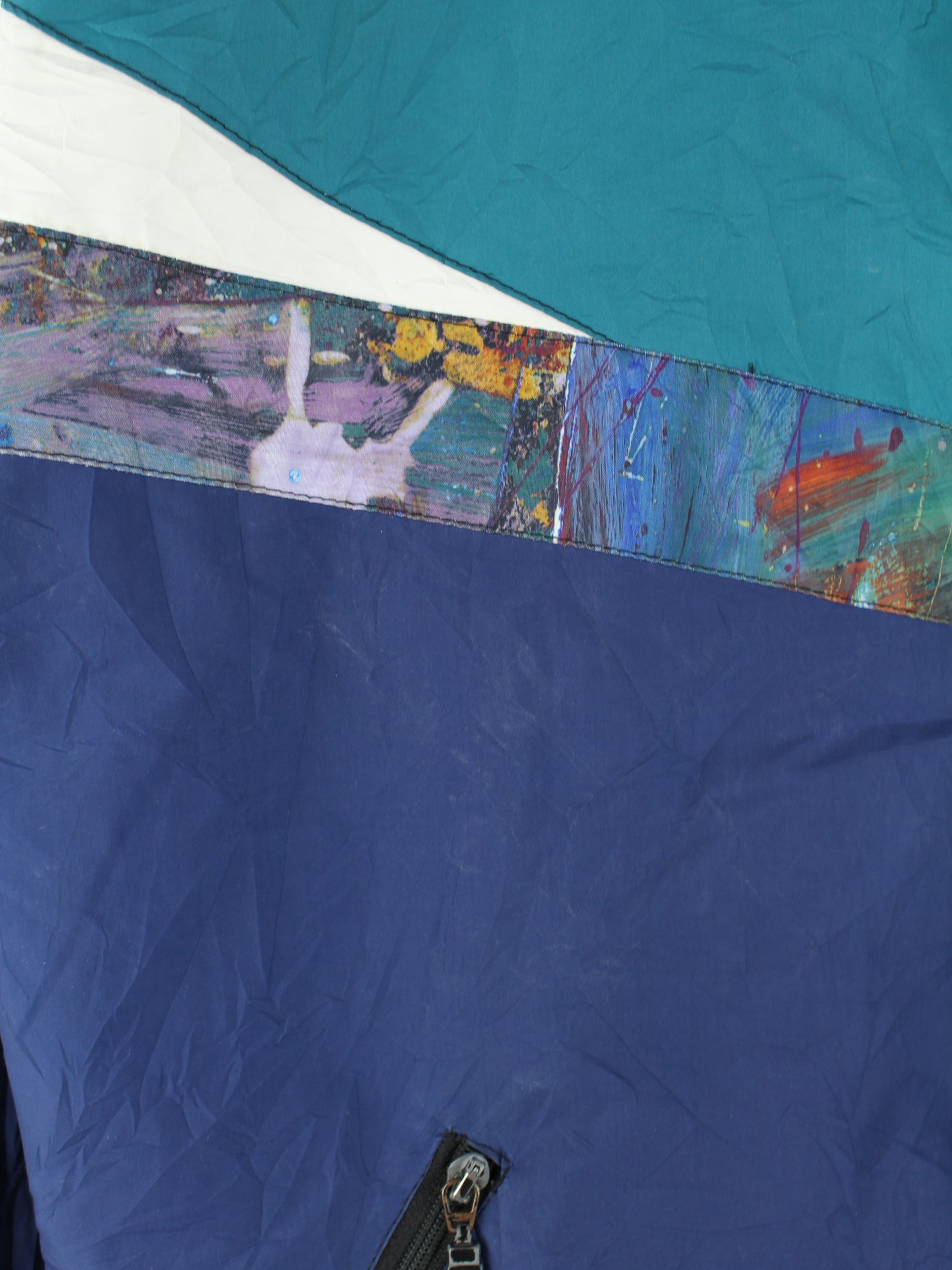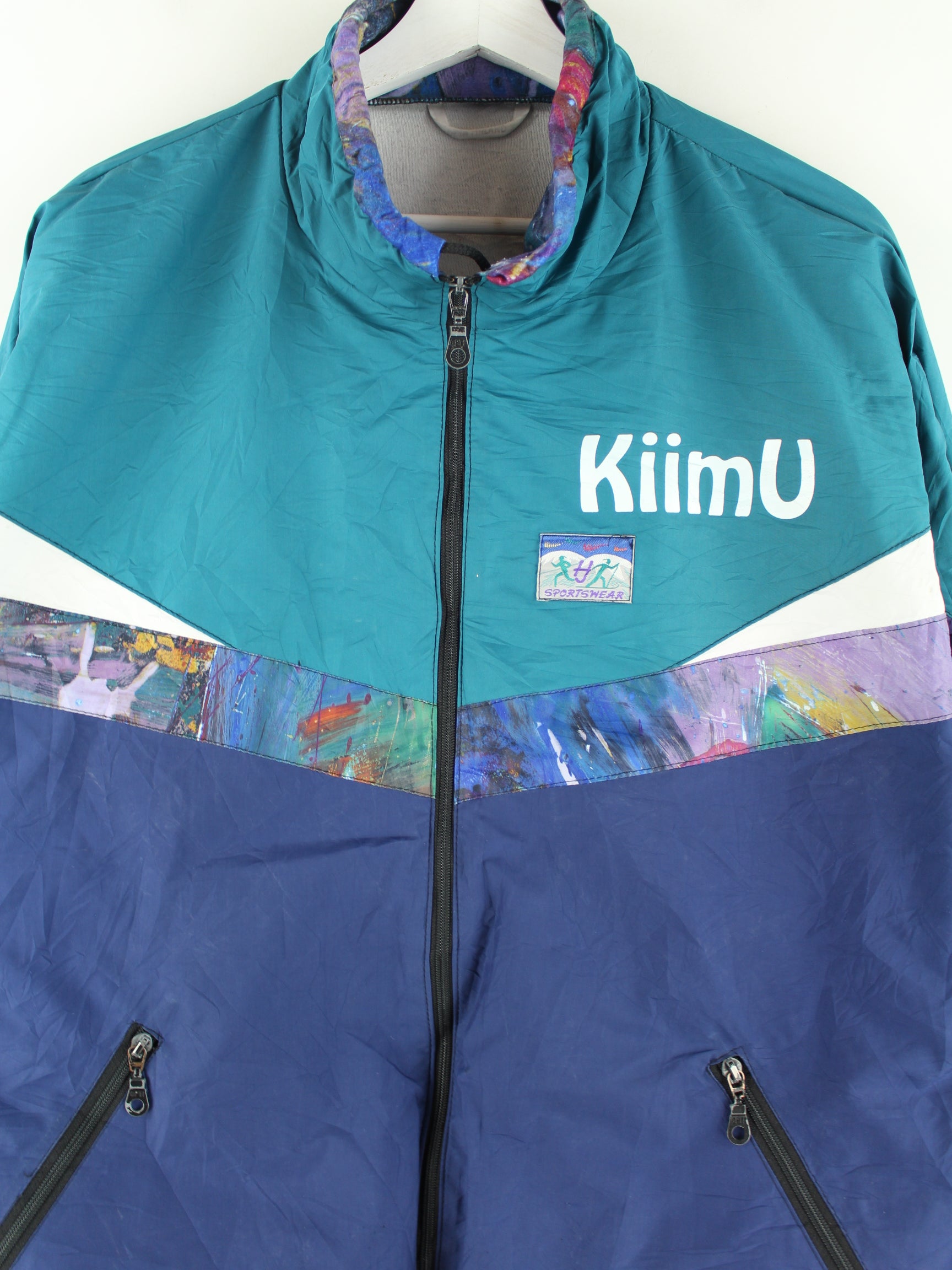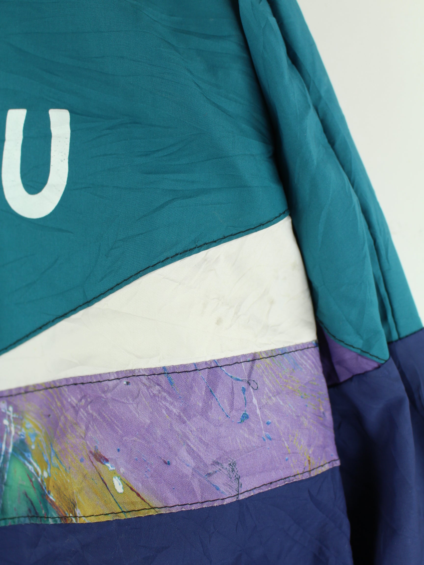 Vintage Leichte Jacke in Größe L aus den 90'ern. Sie ist aus Synthetik angefertigt und in Blau lieferbar.