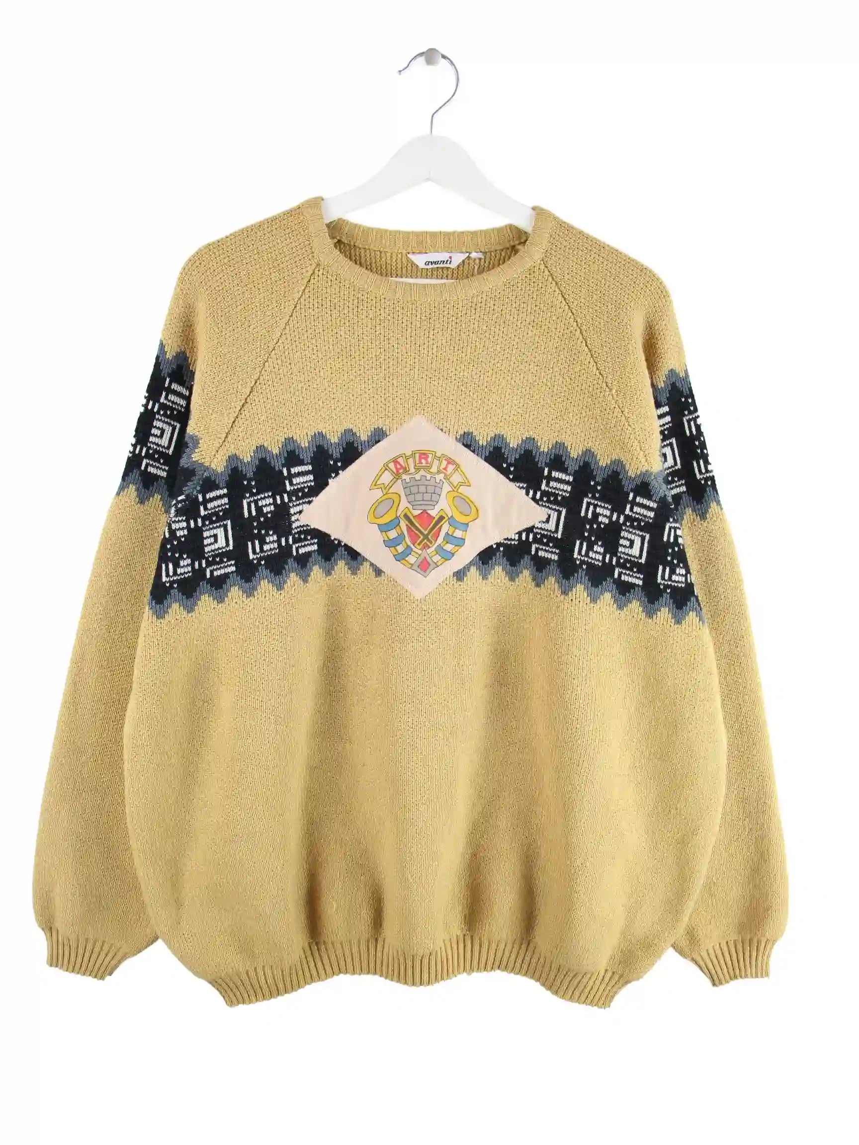 Vintage Pullover in Größe L aus den 90'ern. Er ist aus Acryl gefertigt und in Braun zu bekommen.