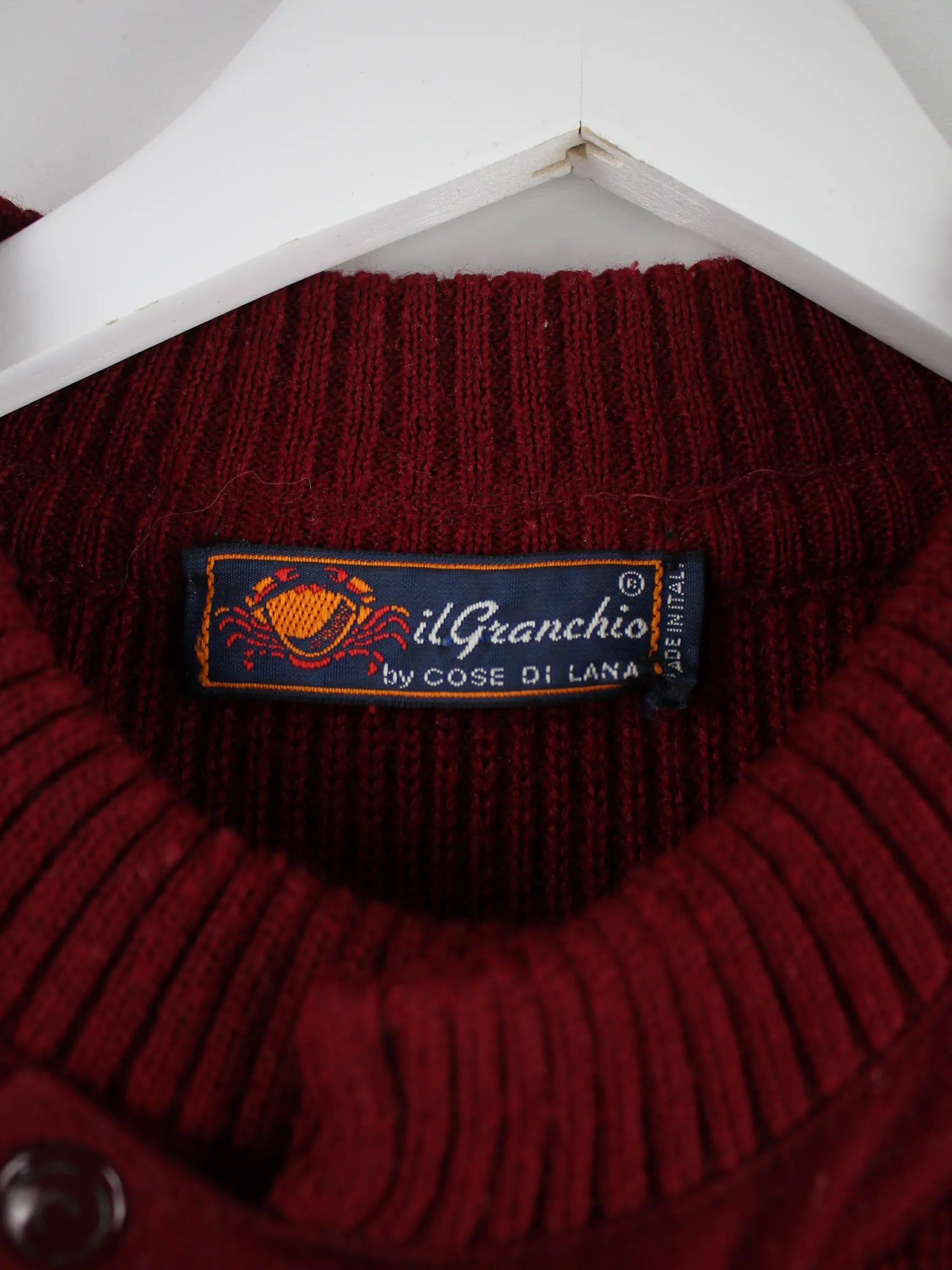 Rote Vintage Strickjacke aus den 90'ern in Größe XL. Sie ist aus Acryl produziert und in gutem Zustand zu haben.