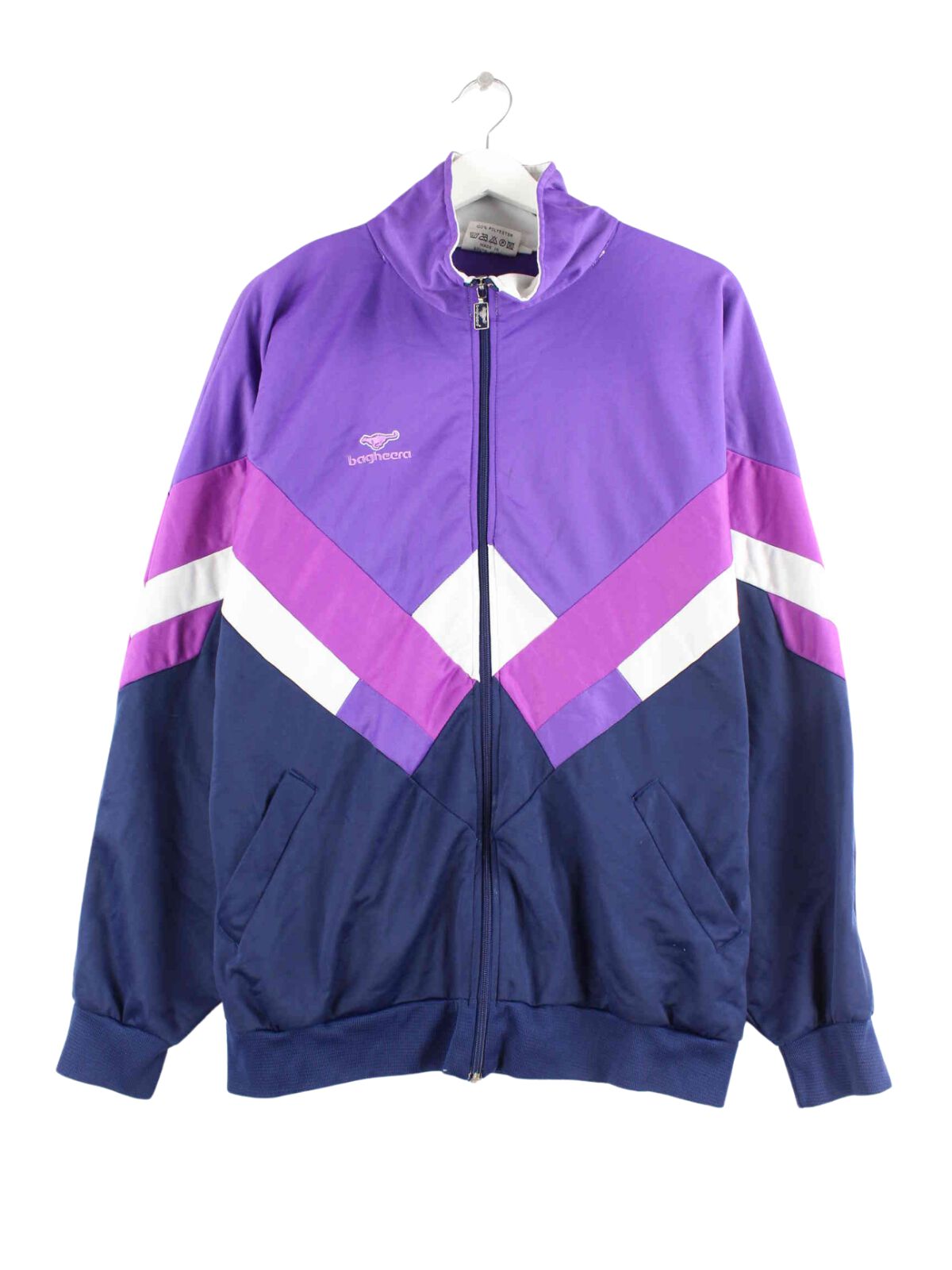 Vintage Trainingsjacke in Größe XL aus den 90'ern. Sie ist aus Synthetik und in Lila im Bestand.