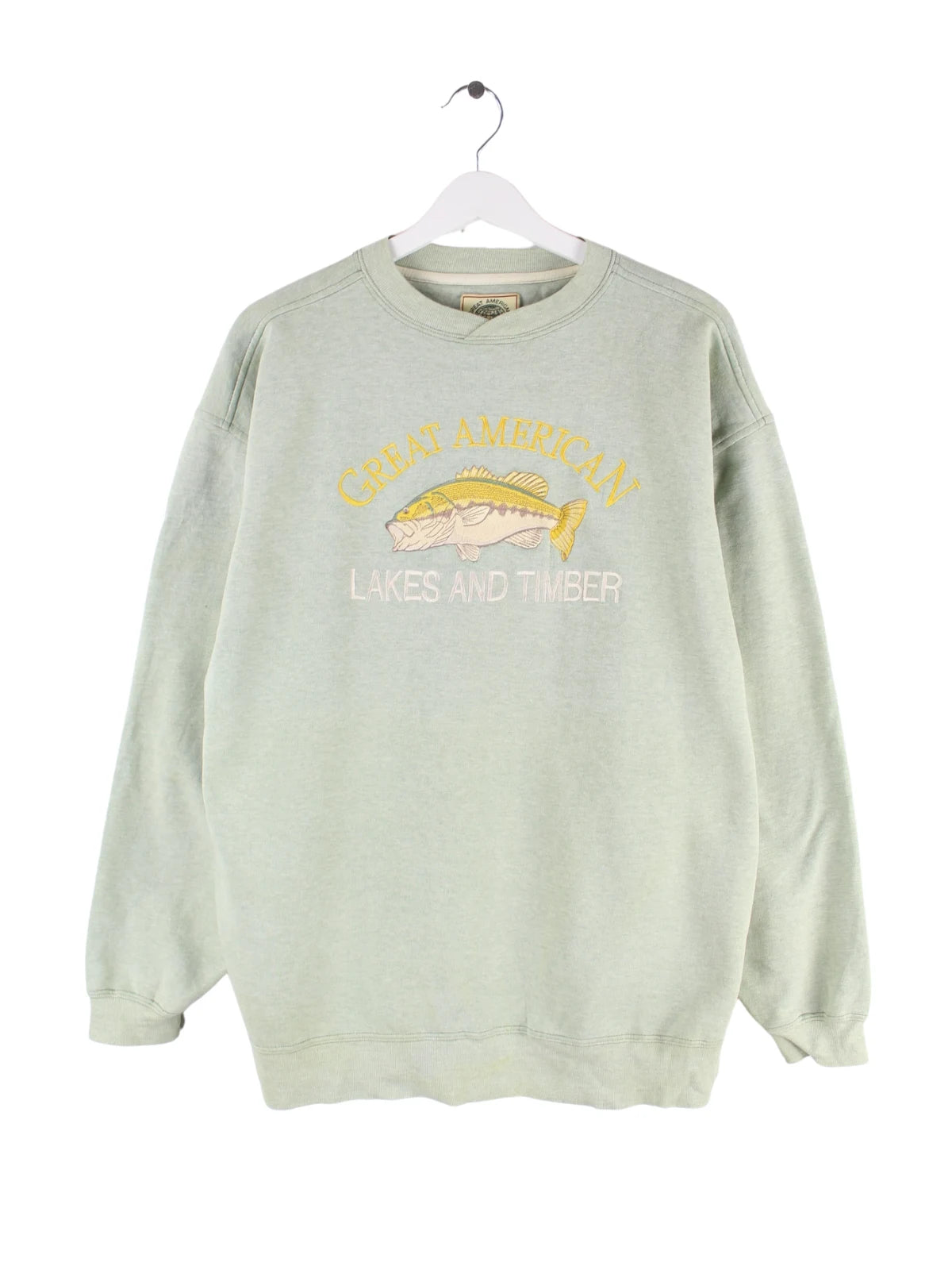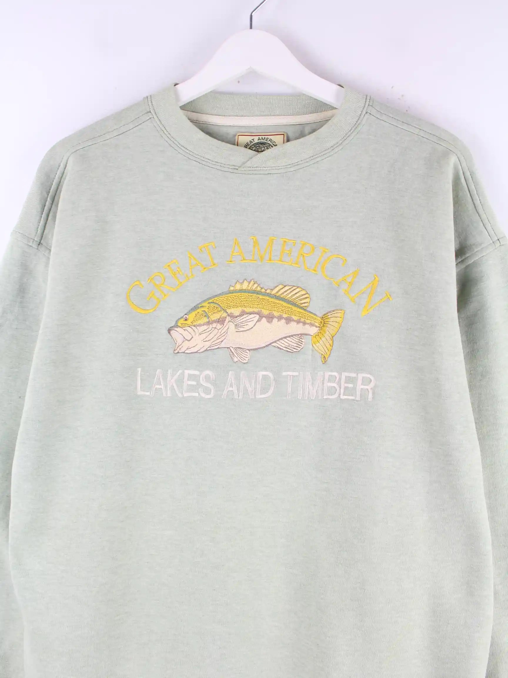 Vintage 90s USA Fish Embroidered Sweater Grün L