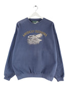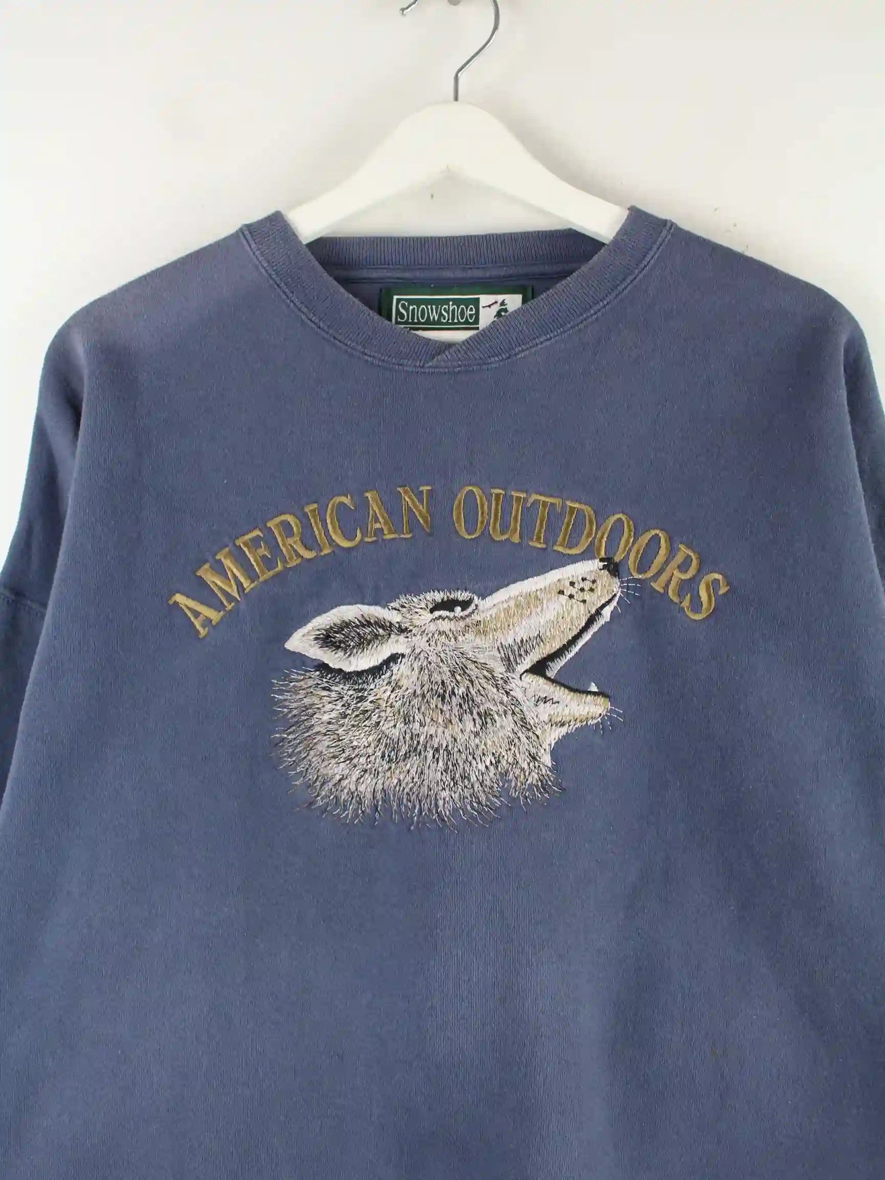 Vintage 90s USA Outdoor Wolf Embroidered Heavy Sweater Blau XL