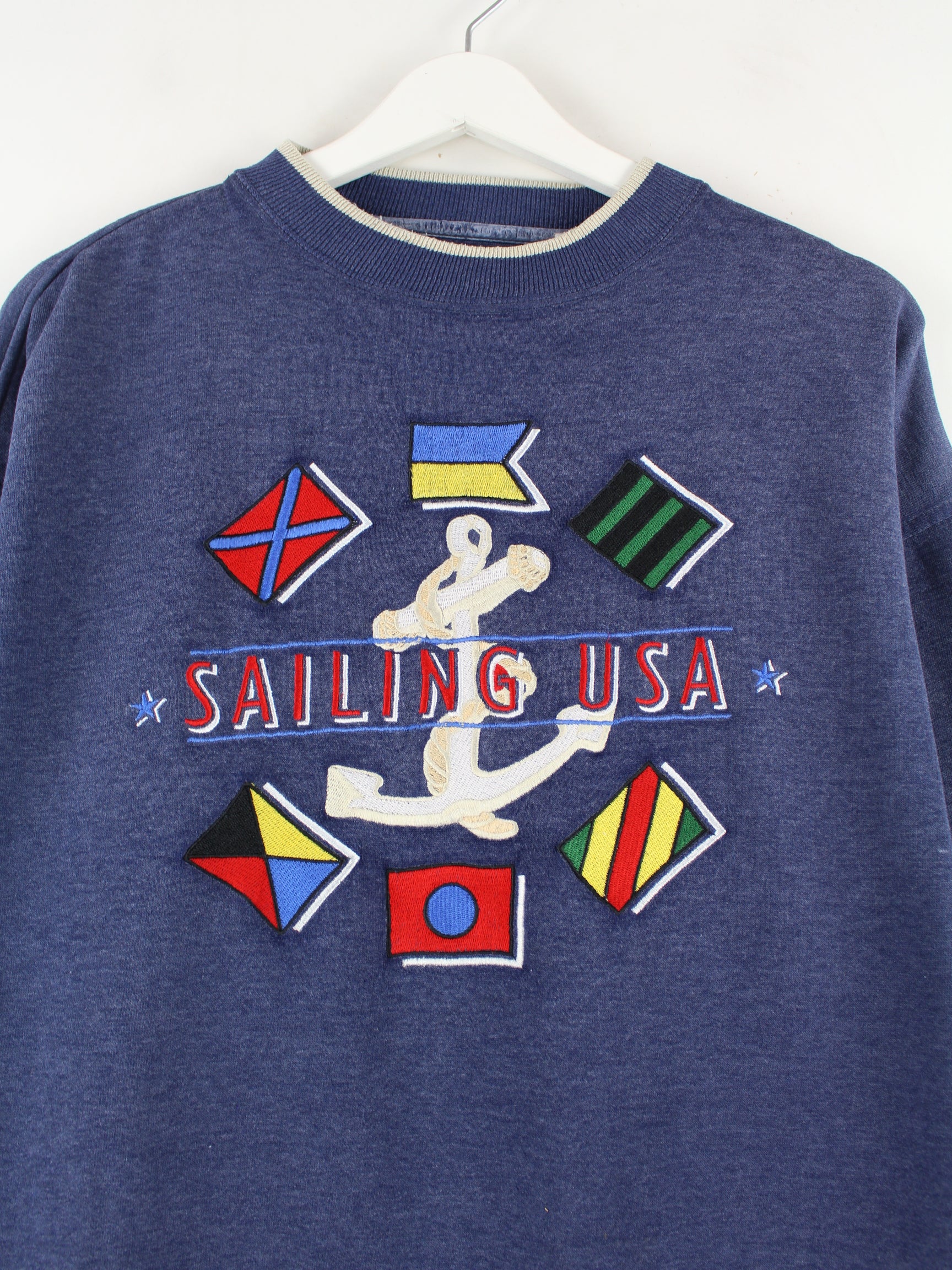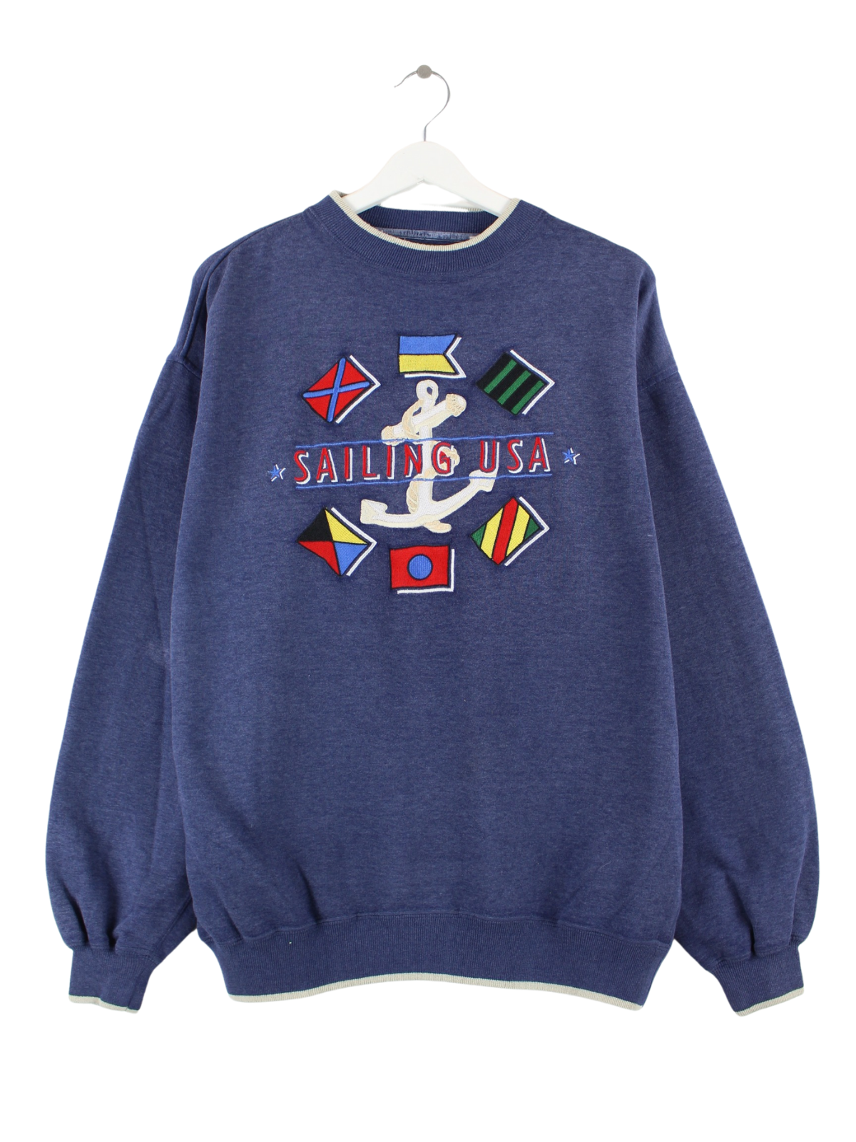 Vintage 90s USA Sailing Embroidered Sweater Blau L