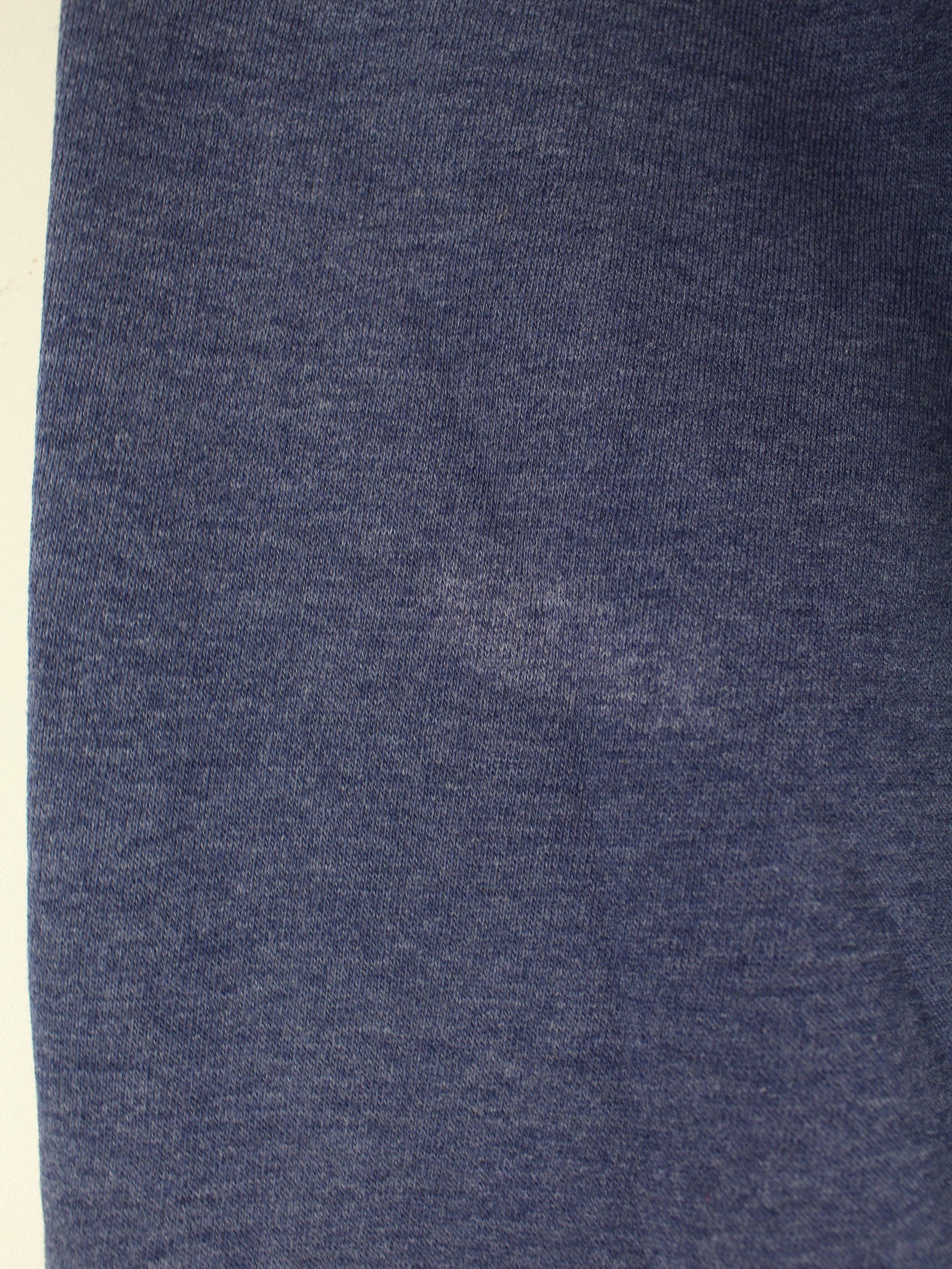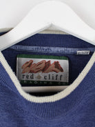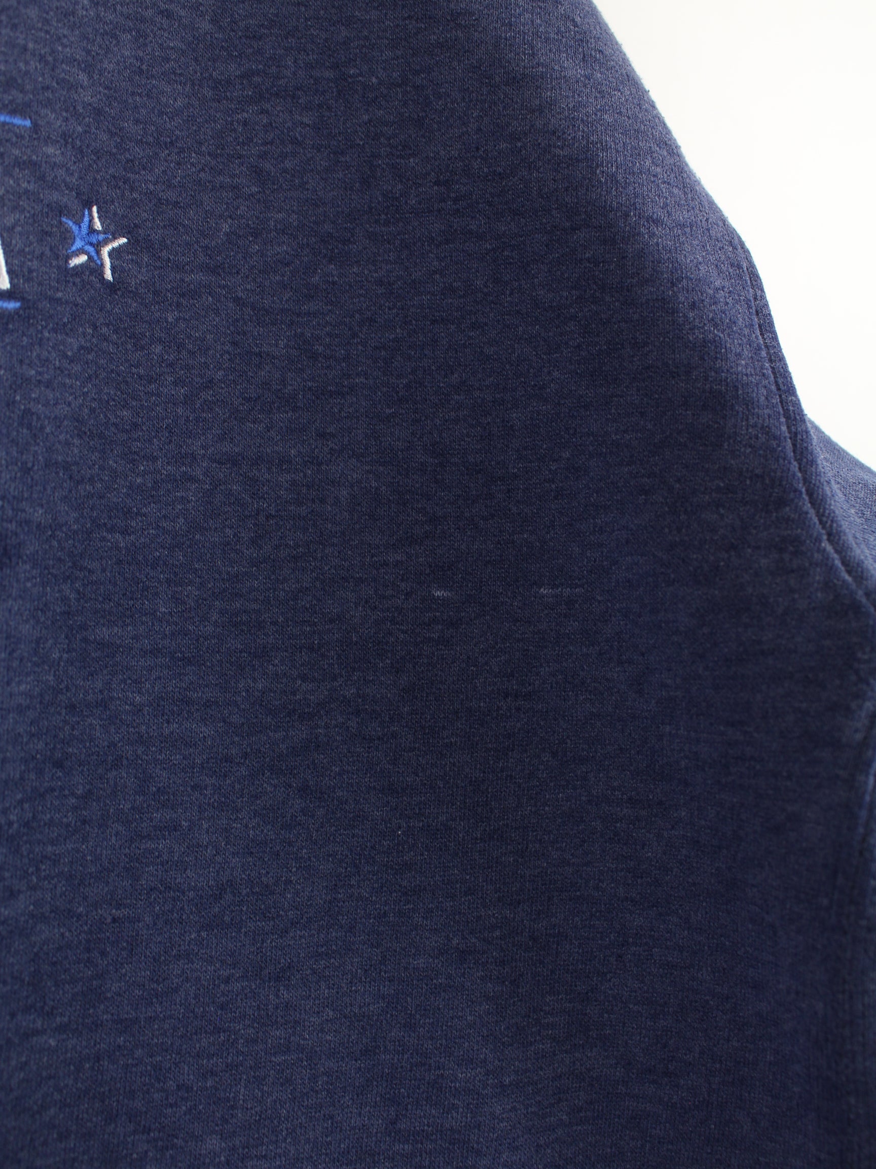 Blauer Vintage Sweater mit gesticktem Logo aus den 90'ern in Größe L. Er ist aus einer Baumwollmischung produziert und in gutem Zustand in Stock.