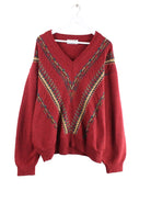 Vintage 90s V-Neck Strick Pullover Rot L