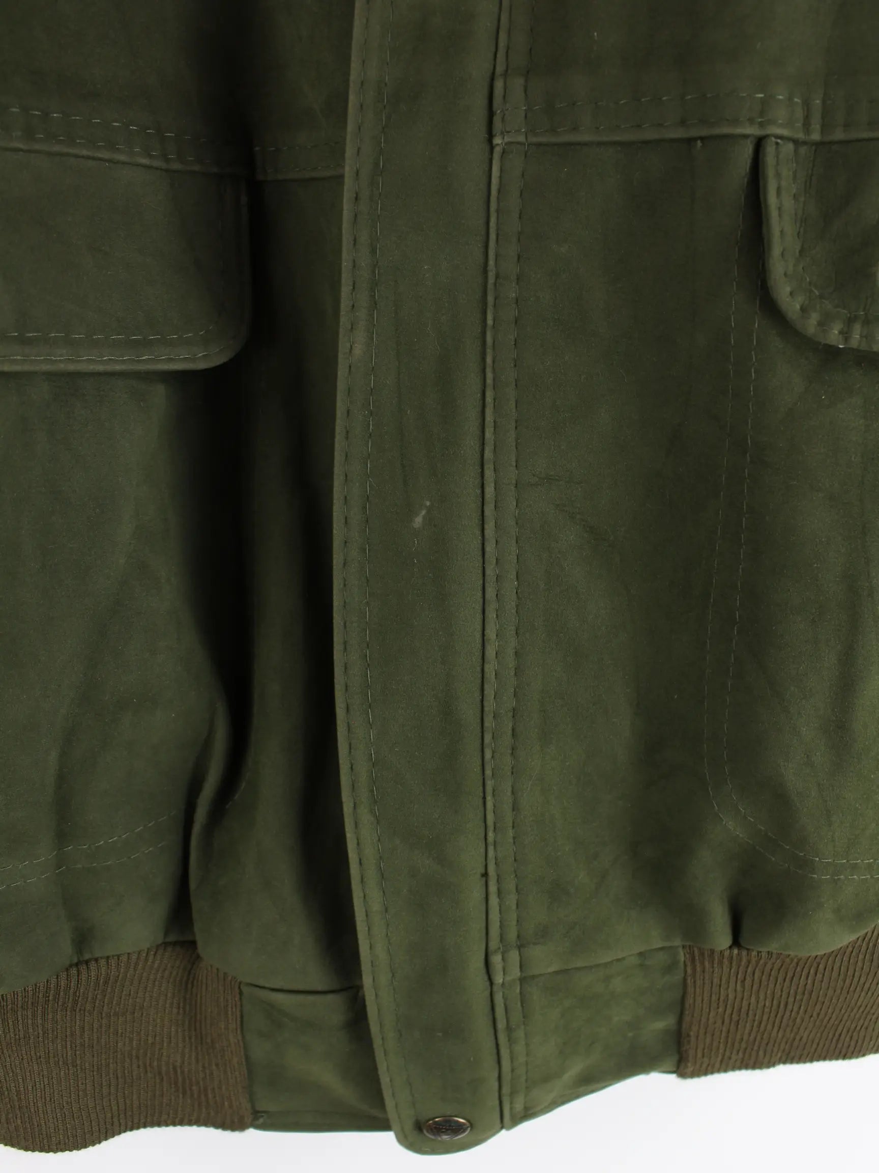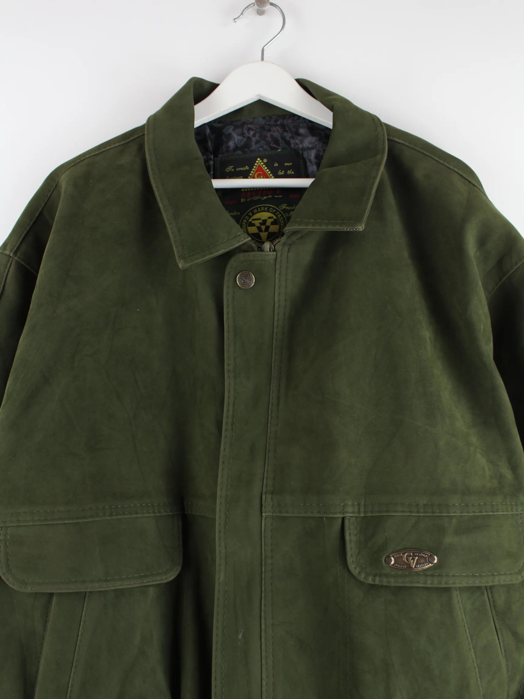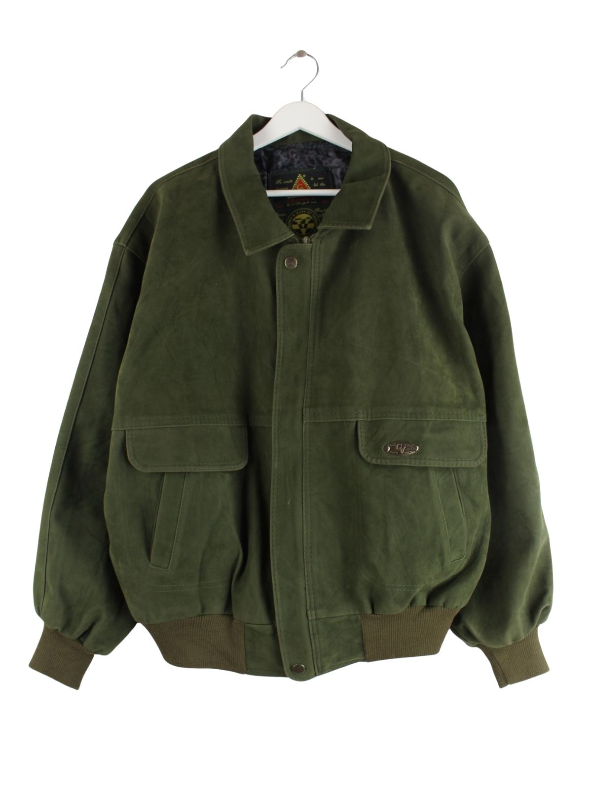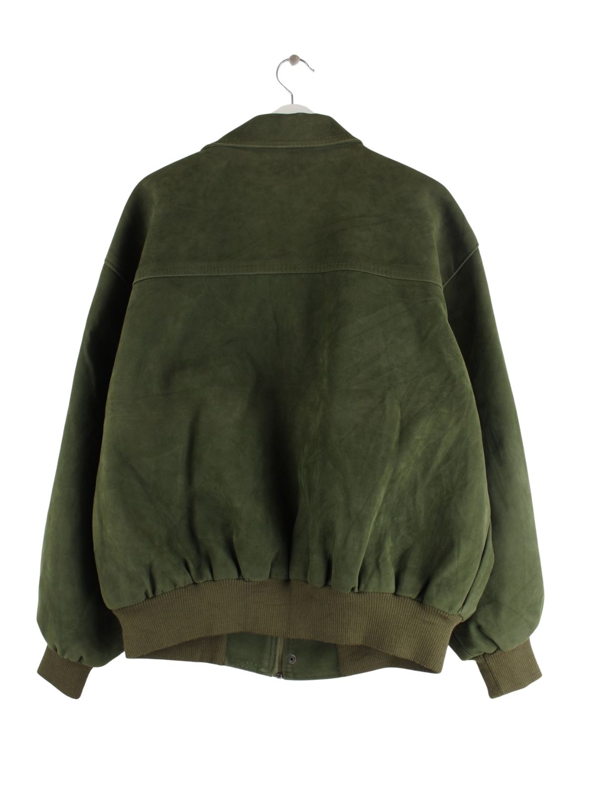 Grüne Vintage Jacke aus den 90'ern in Größe XL. Sie ist aus Leder hergestellt und in gutem Zustand zu haben.