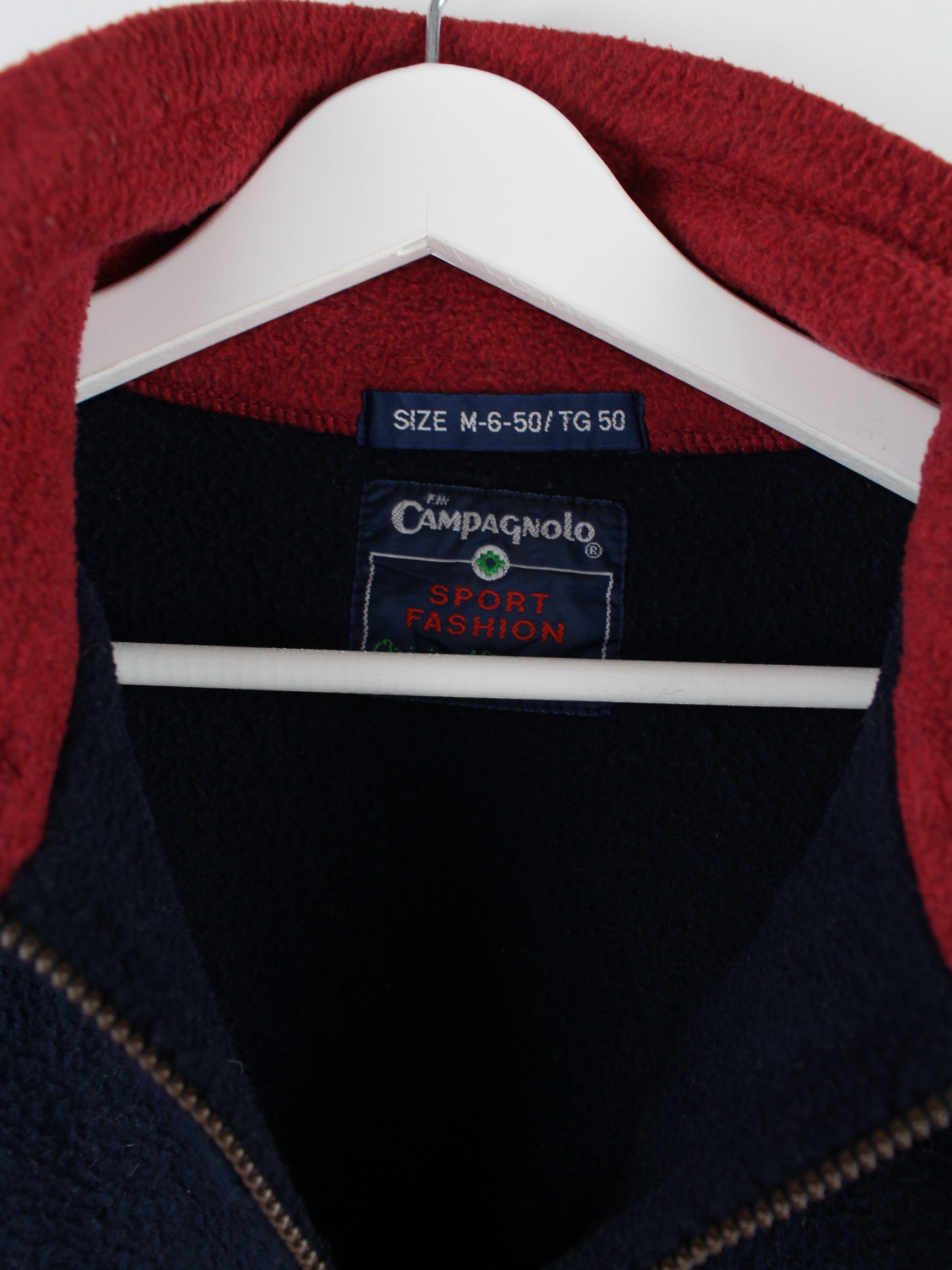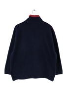 Blauer Vintage Sweater mit halbem Reißverschluß aus den 90'ern in Größe M. Er ist aus behaglichem Fleece angefertigt und in sehr gutem Zustand bei uns zu bekommen.