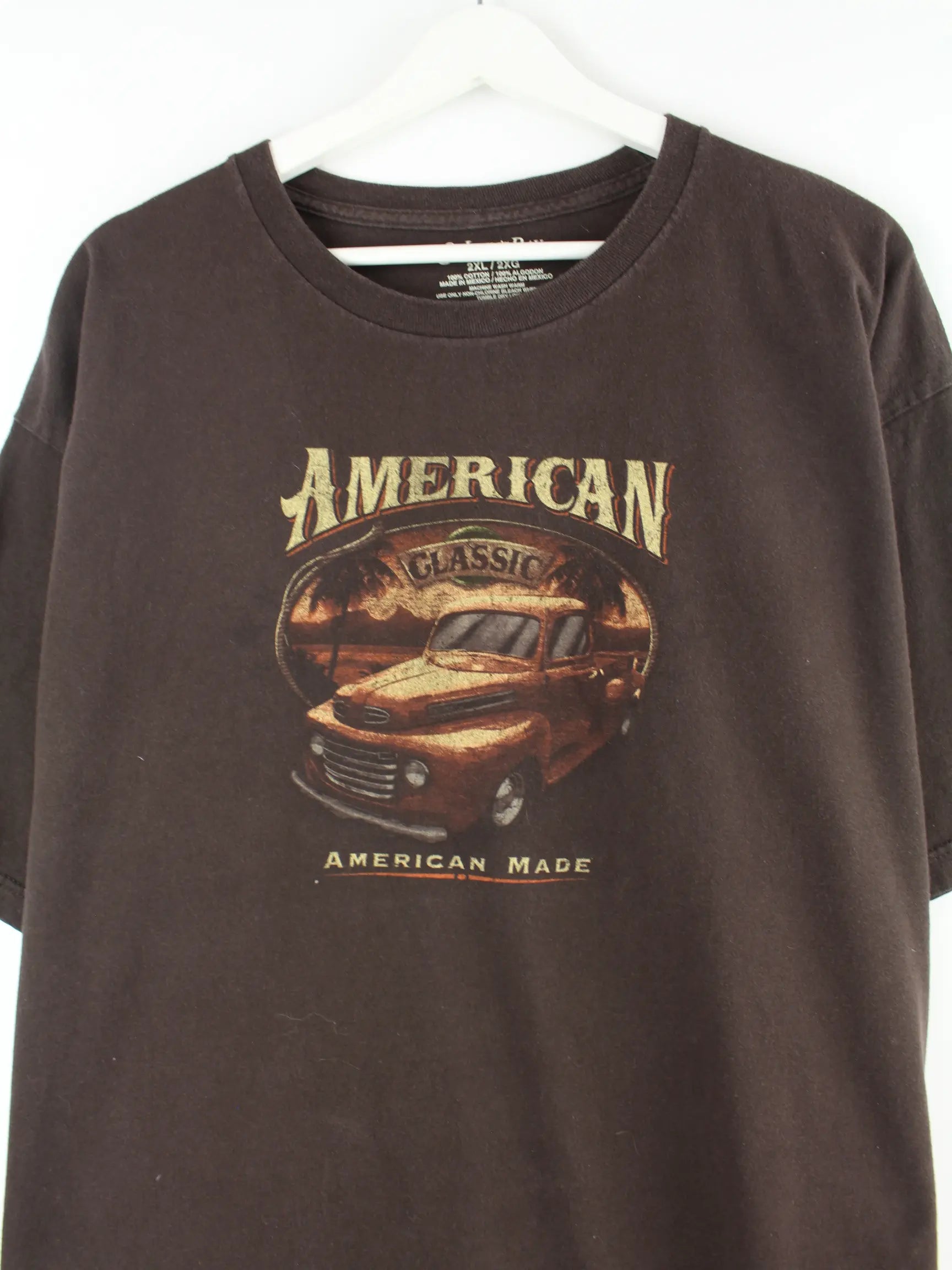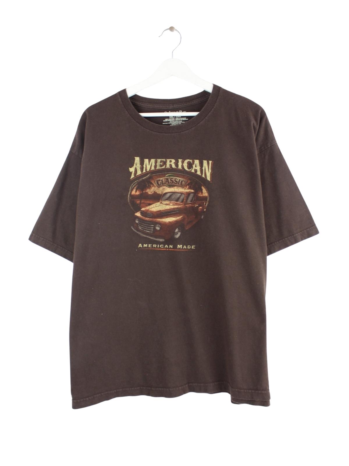Vintage American Oldtimer Print T-Shirt Braun XXL