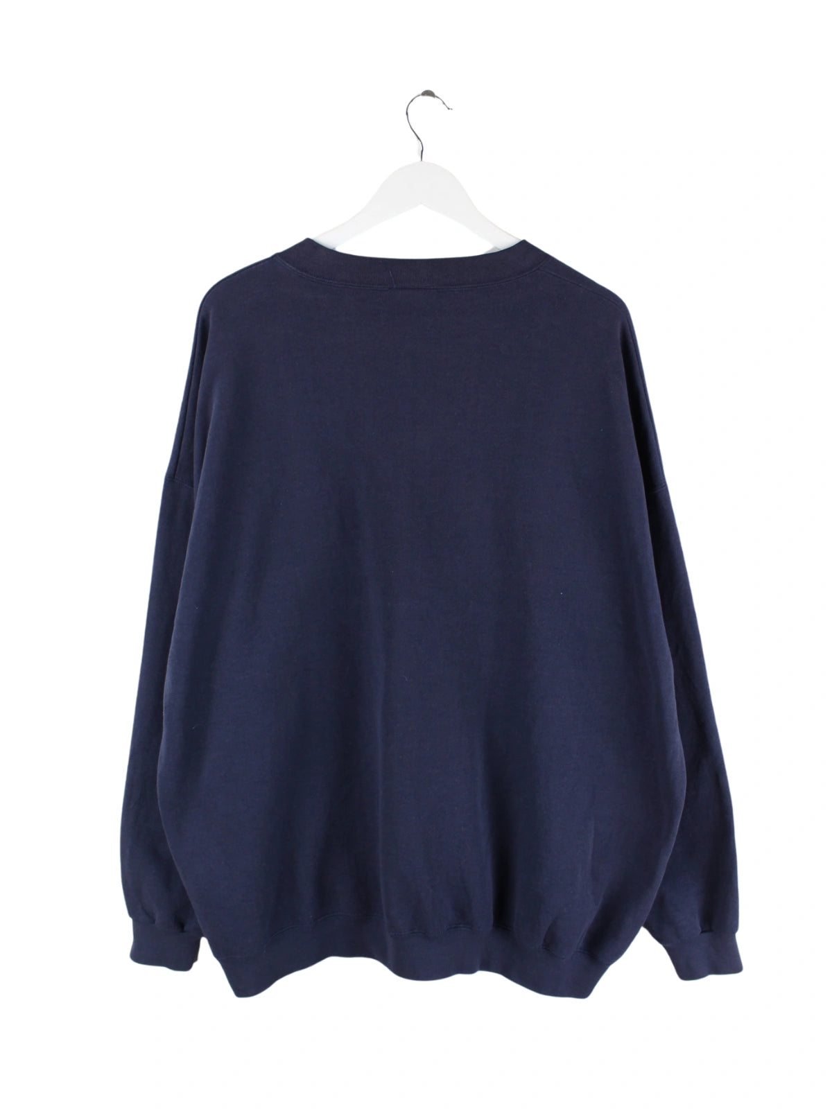 Blauer Vintage Sweater mit gesticktem Logo in Größe XXL. Er ist aus einer Baumwollmischung hergestellt und in sehr gutem Zustand im Bestand.