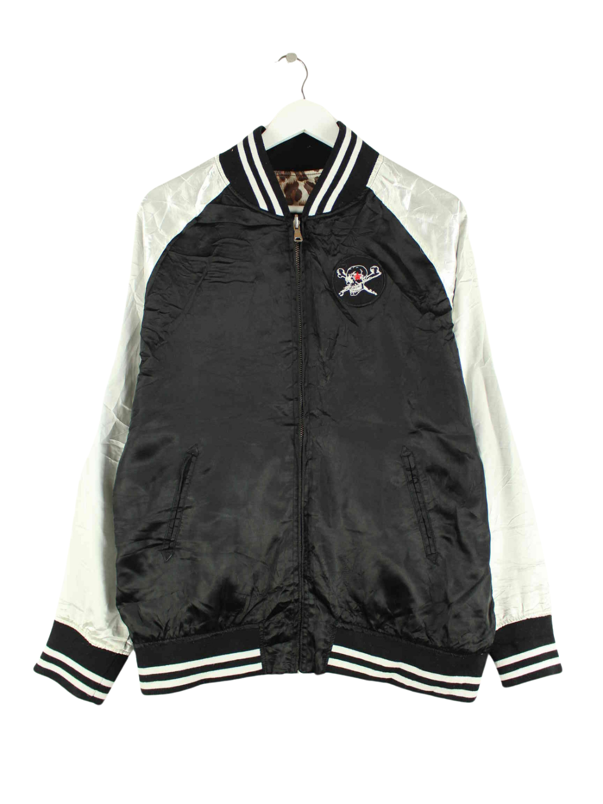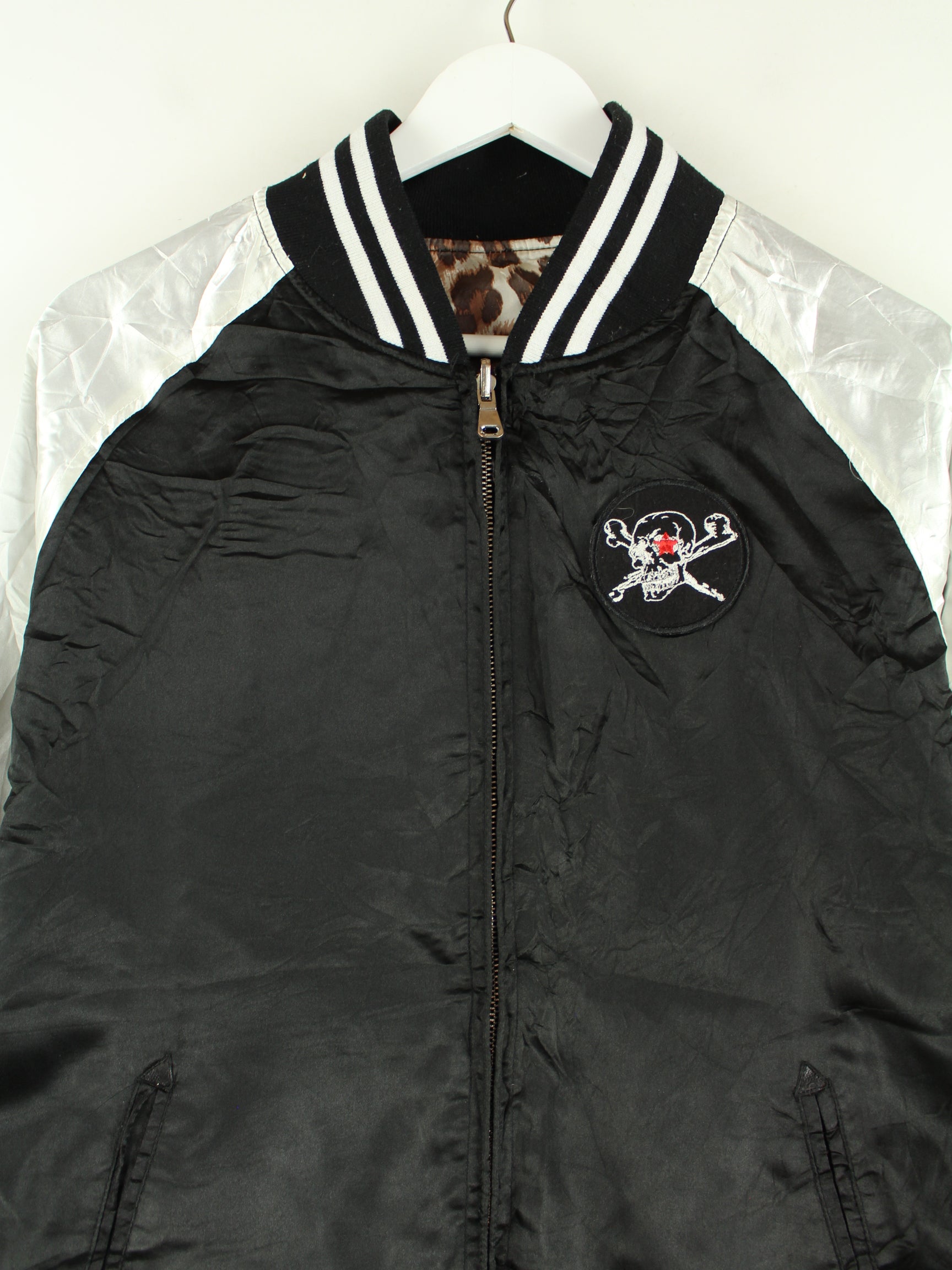 Vintage College Black Embroidered Wende Jacke Schwarz L