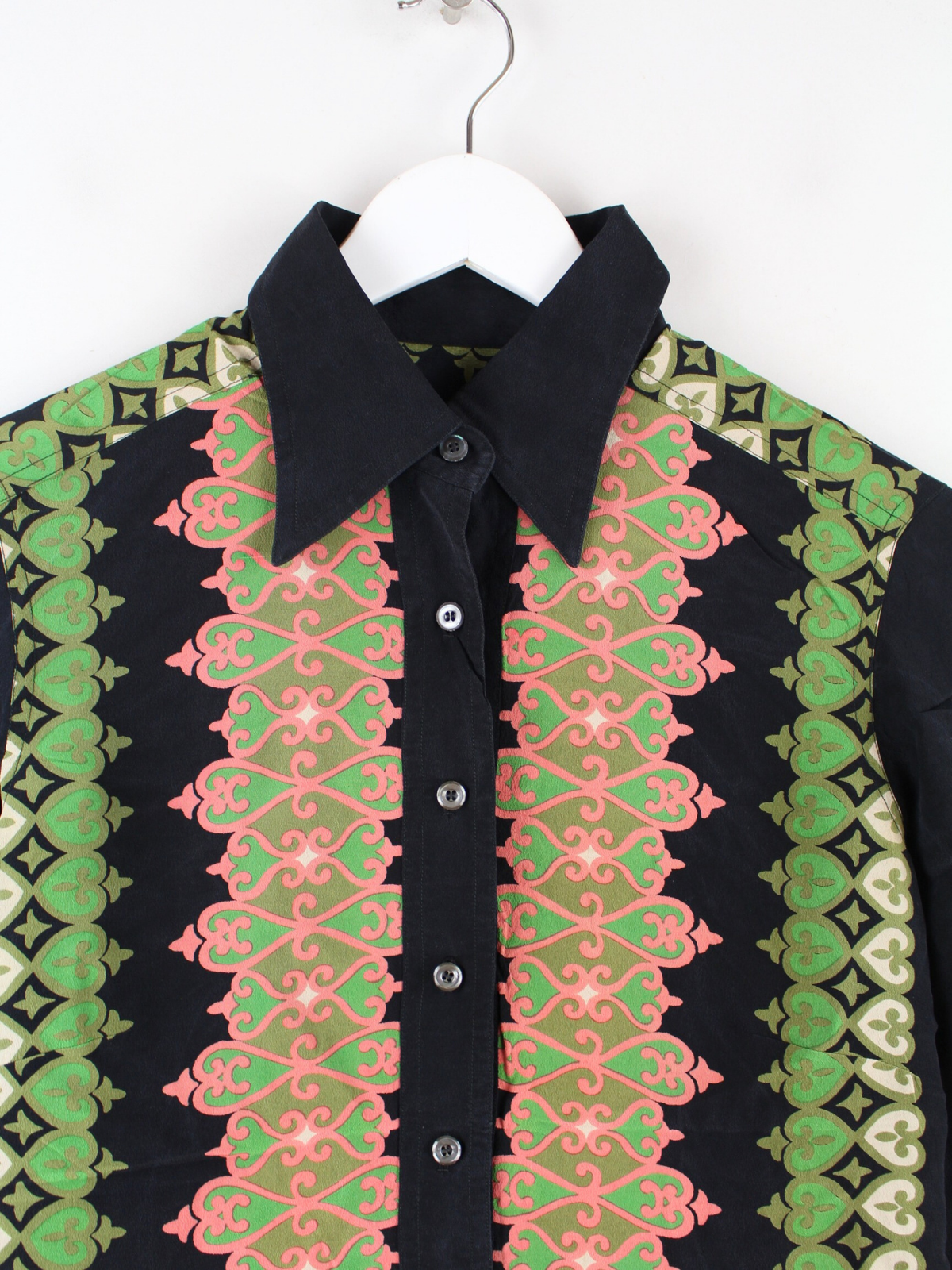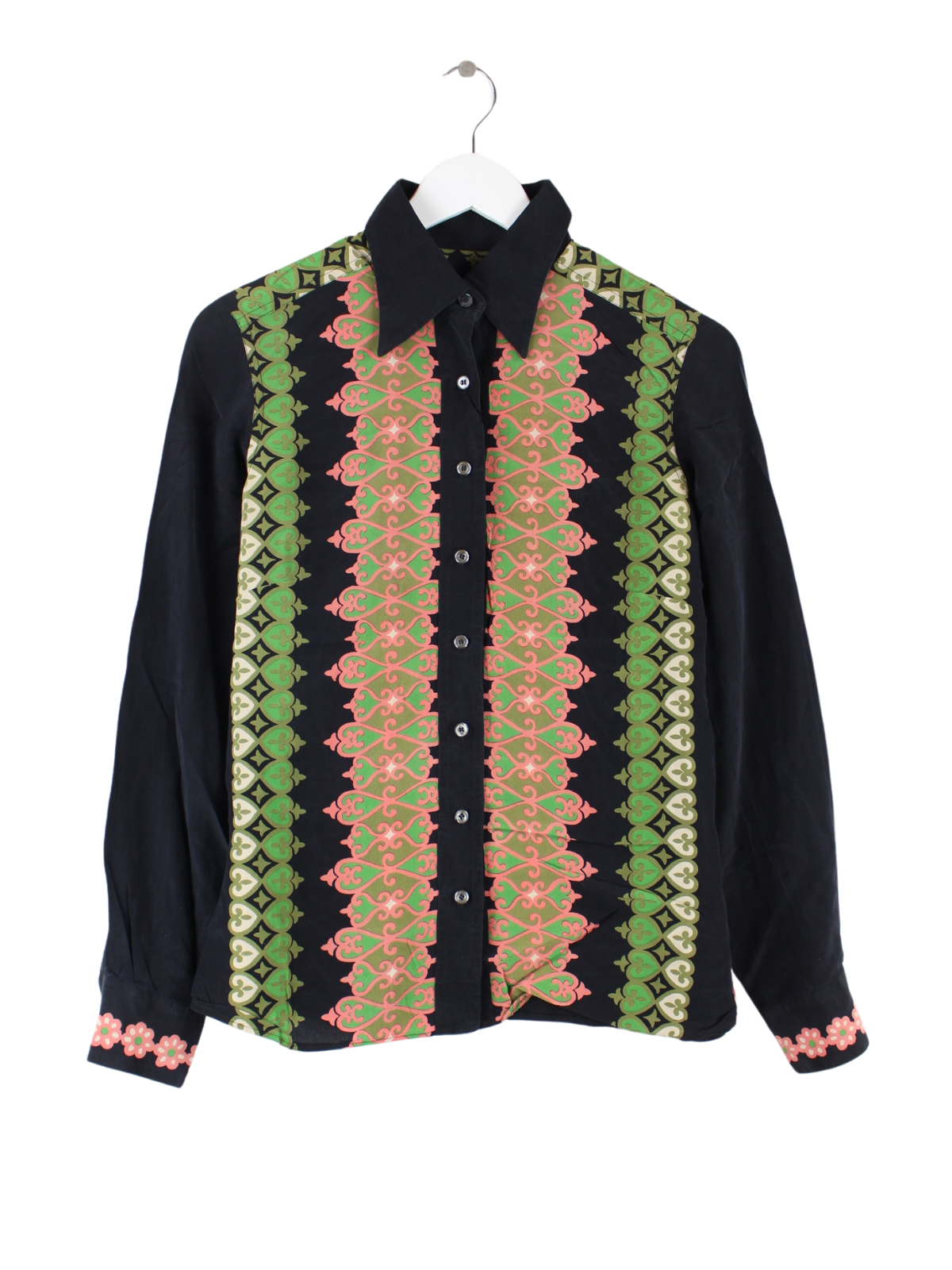 Vintage Freizeit Hemd in Größe S. Es ist aus Seide gemacht und in Schwarz im Angebot.